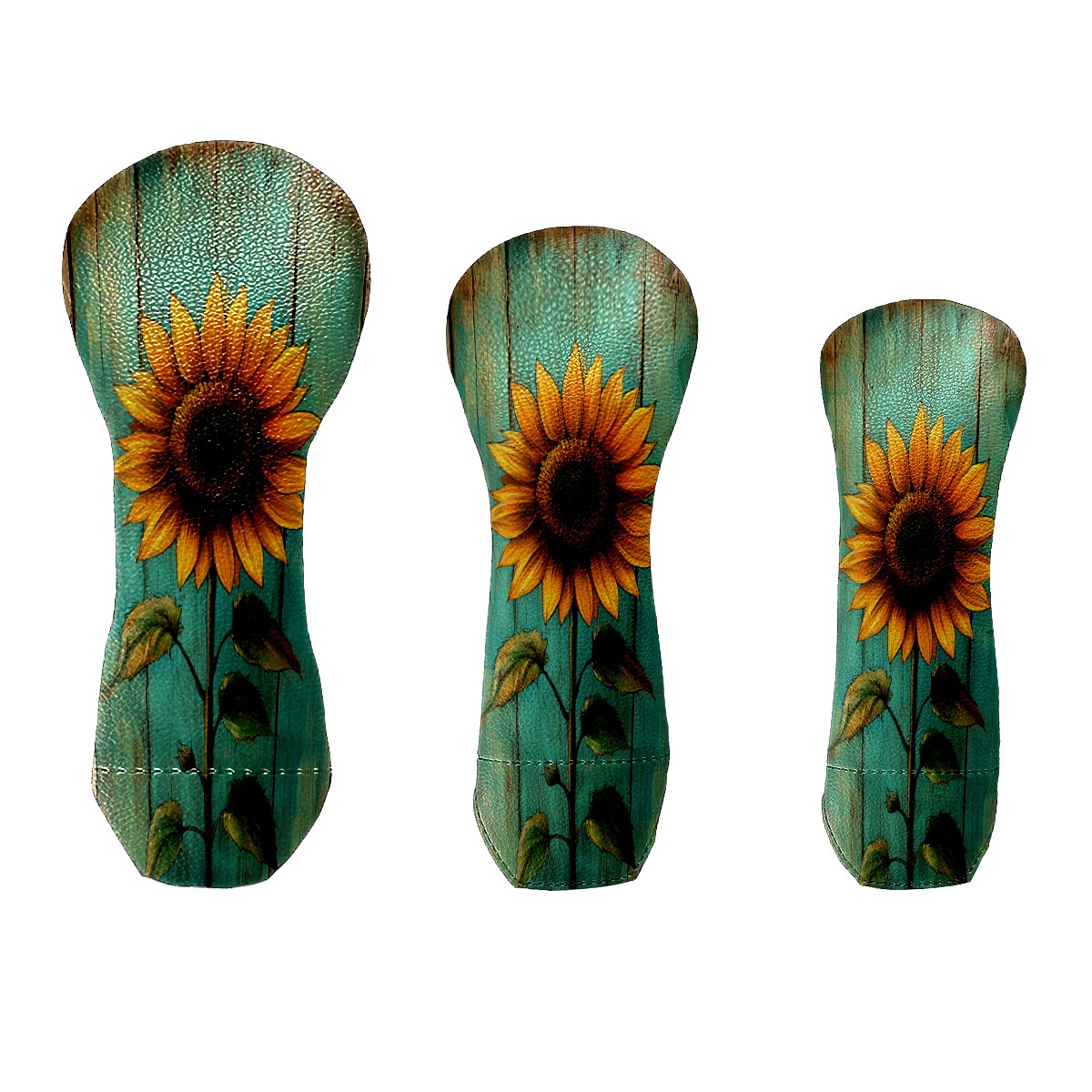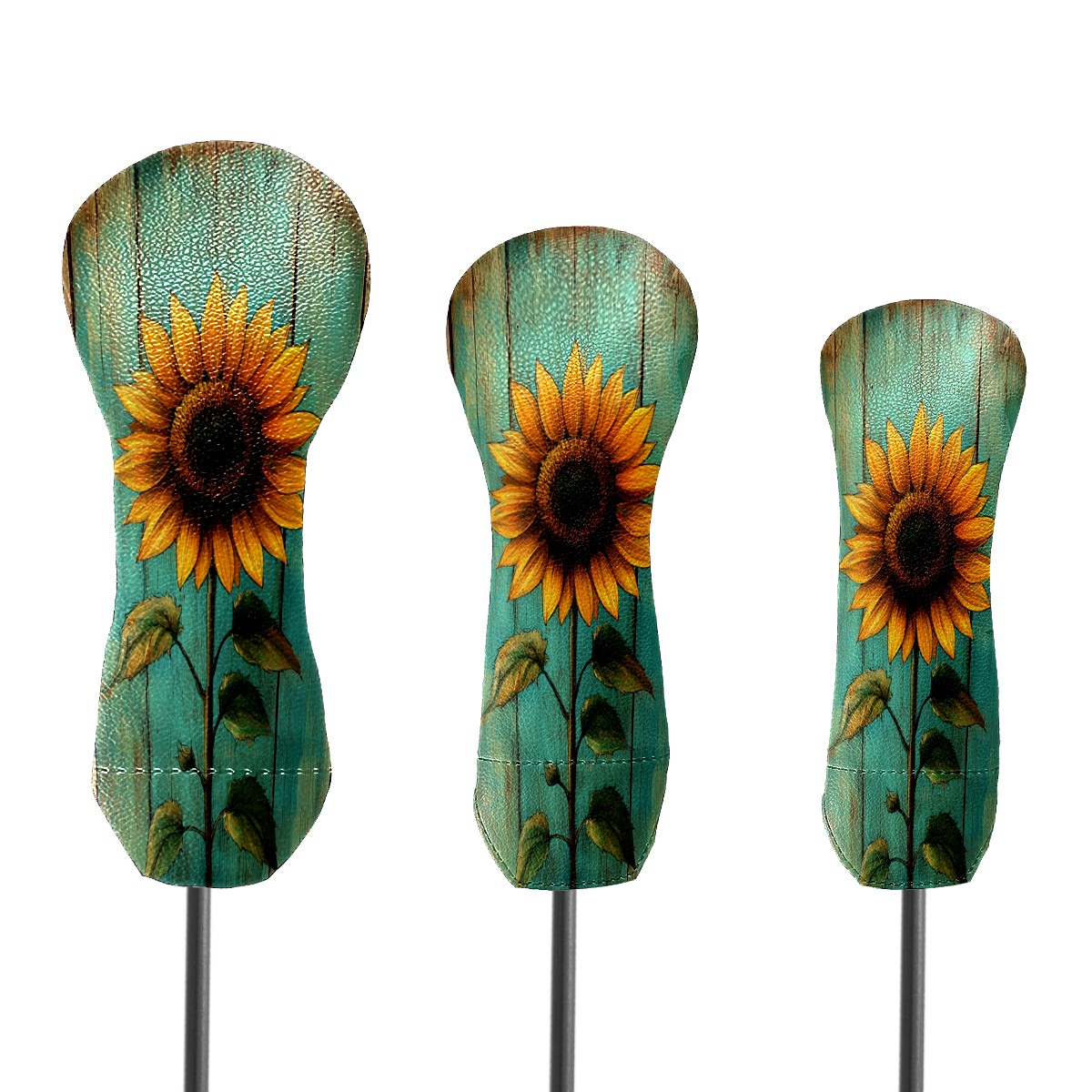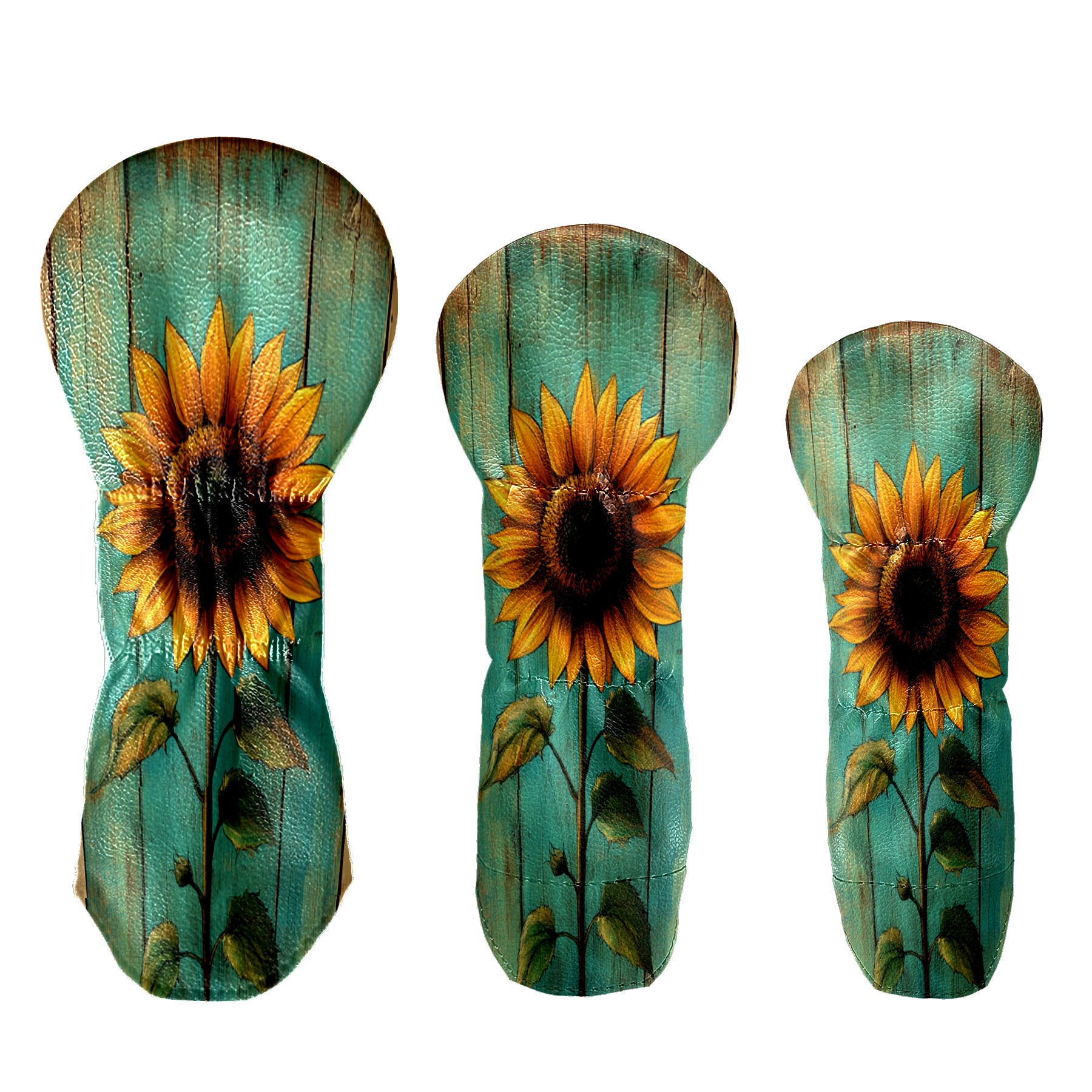 3 Pack PU Leather Golf Club Head Covers - Driver, Fairway Wood & Hybrid, Funny Golf Accessories, Ideal Golf Gift Sunflower Blue Pattern