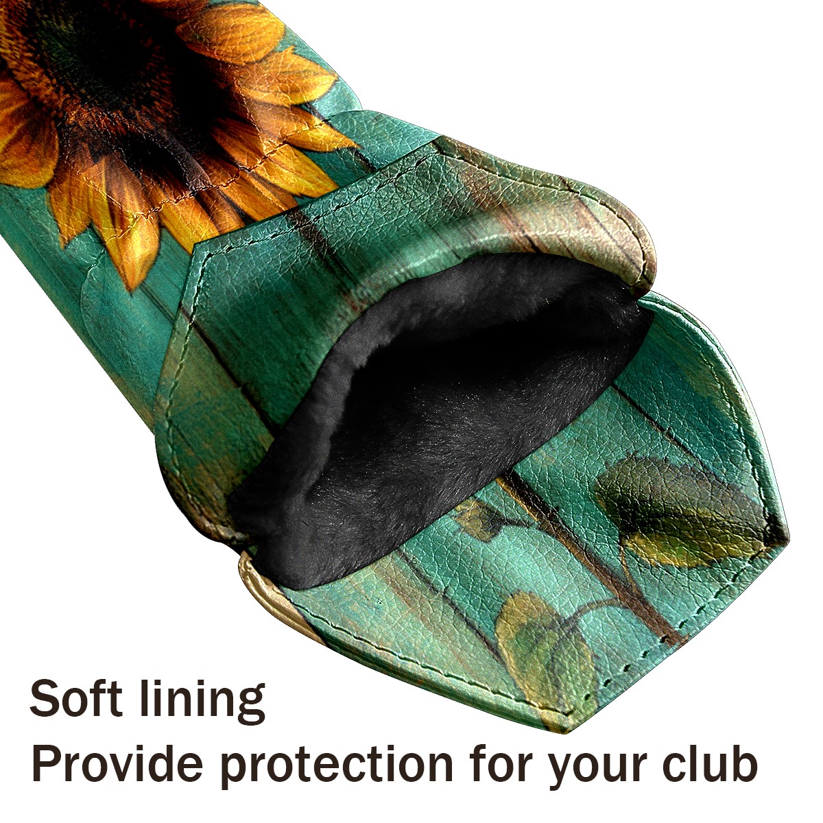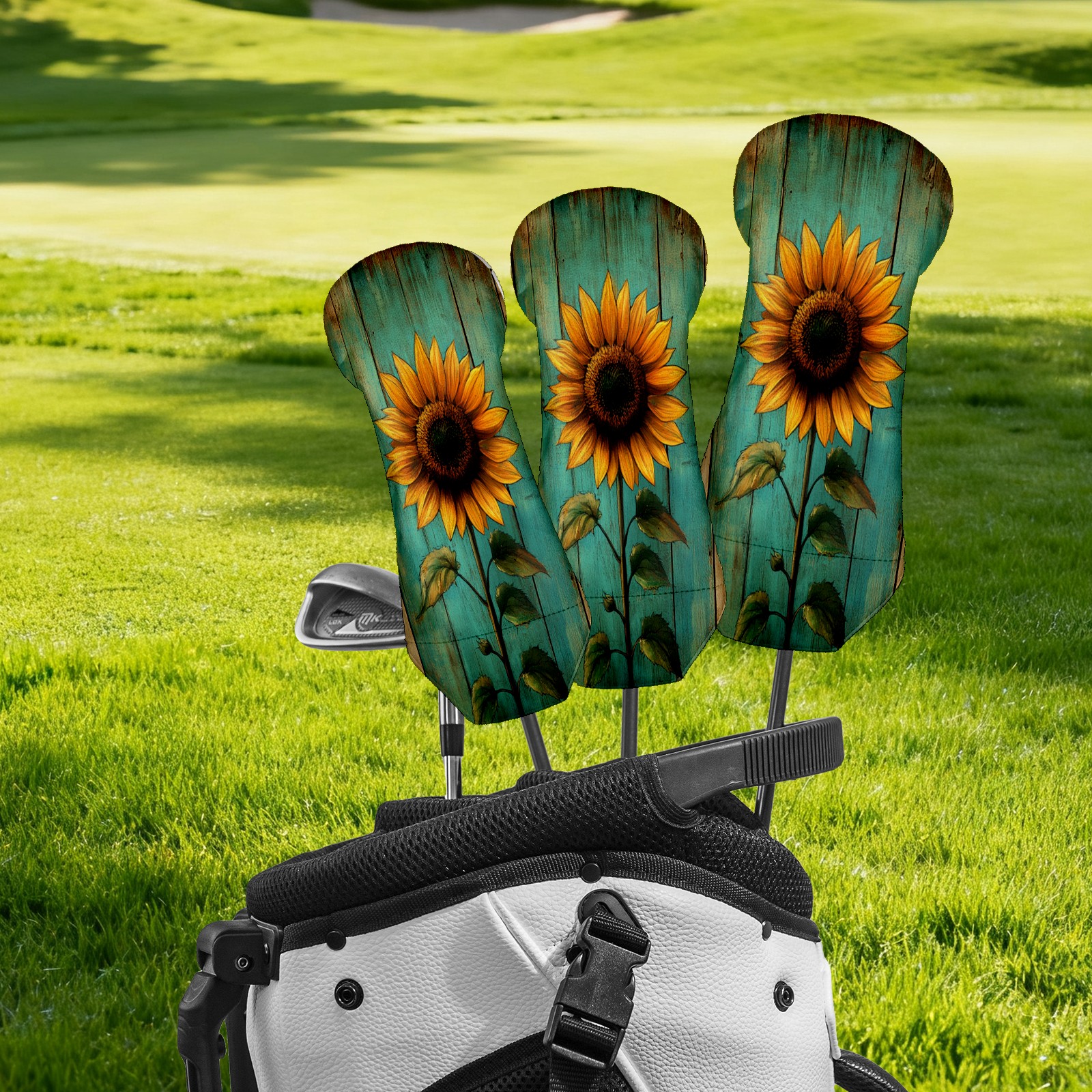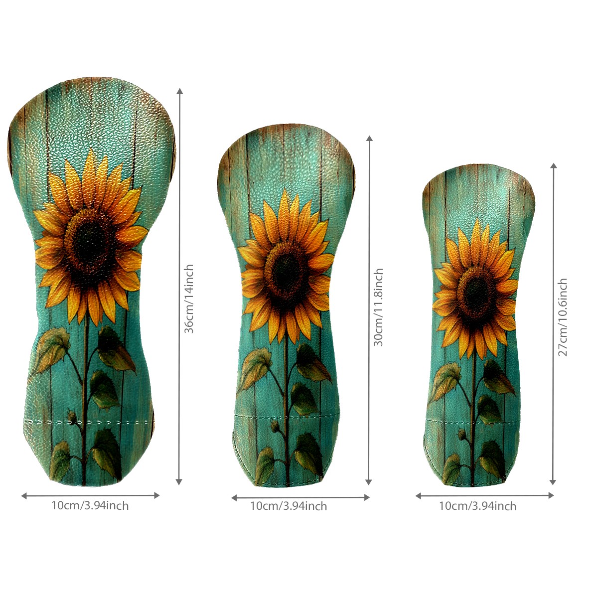 3 Pack PU Leather Golf Club Head Covers - Driver, Fairway Wood & Hybrid, Funny Golf Accessories, Ideal Golf Gift Sunflower Blue Pattern