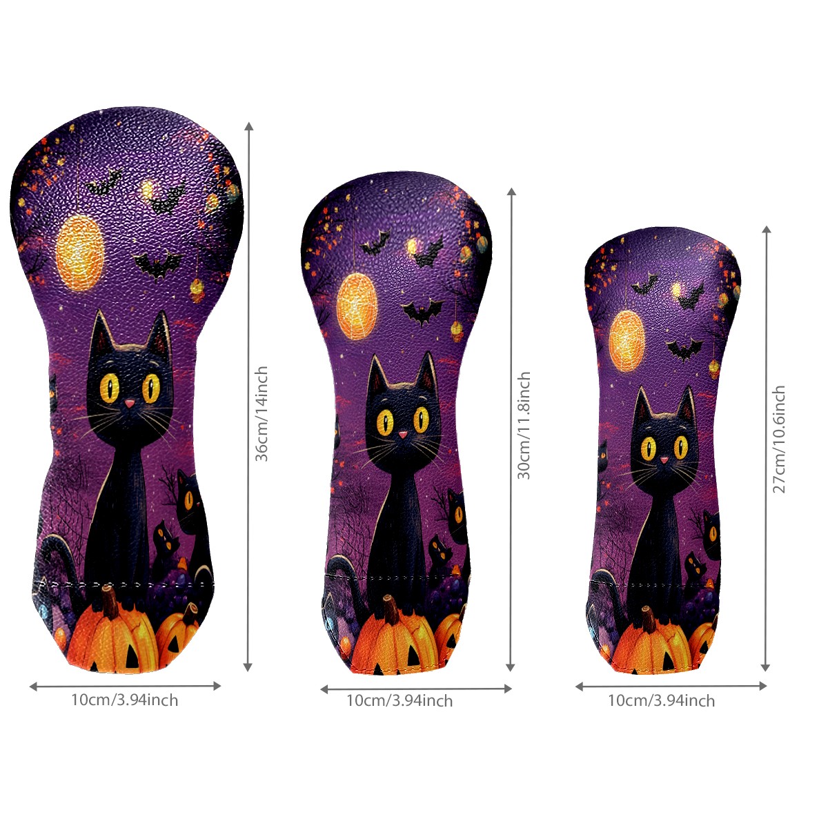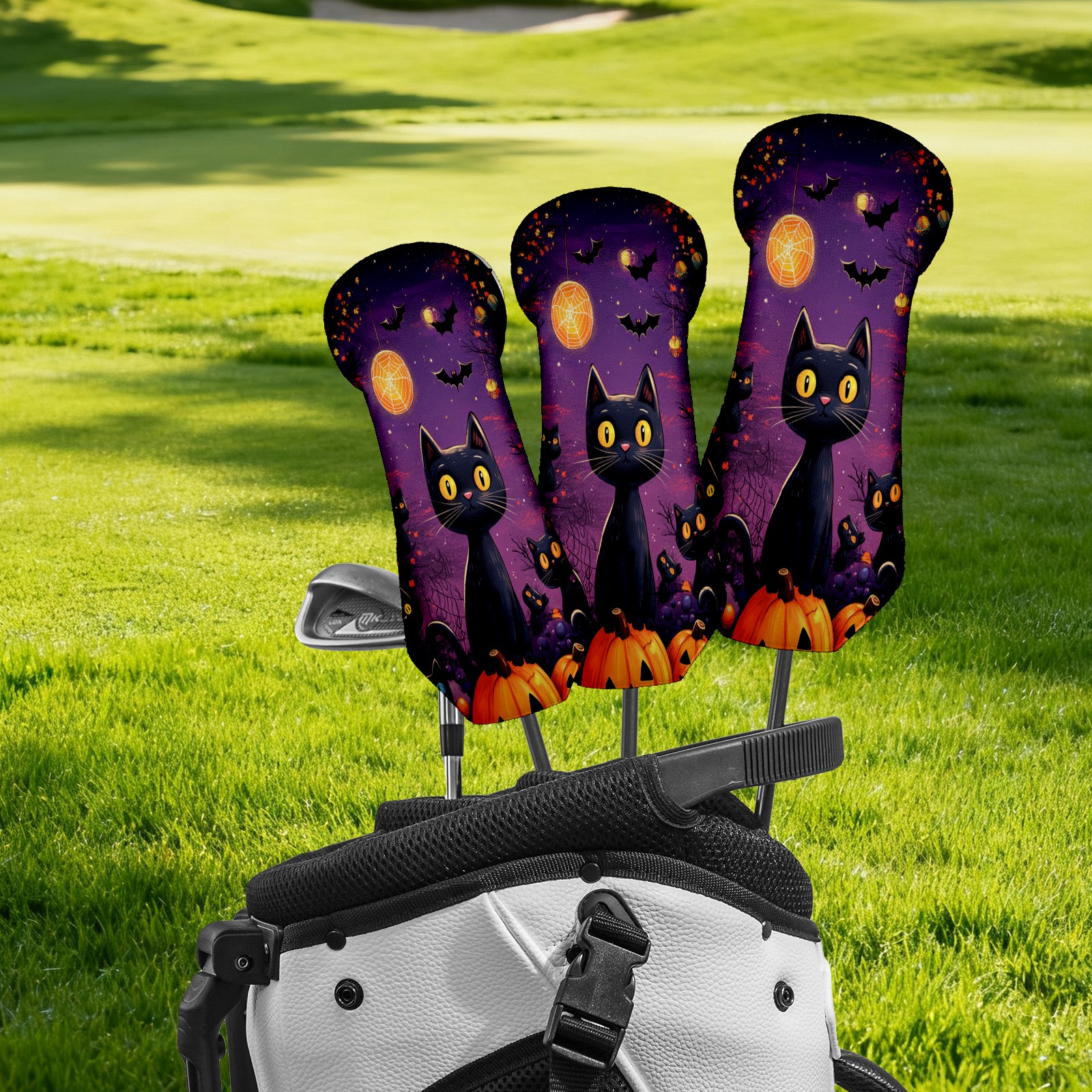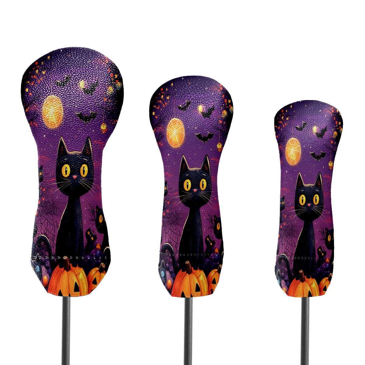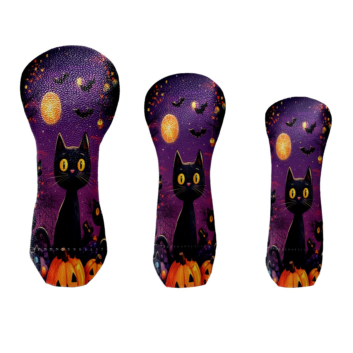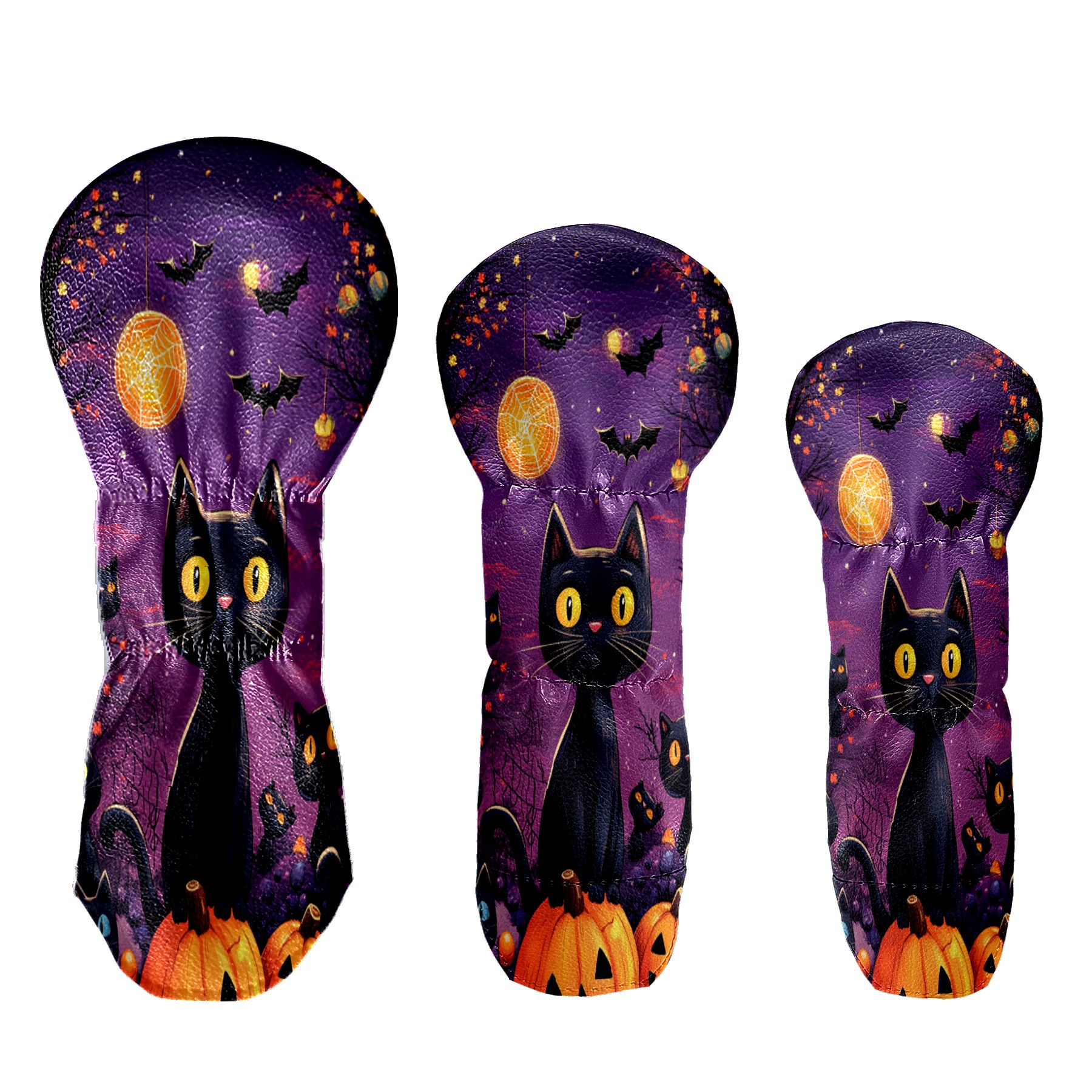 3 Pack PU Leather Golf Club Head Covers - Driver, Fairway Wood & Hybrid, Funny Golf Accessories, Ideal Golf Gift Pumpkin cat pattern