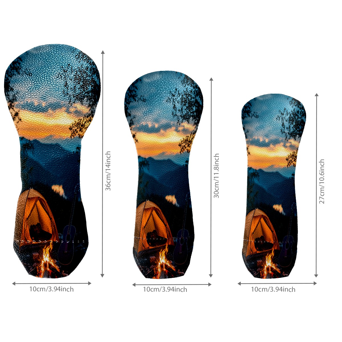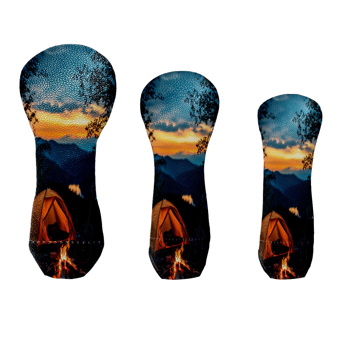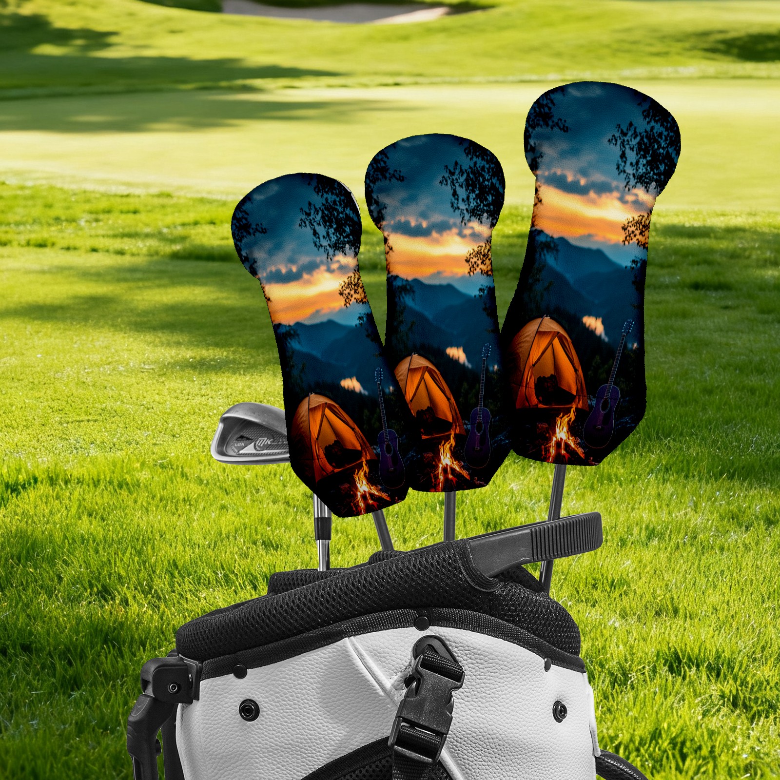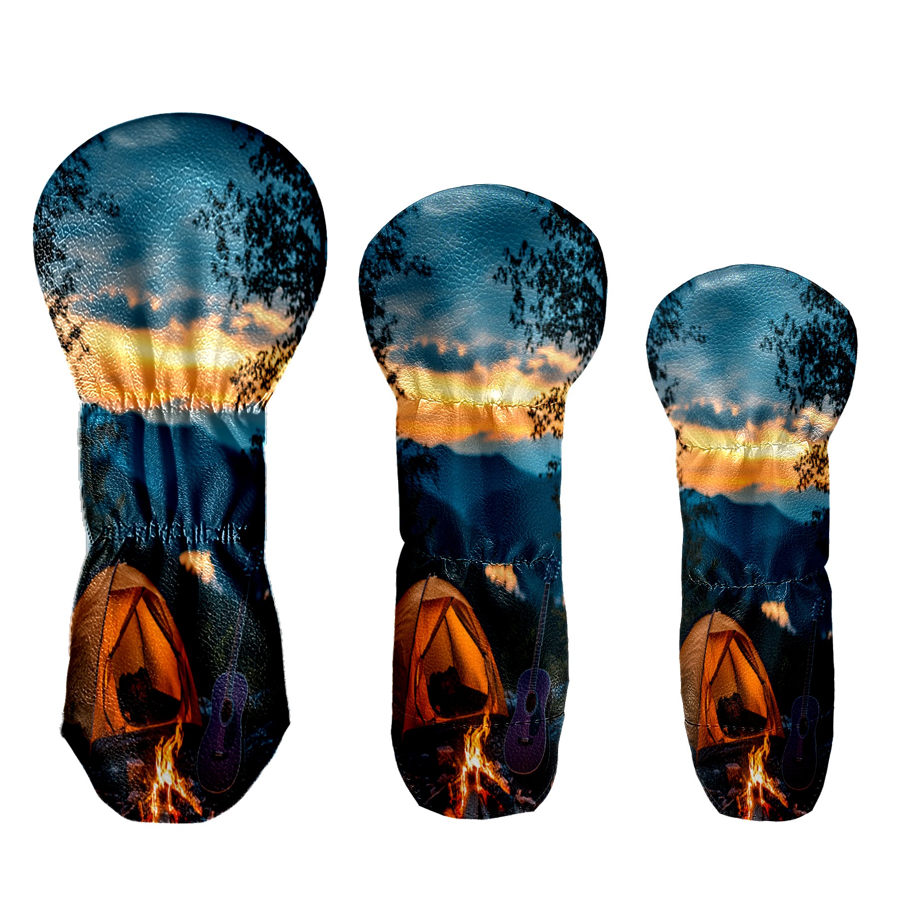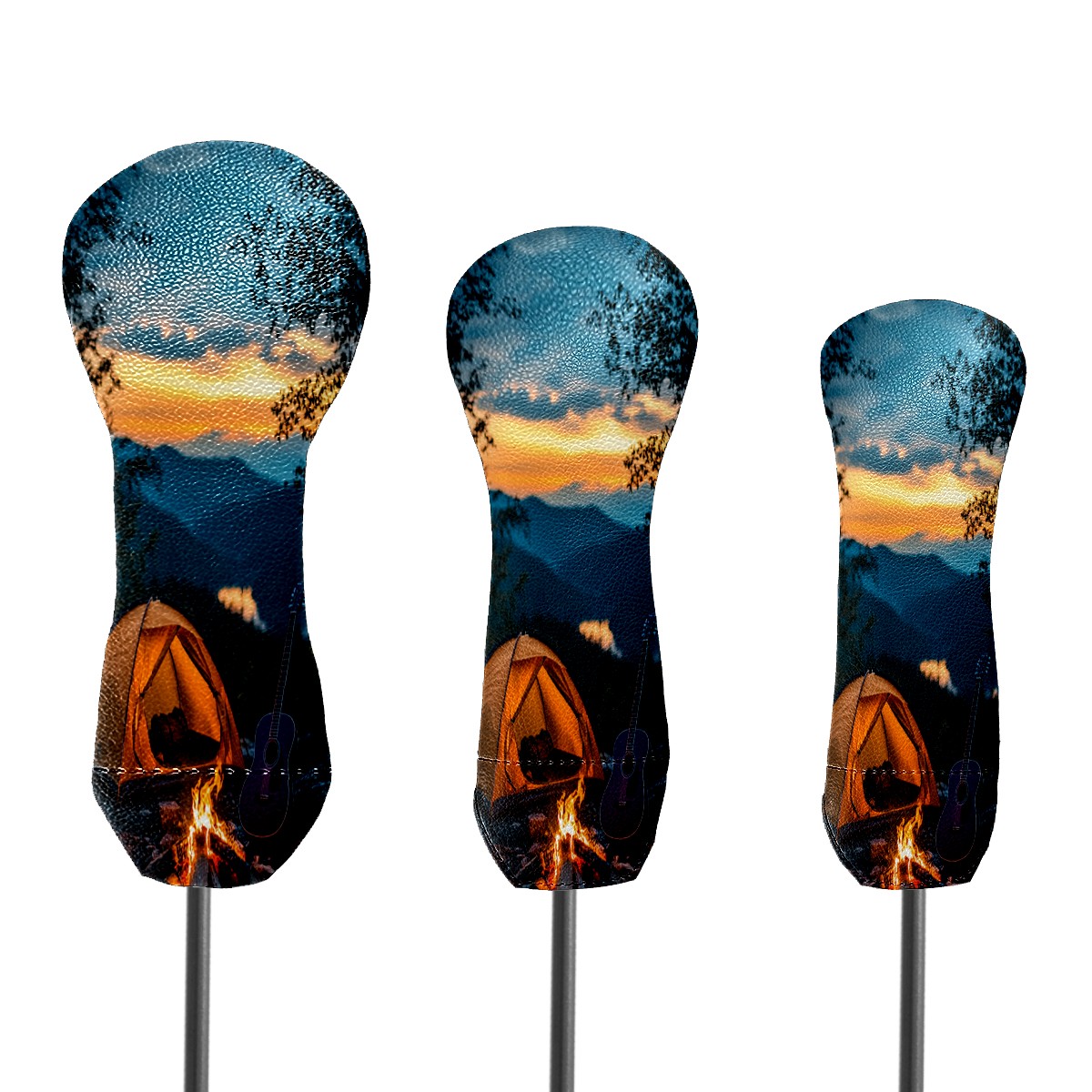 3 Pack PU Leather Golf Club Head Covers - Driver, Fairway Wood & Hybrid, Funny Golf Accessories, Ideal Golf Gift Guitar Camping Pattern