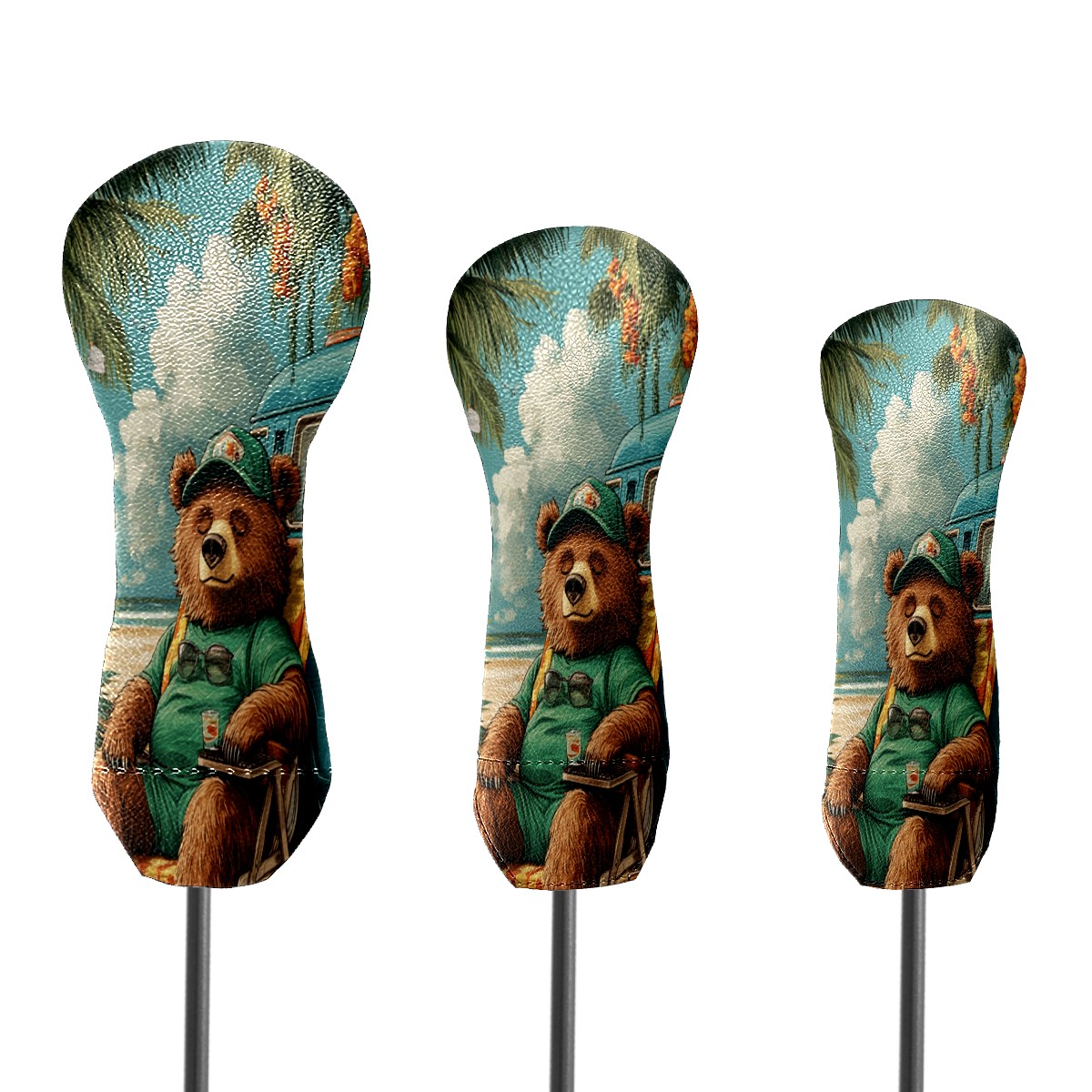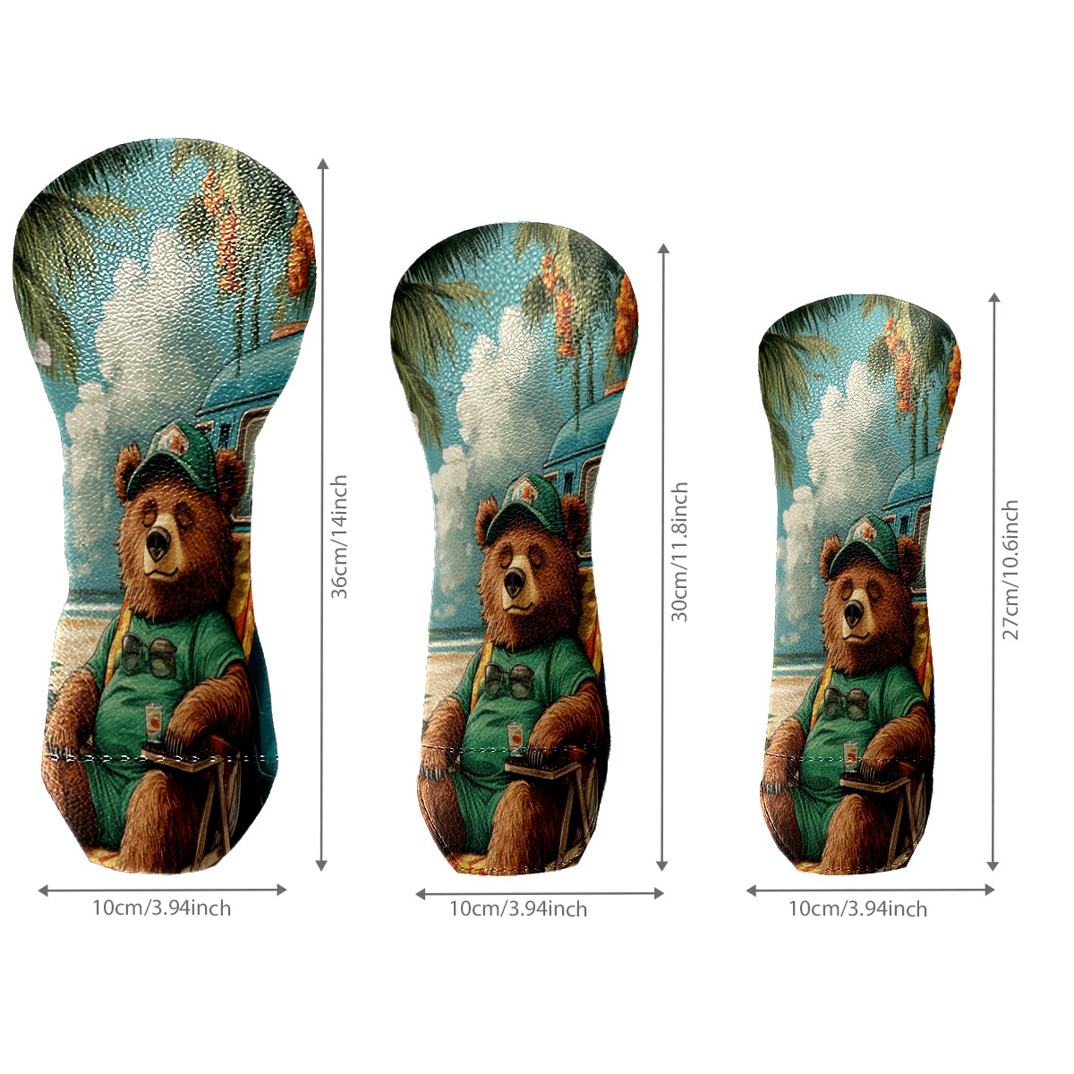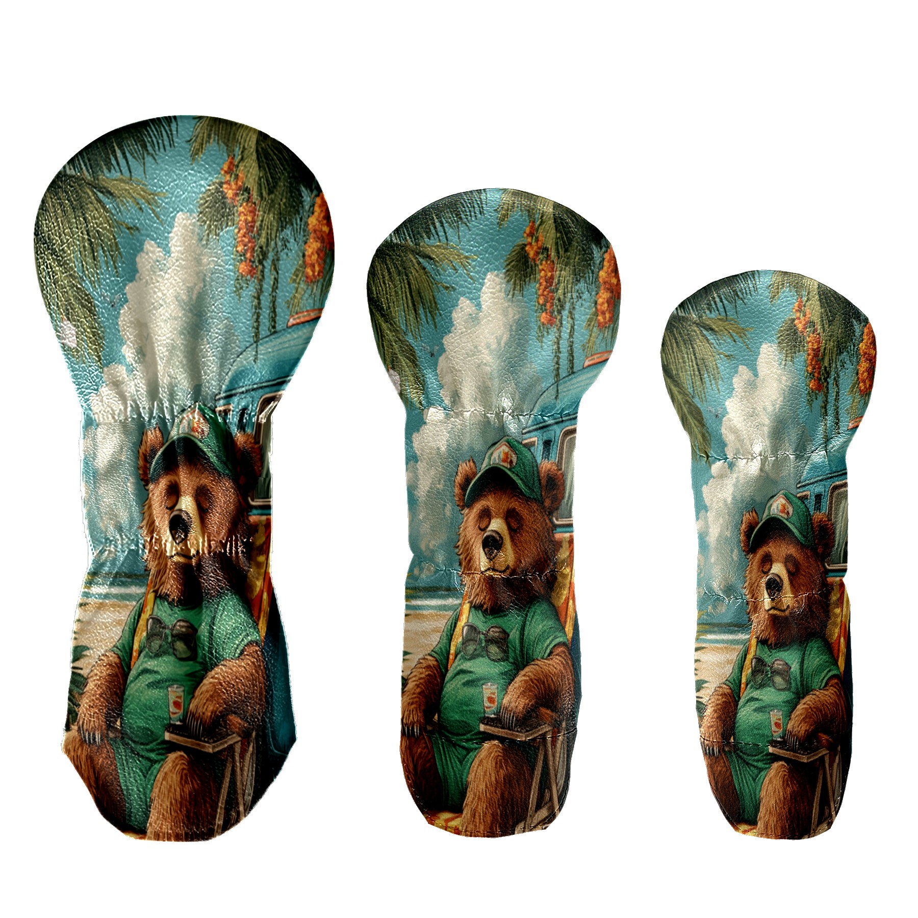 3 Pack PU Leather Golf Club Head Covers - Driver, Fairway Wood & Hybrid, Funny Golf Accessories, Ideal Golf Gift Resting Bear Pattern
