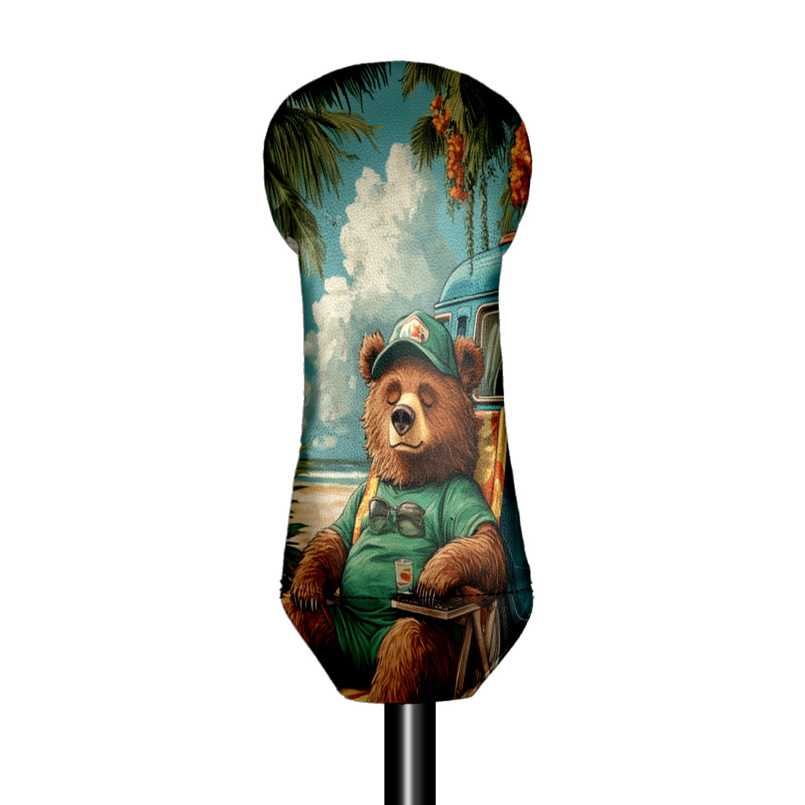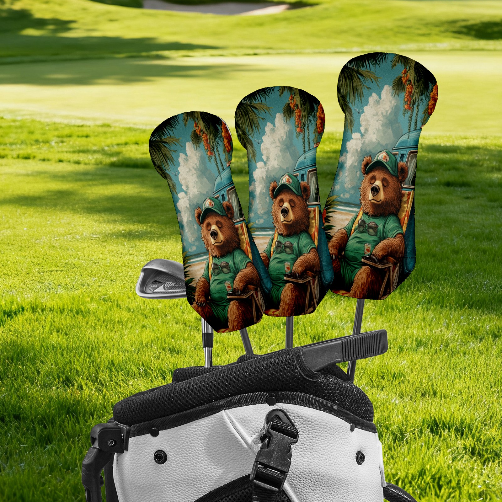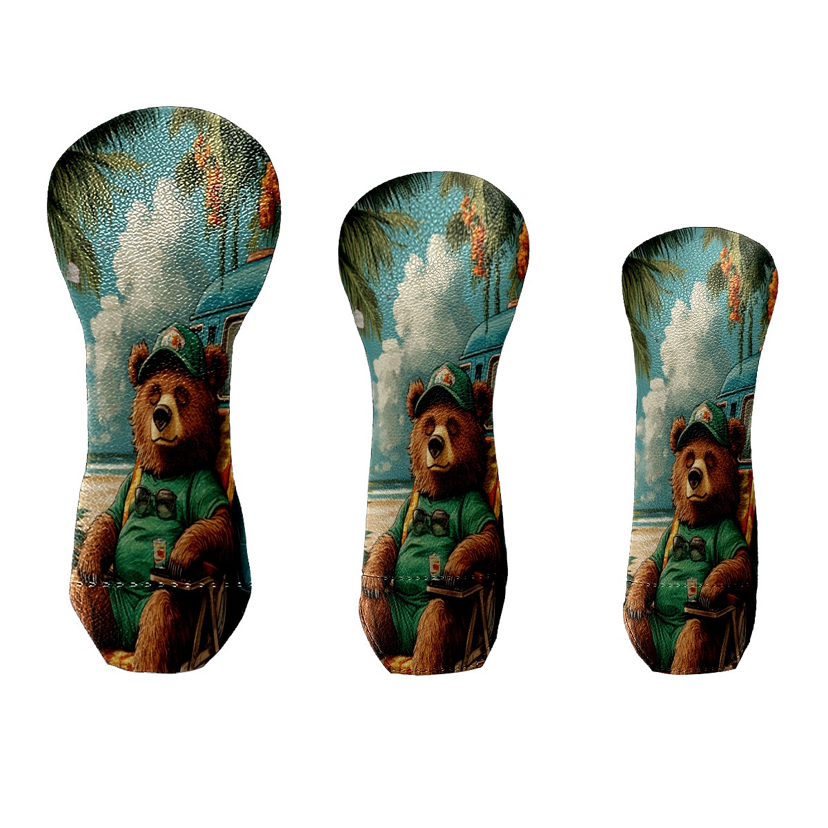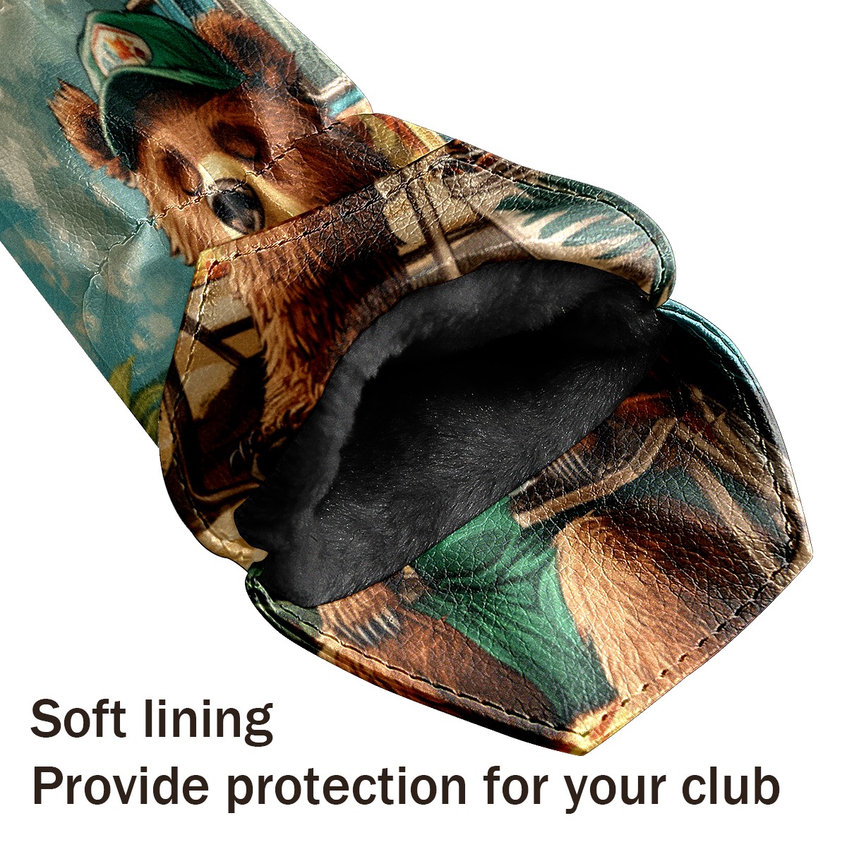3 Pack PU Leather Golf Club Head Covers - Driver, Fairway Wood & Hybrid, Funny Golf Accessories, Ideal Golf Gift Resting Bear Pattern