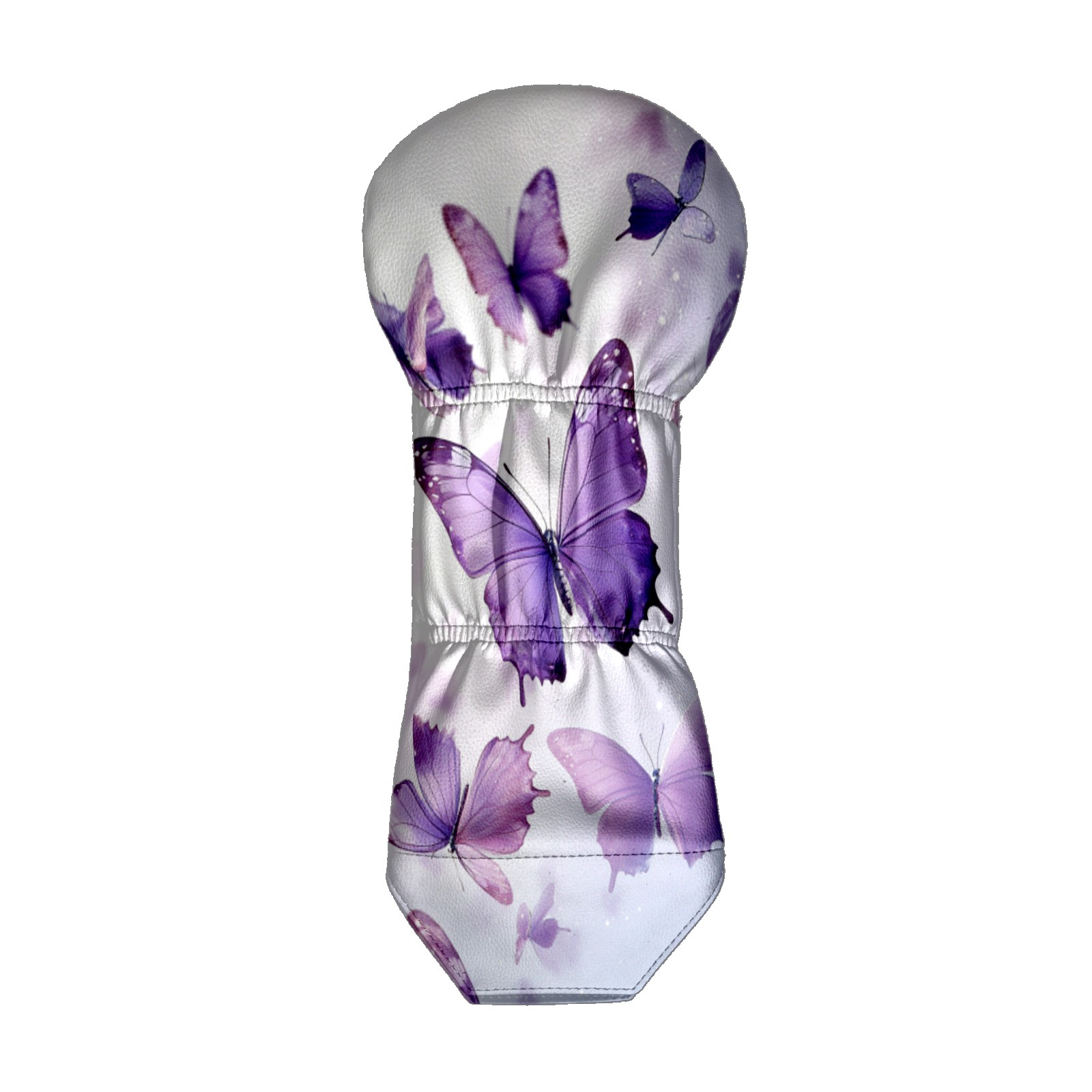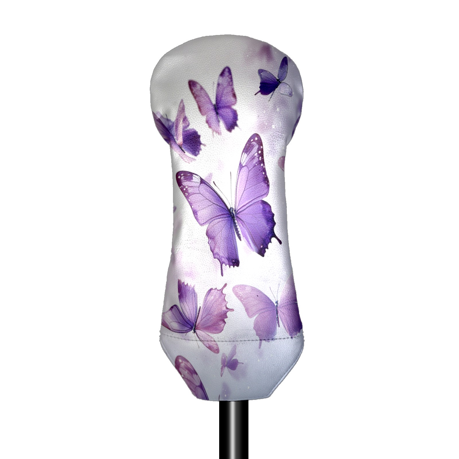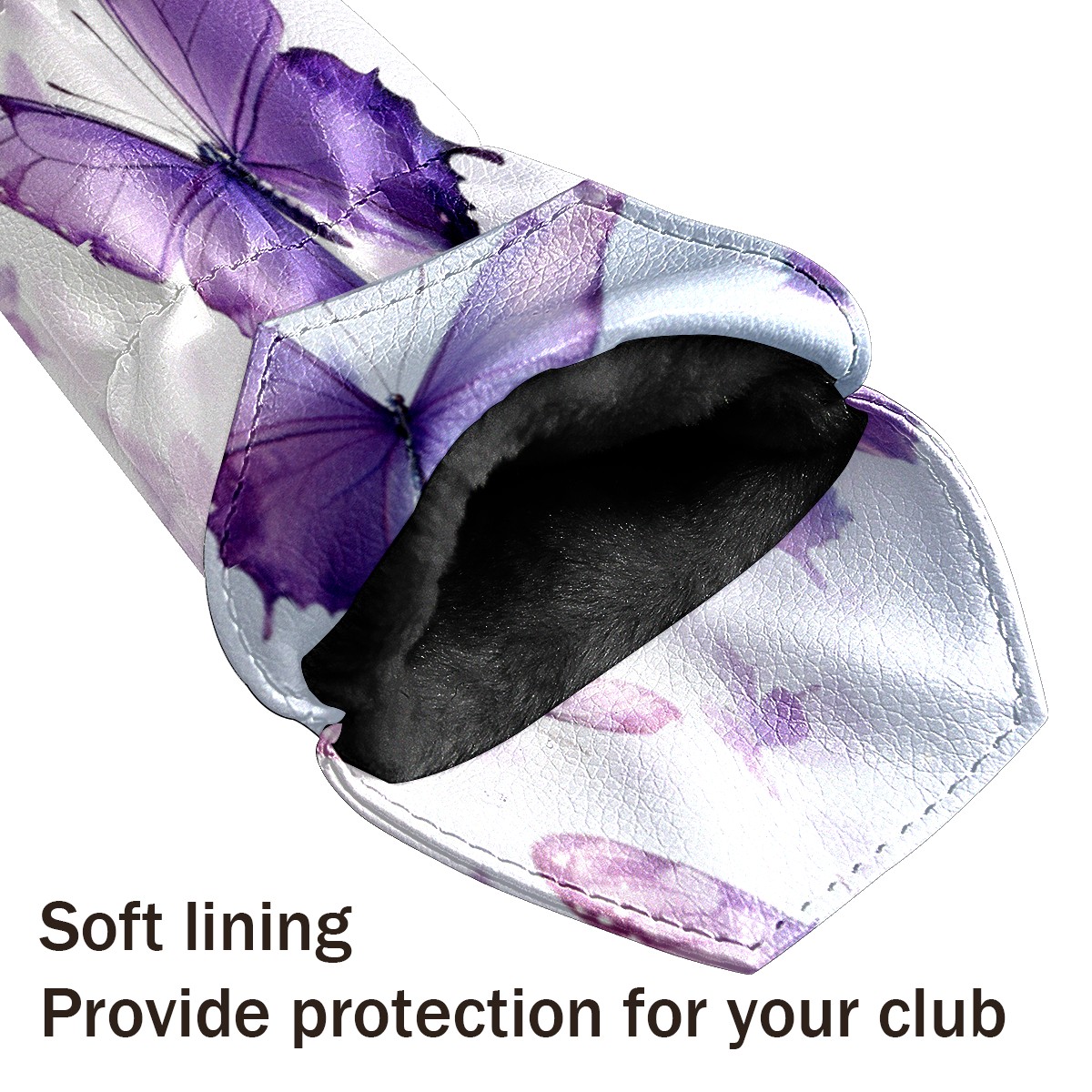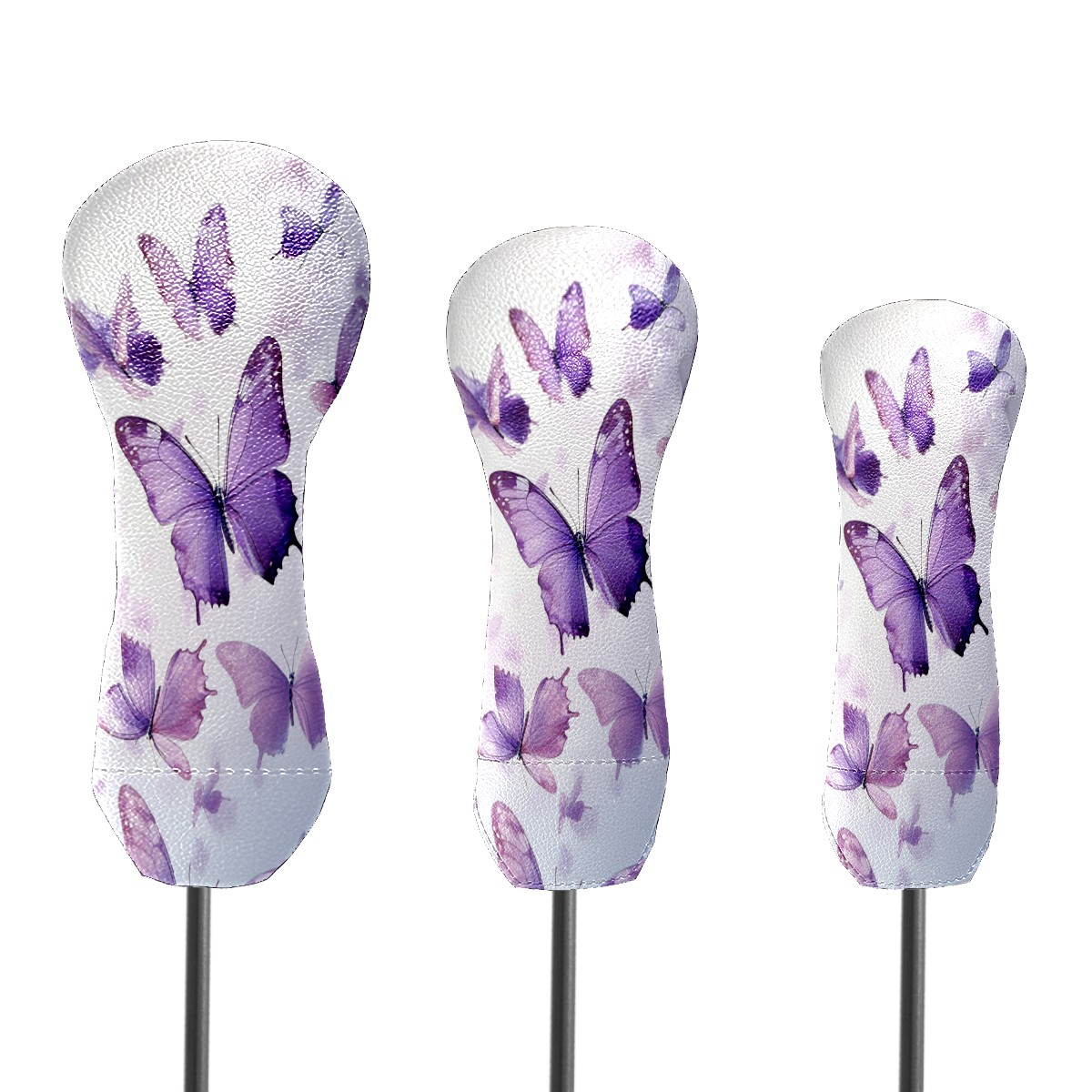 3 Pack PU Leather Golf Club Head Covers - Driver, Fairway Wood & Hybrid, Funny Golf Accessories, Ideal Golf Gift Purple Butterfly Pattern