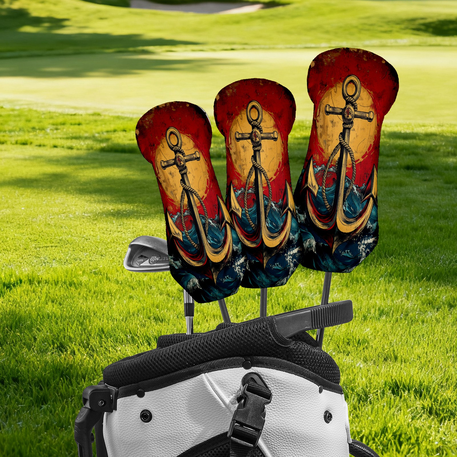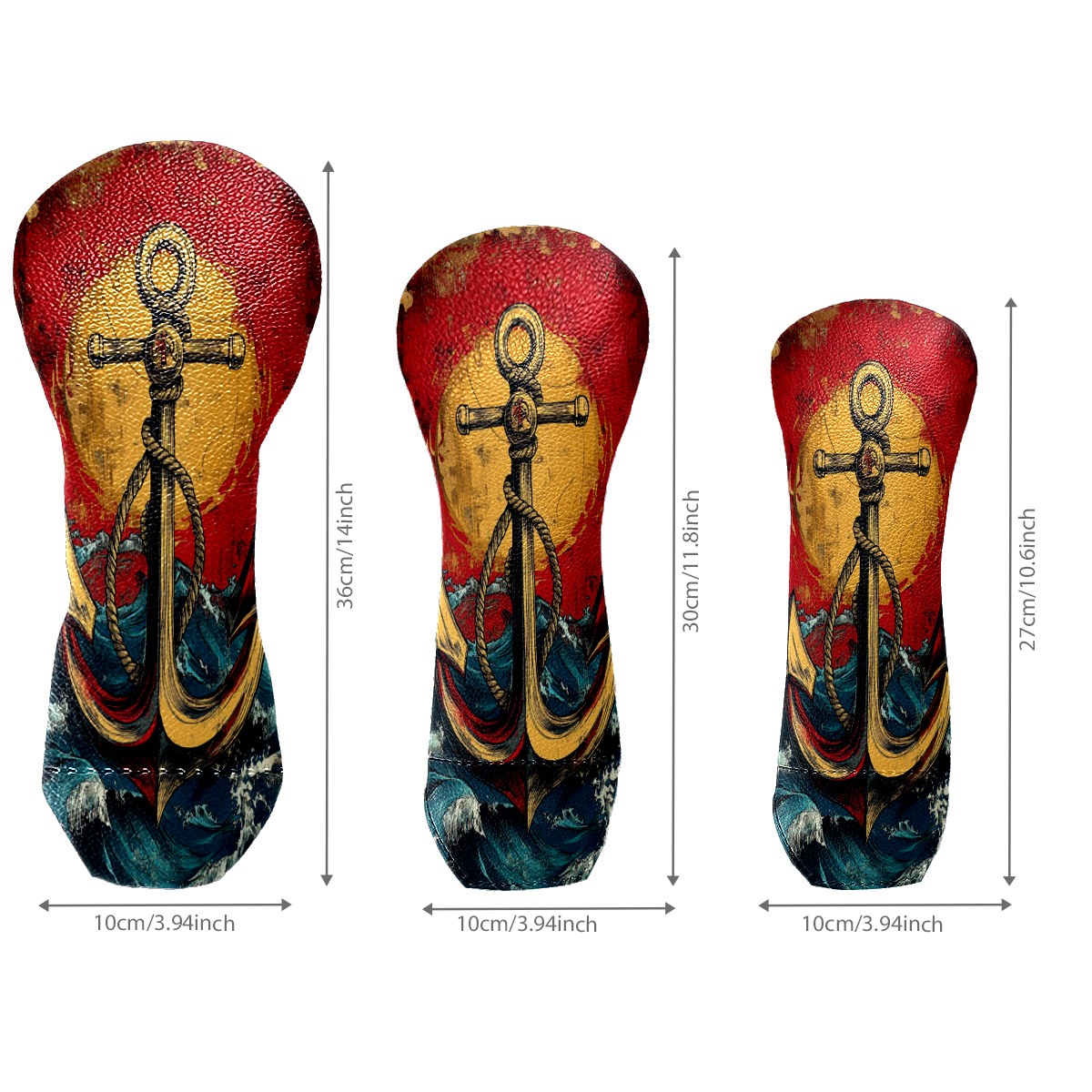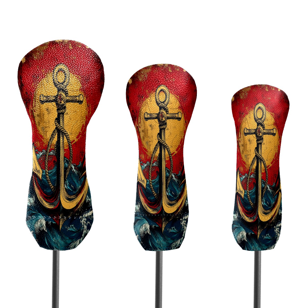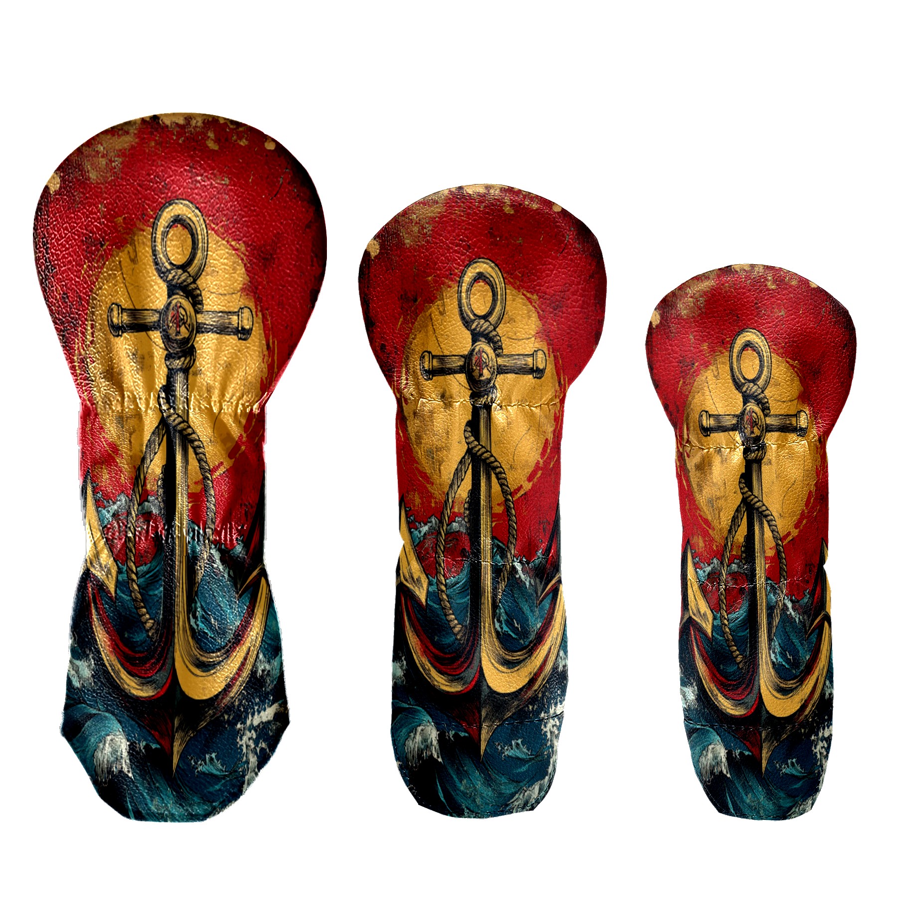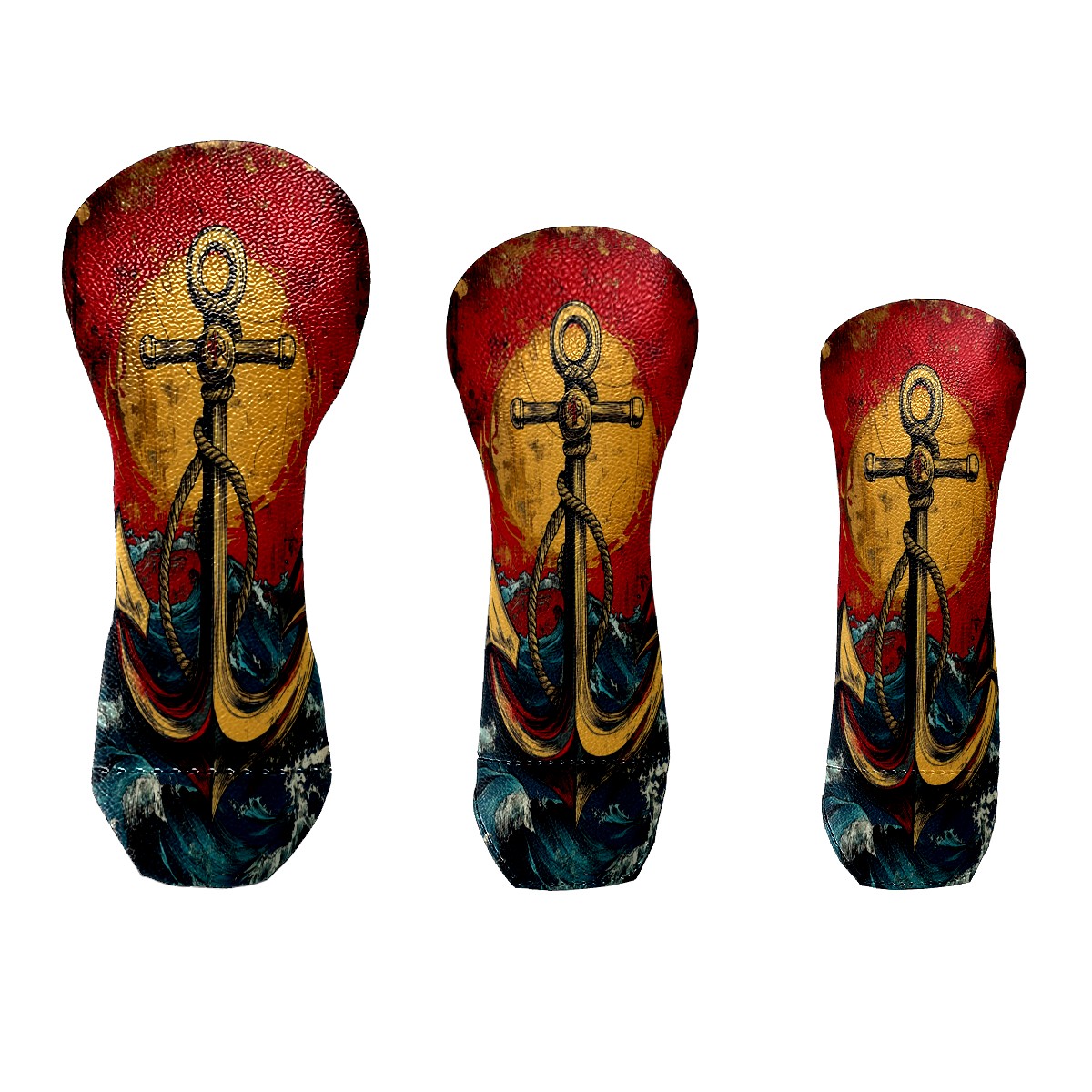 3 Pack PU Leather Golf Club Head Covers - Driver, Fairway Wood & Hybrid, Funny Golf Accessories, Ideal Golf Gift Anchor Pattern