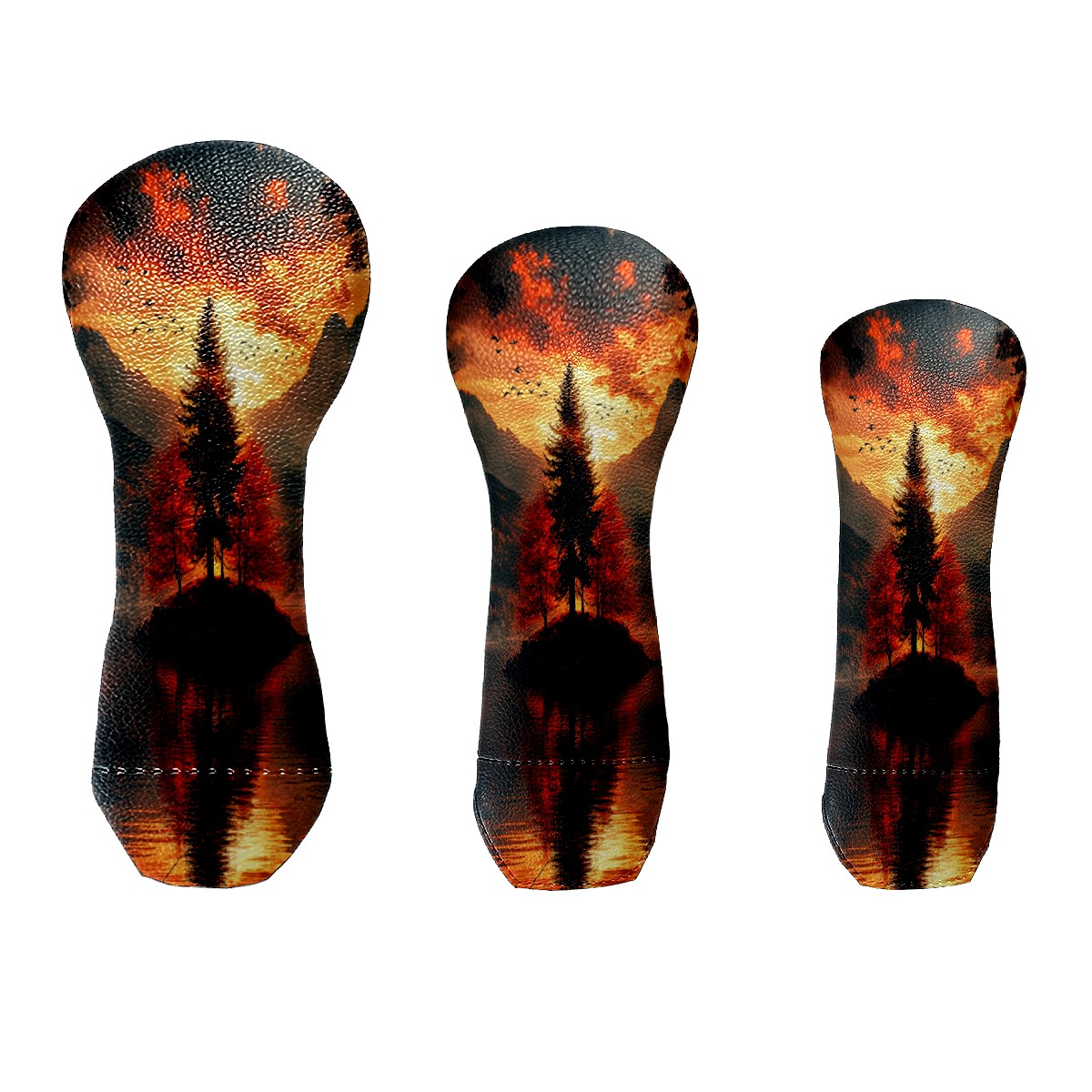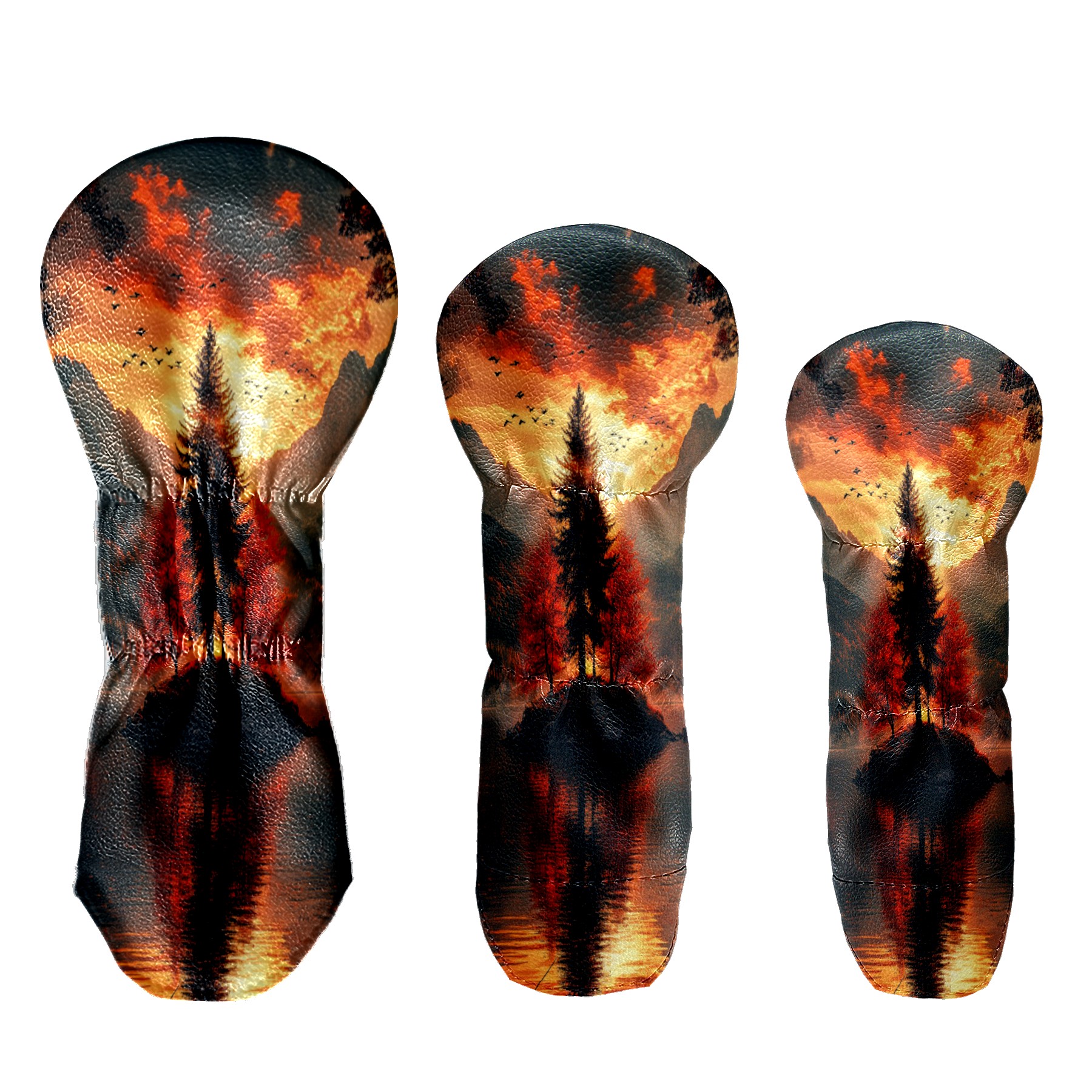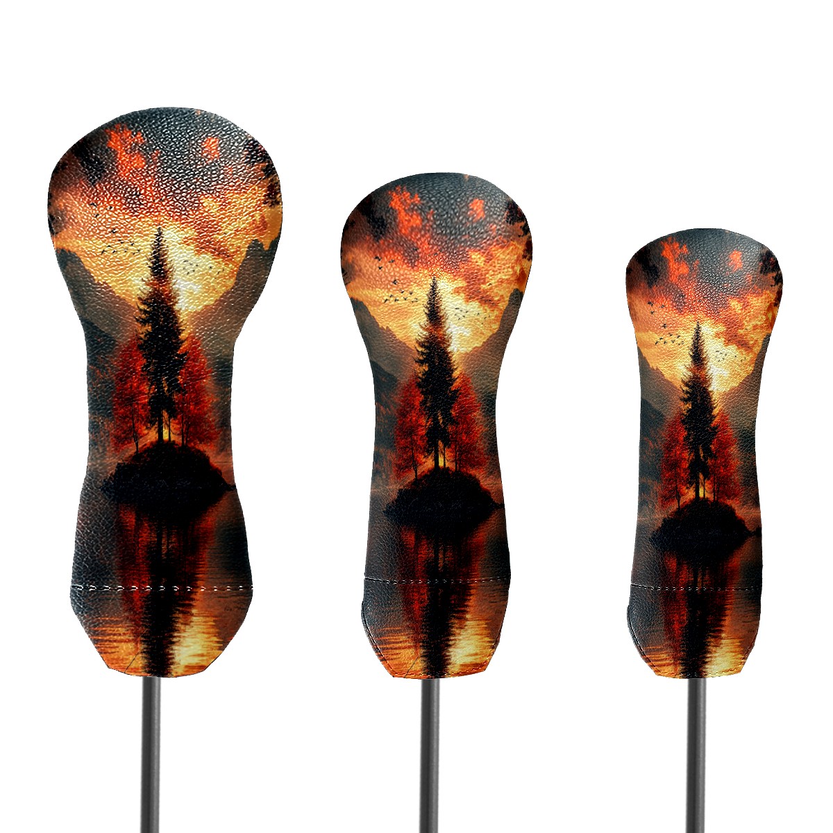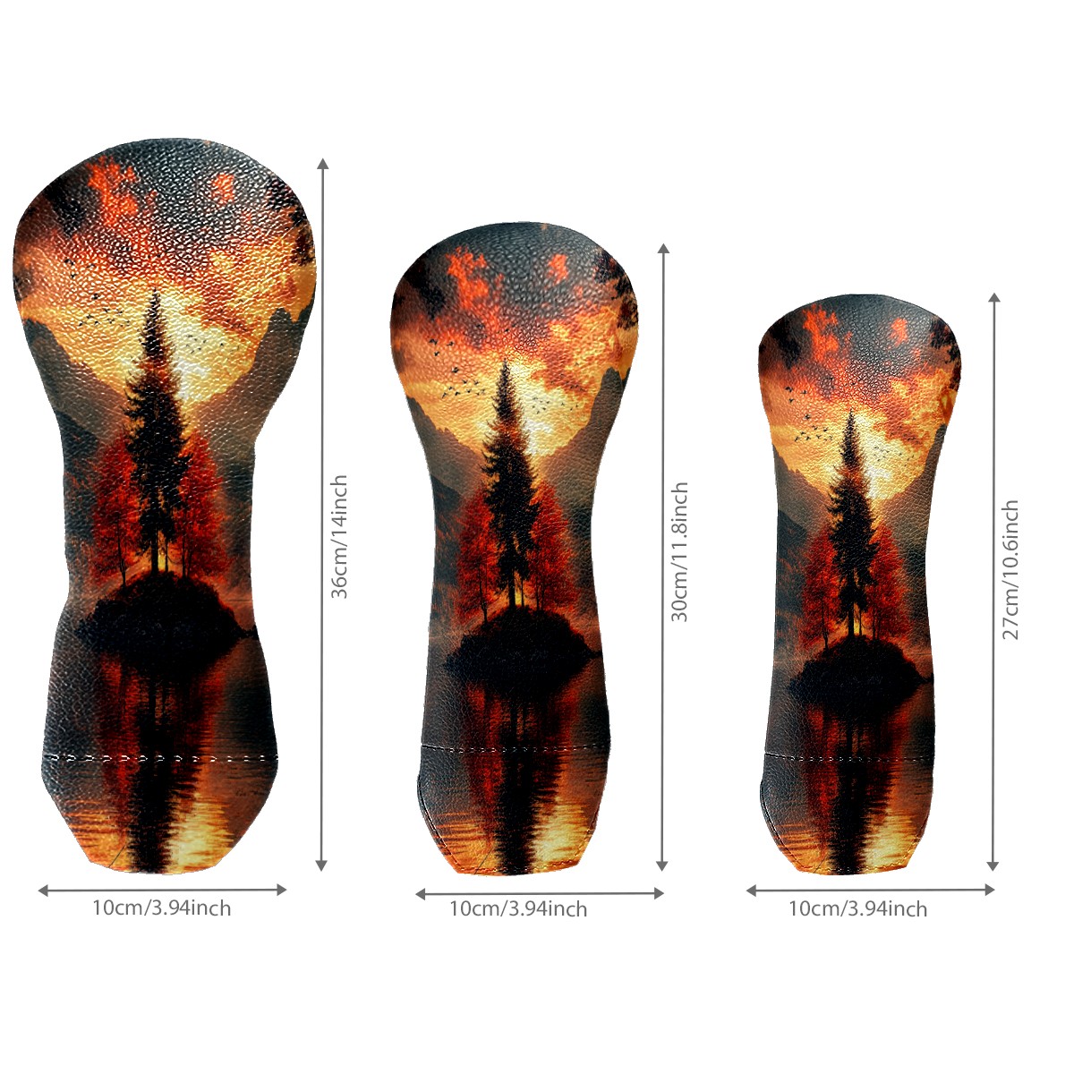 3 Pack PU Leather Golf Club Head Covers - Driver, Fairway Wood & Hybrid, Funny Golf Accessories, Ideal Golf Gift Tree Reflection Pattern