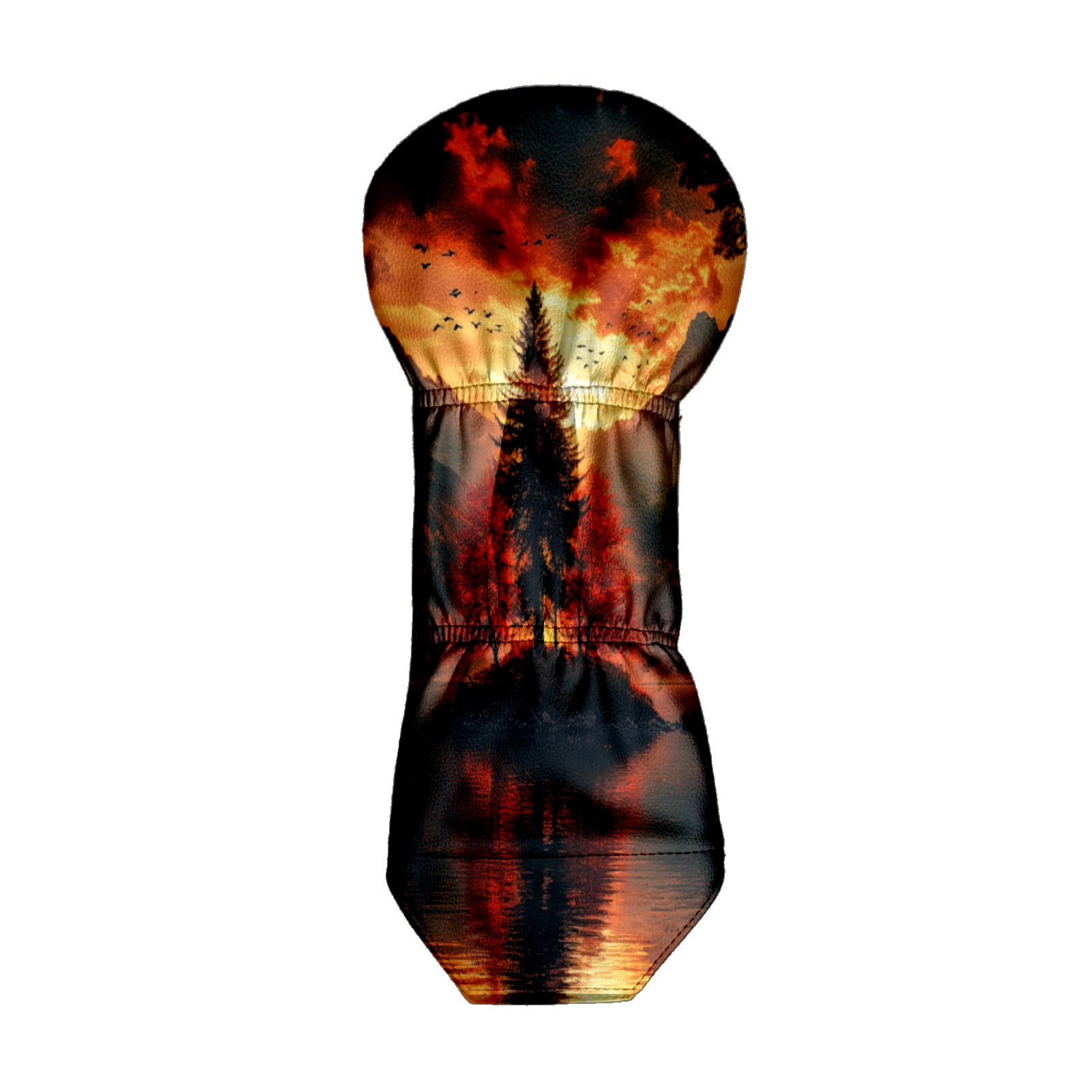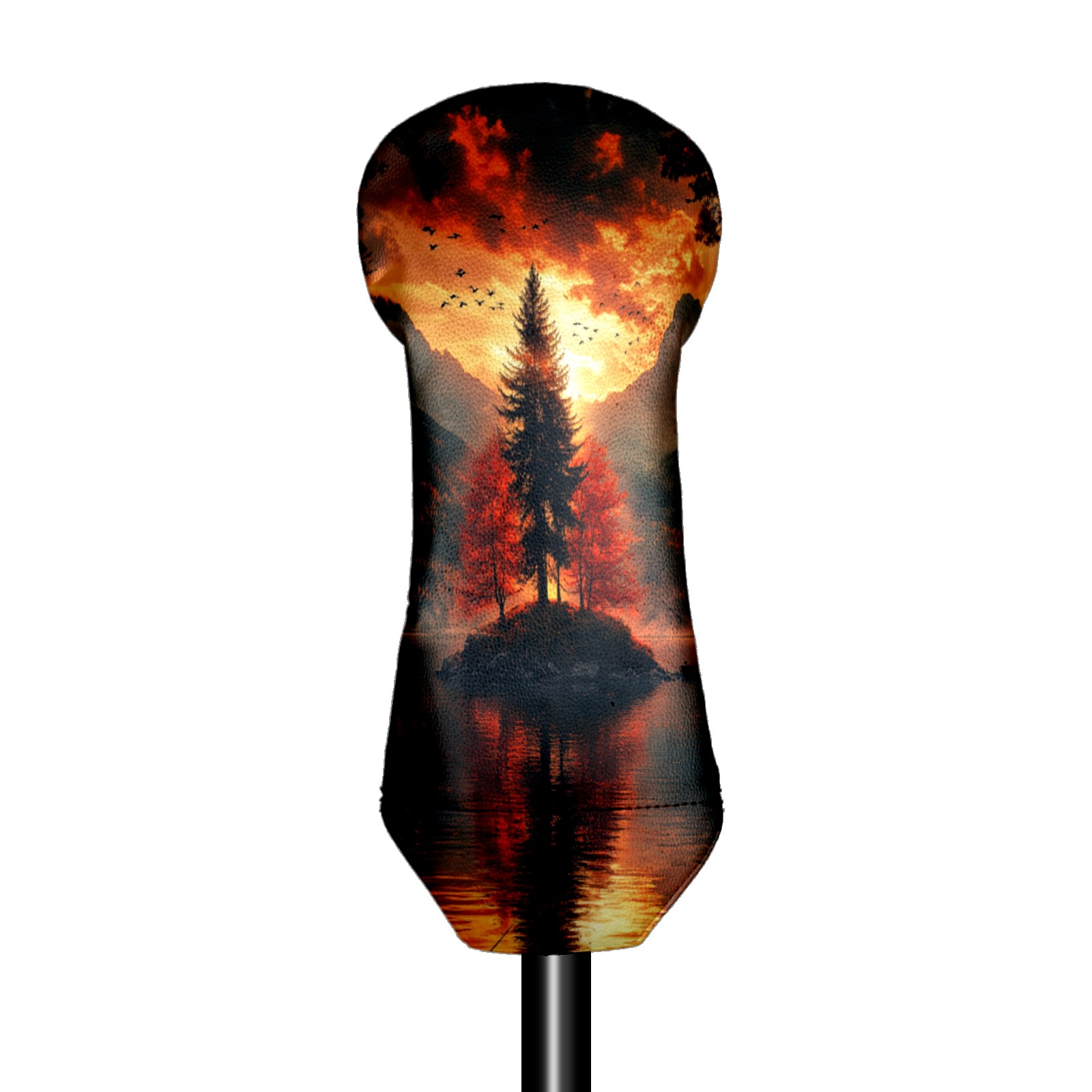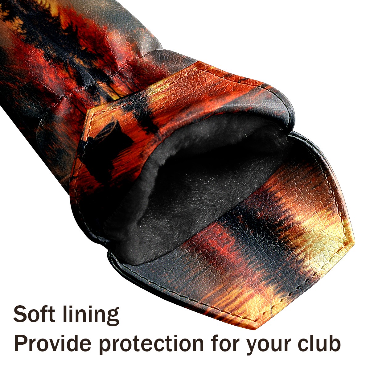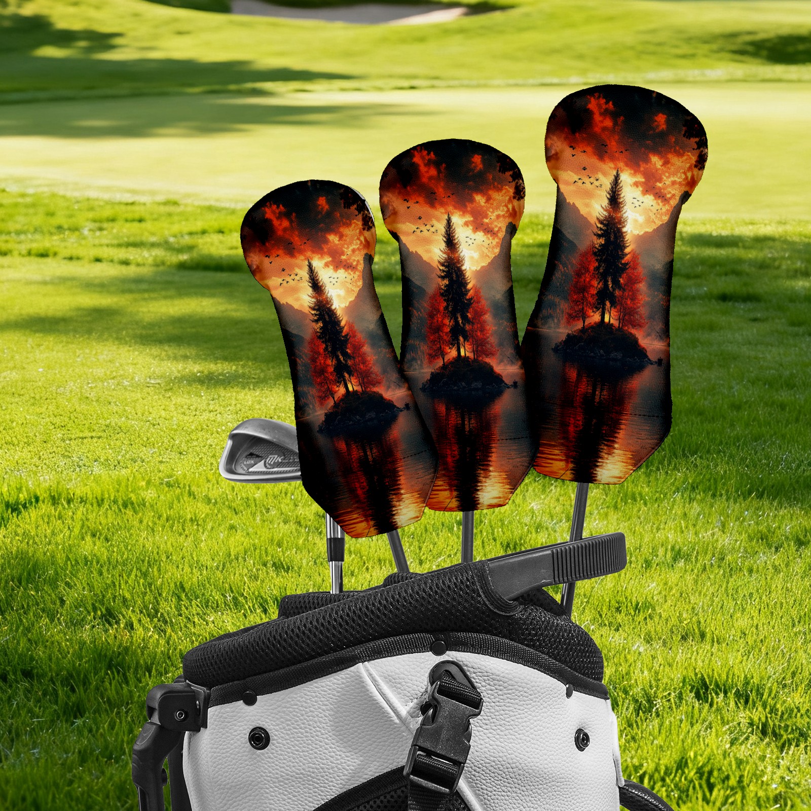 3 Pack PU Leather Golf Club Head Covers - Driver, Fairway Wood & Hybrid, Funny Golf Accessories, Ideal Golf Gift Tree Reflection Pattern