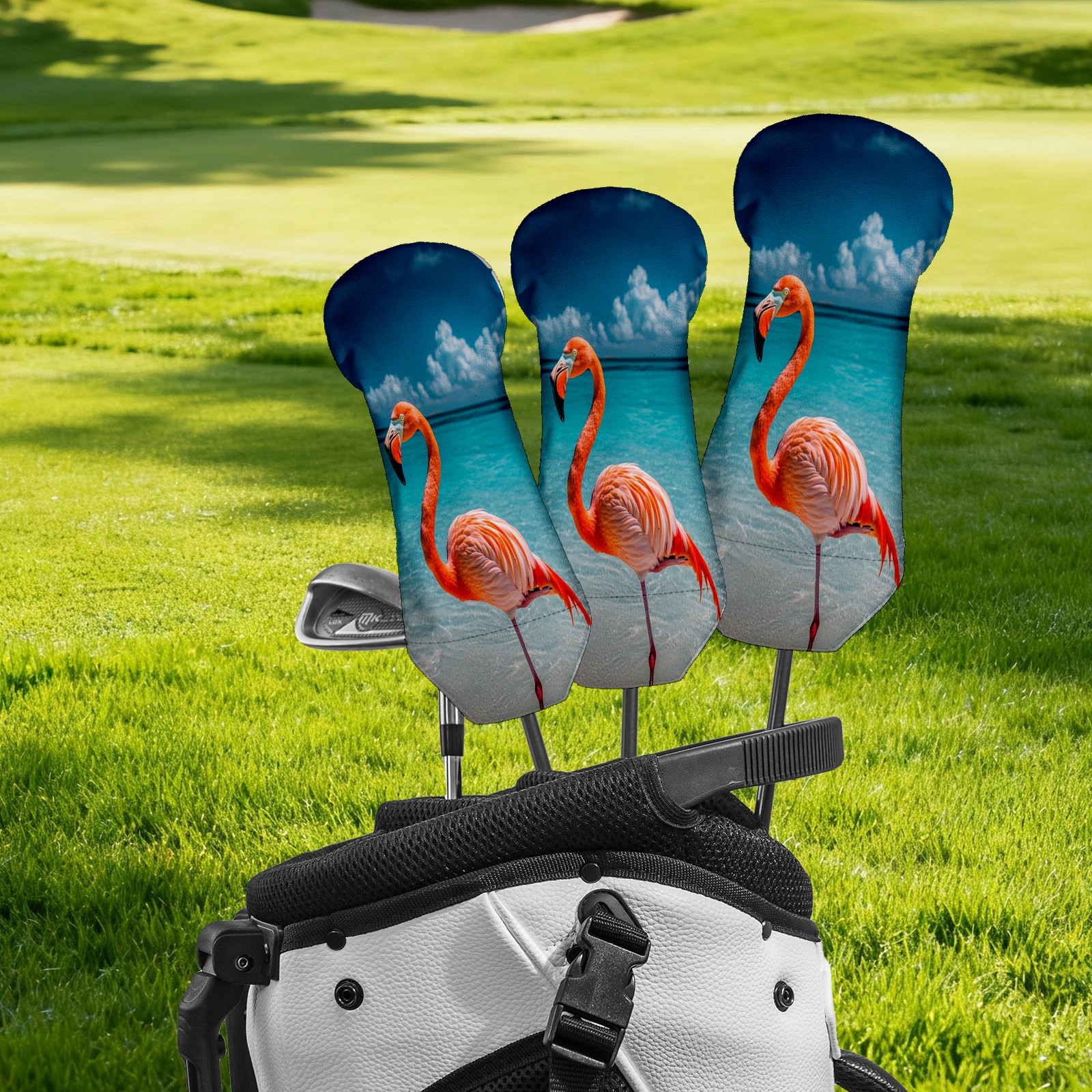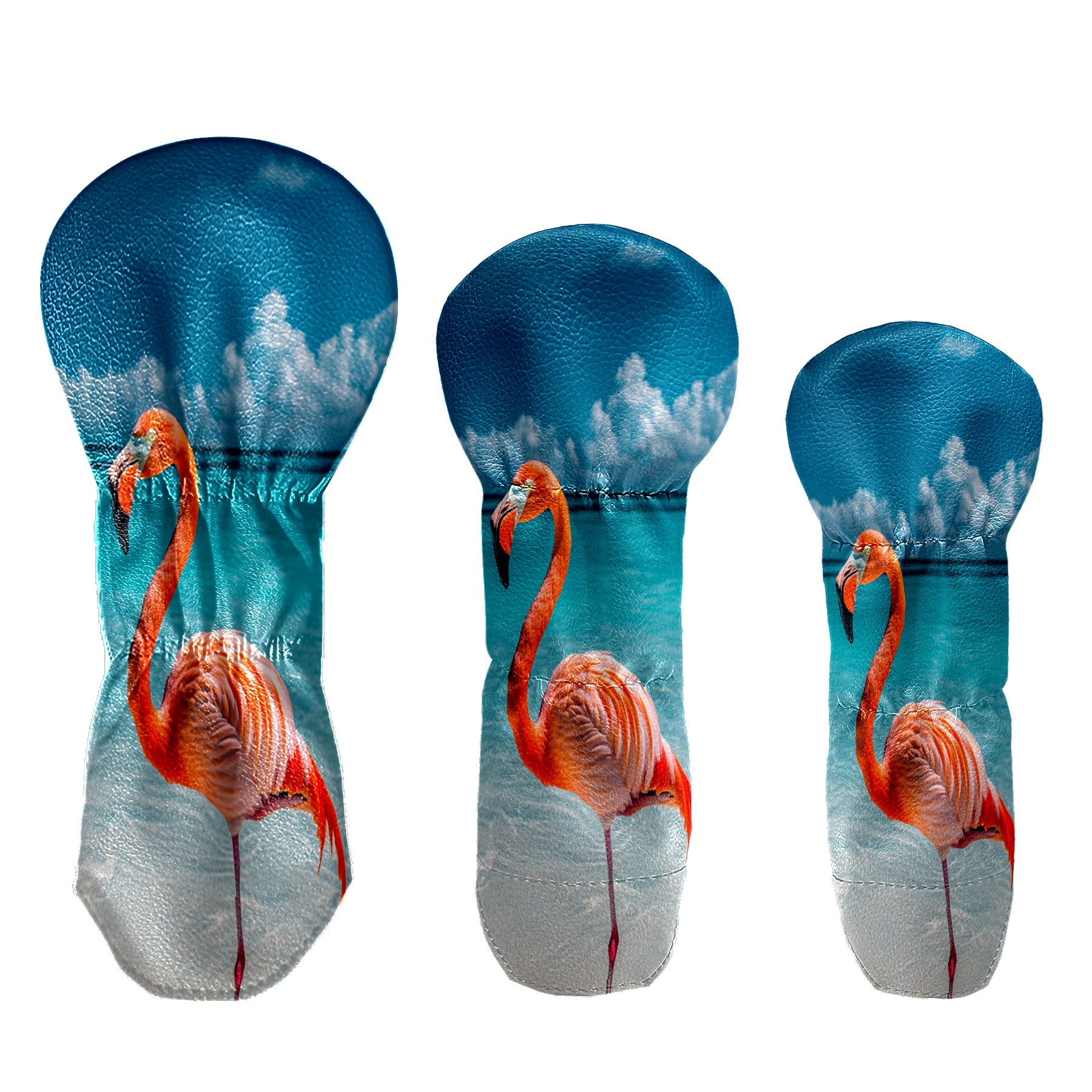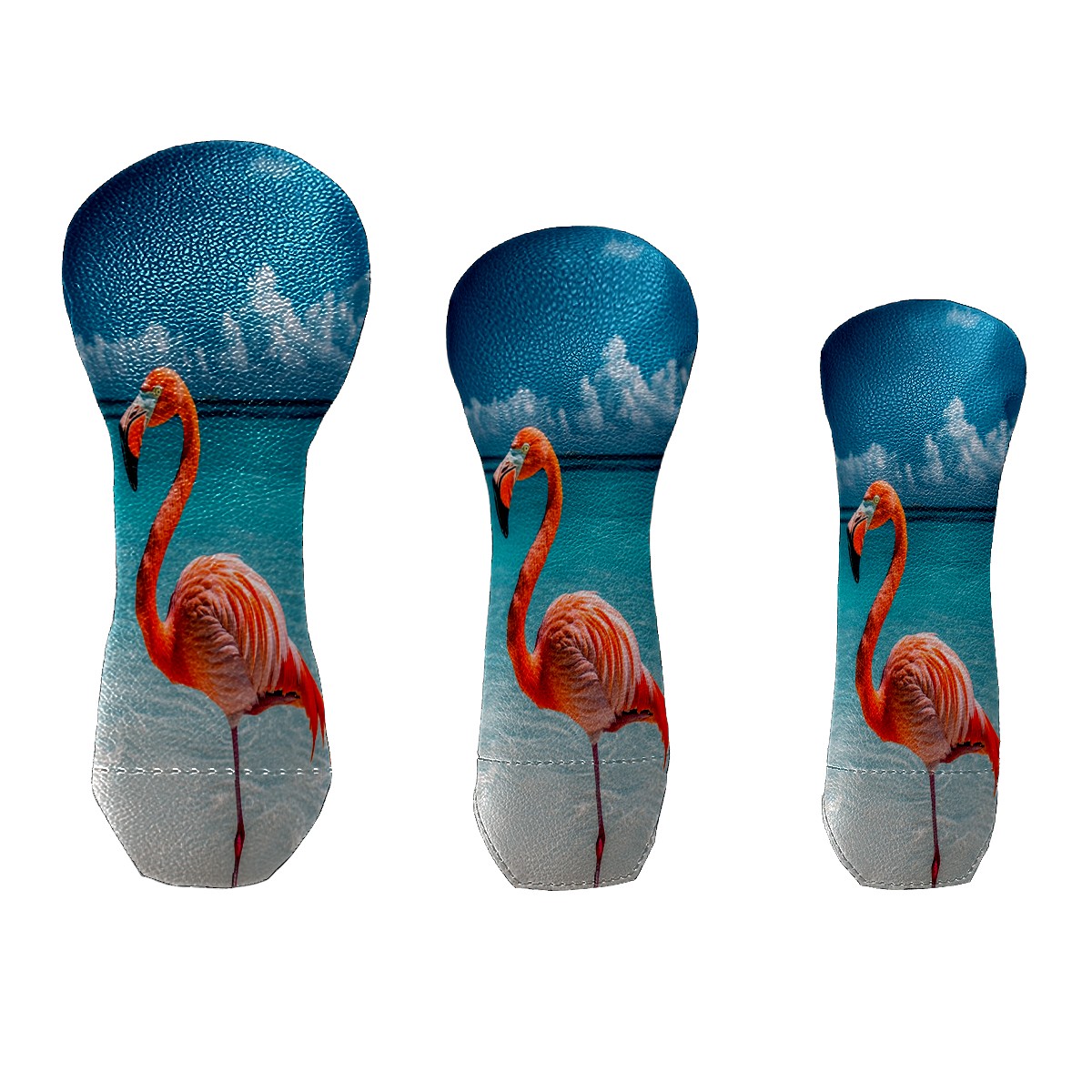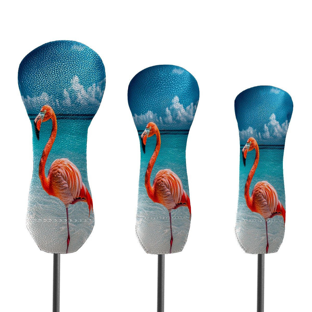 3 Pack PU Leather Golf Club Head Covers - Driver, Fairway Wood & Hybrid, Funny Golf Accessories, Ideal Golf Gift Flamingo Seaside Pattern