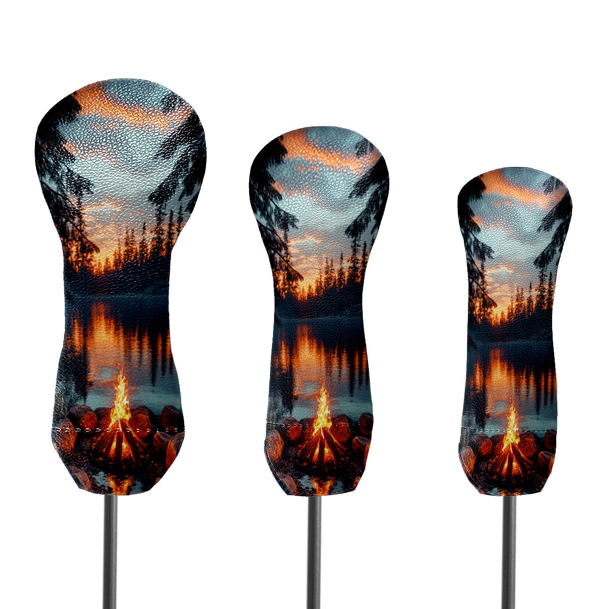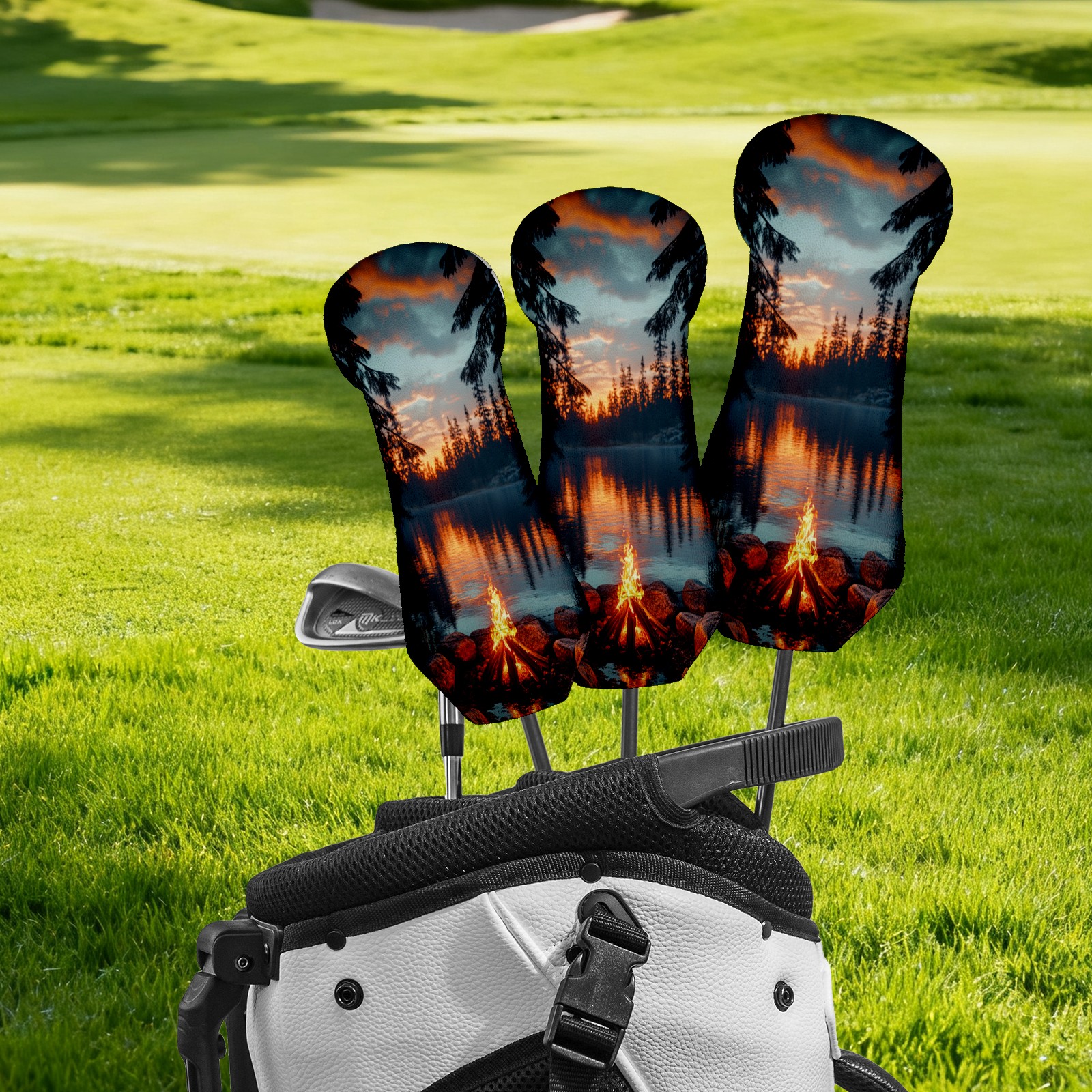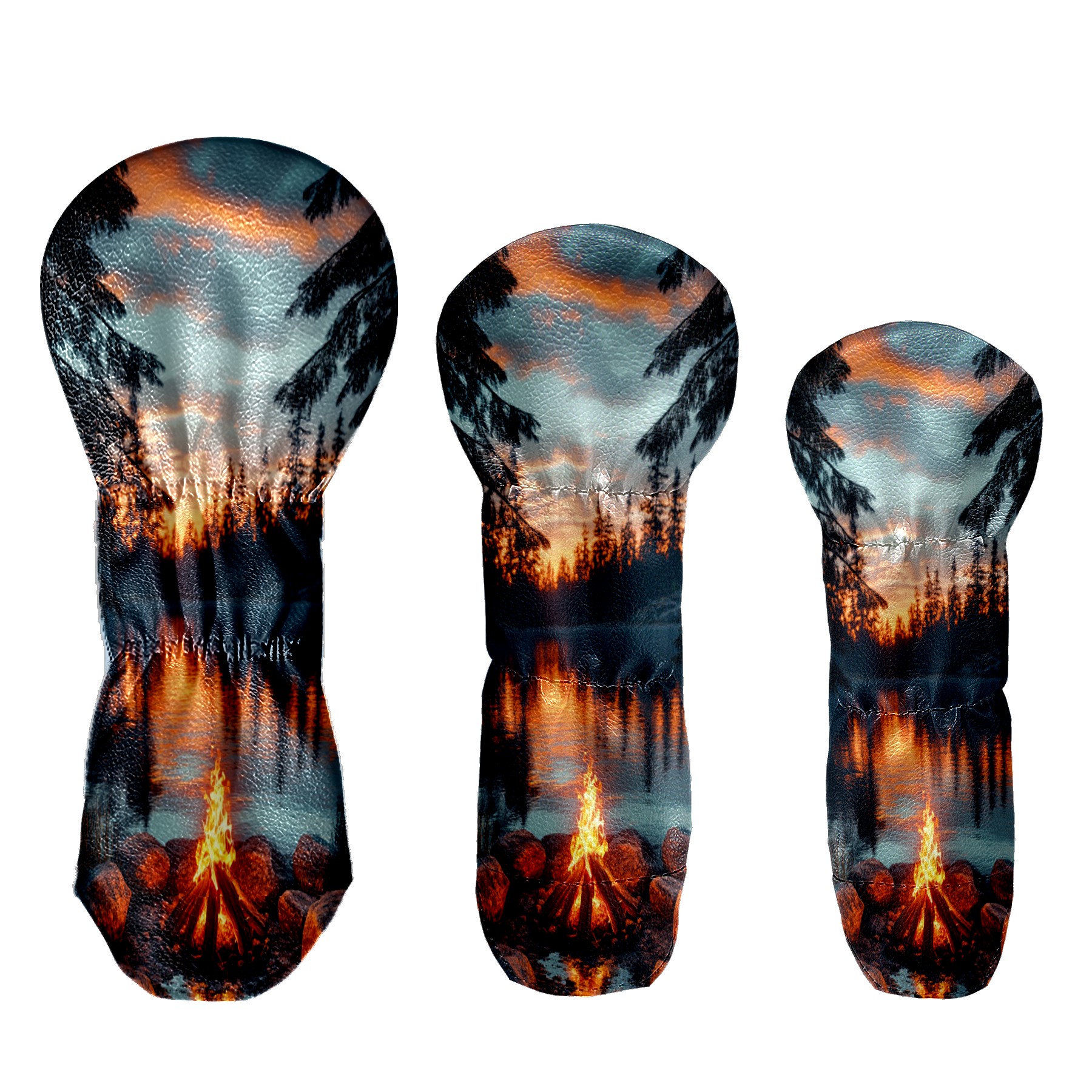 3 Pack PU Leather Golf Club Head Covers - Driver, Fairway Wood & Hybrid, Funny Golf Accessories, Ideal Golf Gift Lakeside Bonfire Picture
