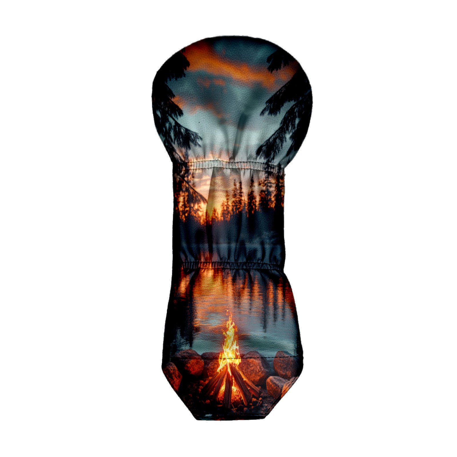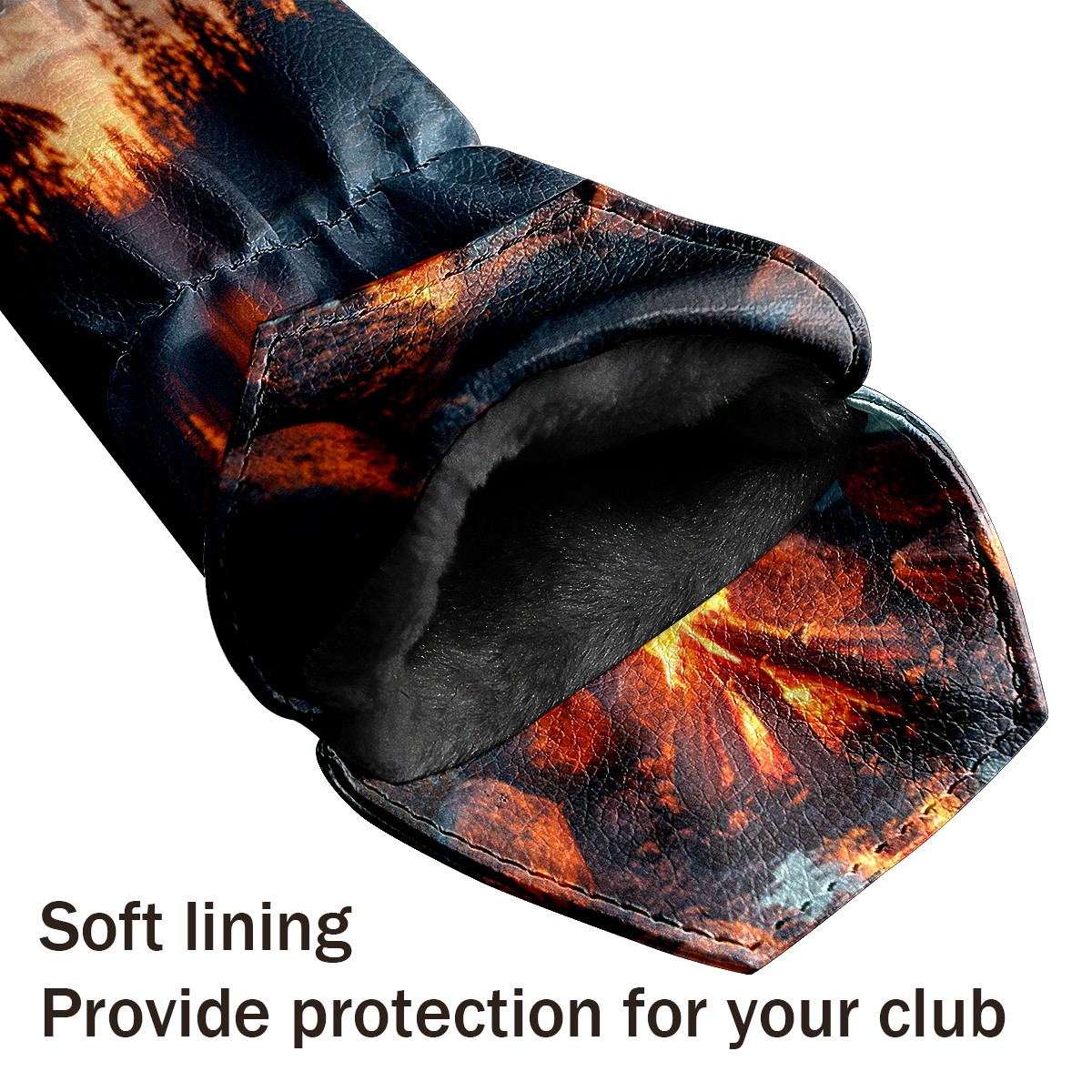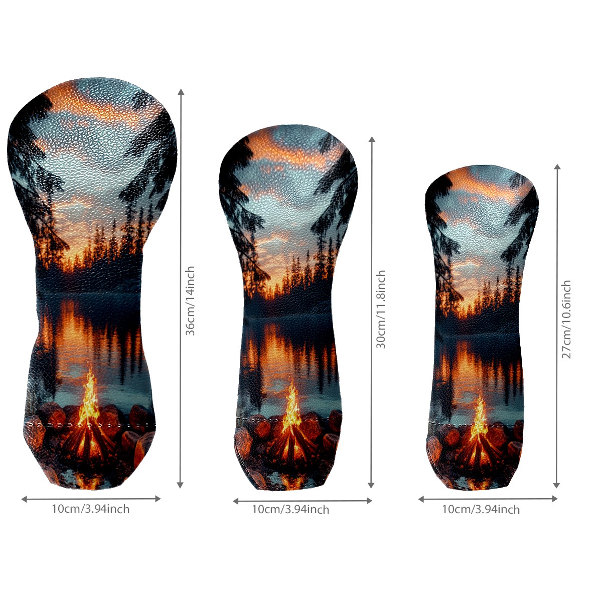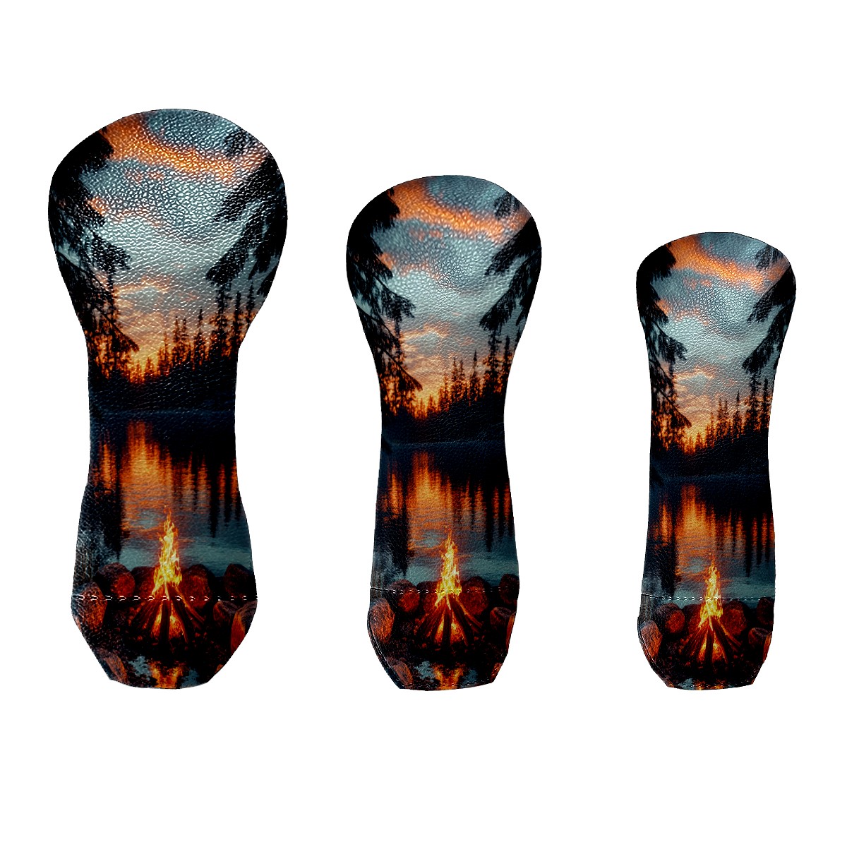 3 Pack PU Leather Golf Club Head Covers - Driver, Fairway Wood & Hybrid, Funny Golf Accessories, Ideal Golf Gift Lakeside Bonfire Picture