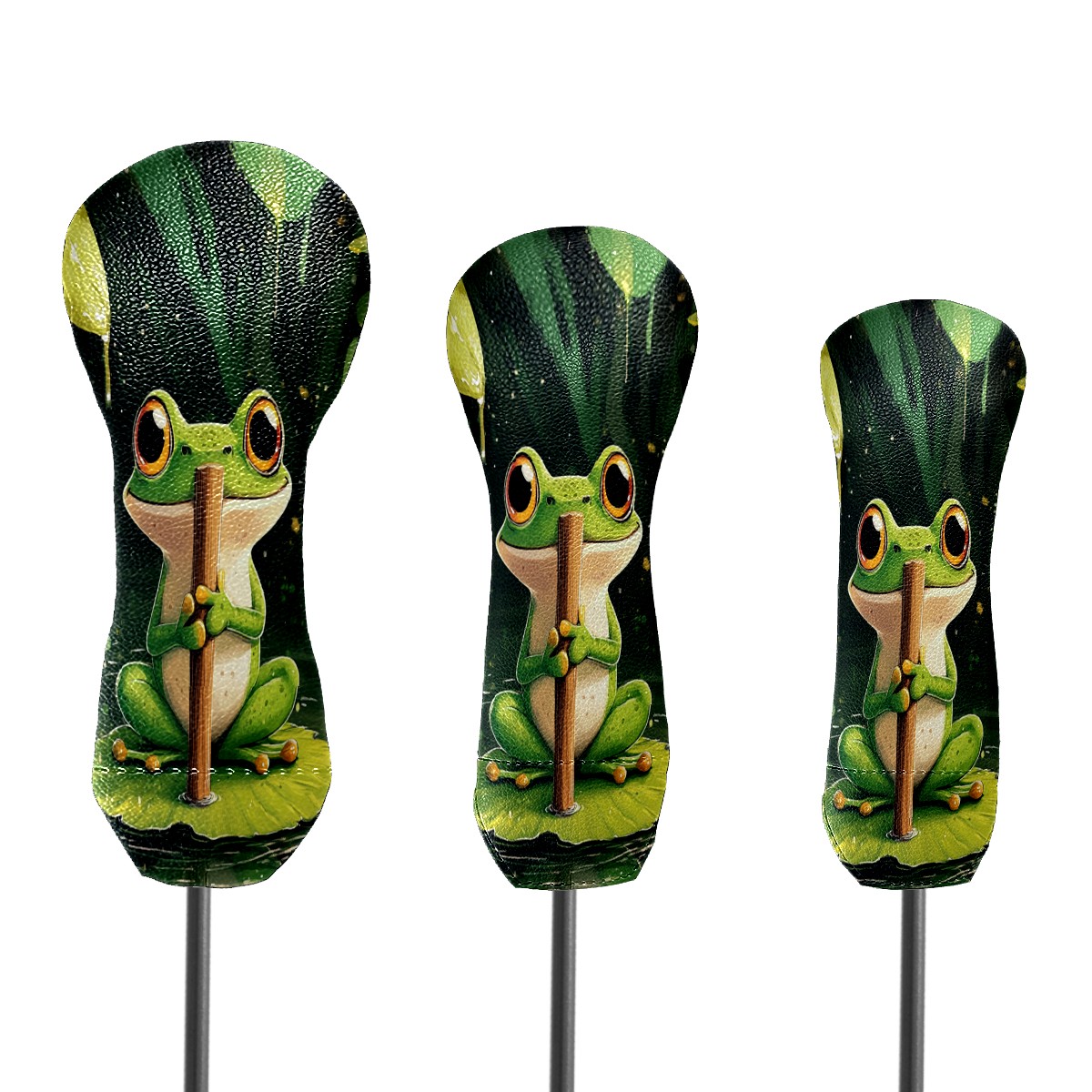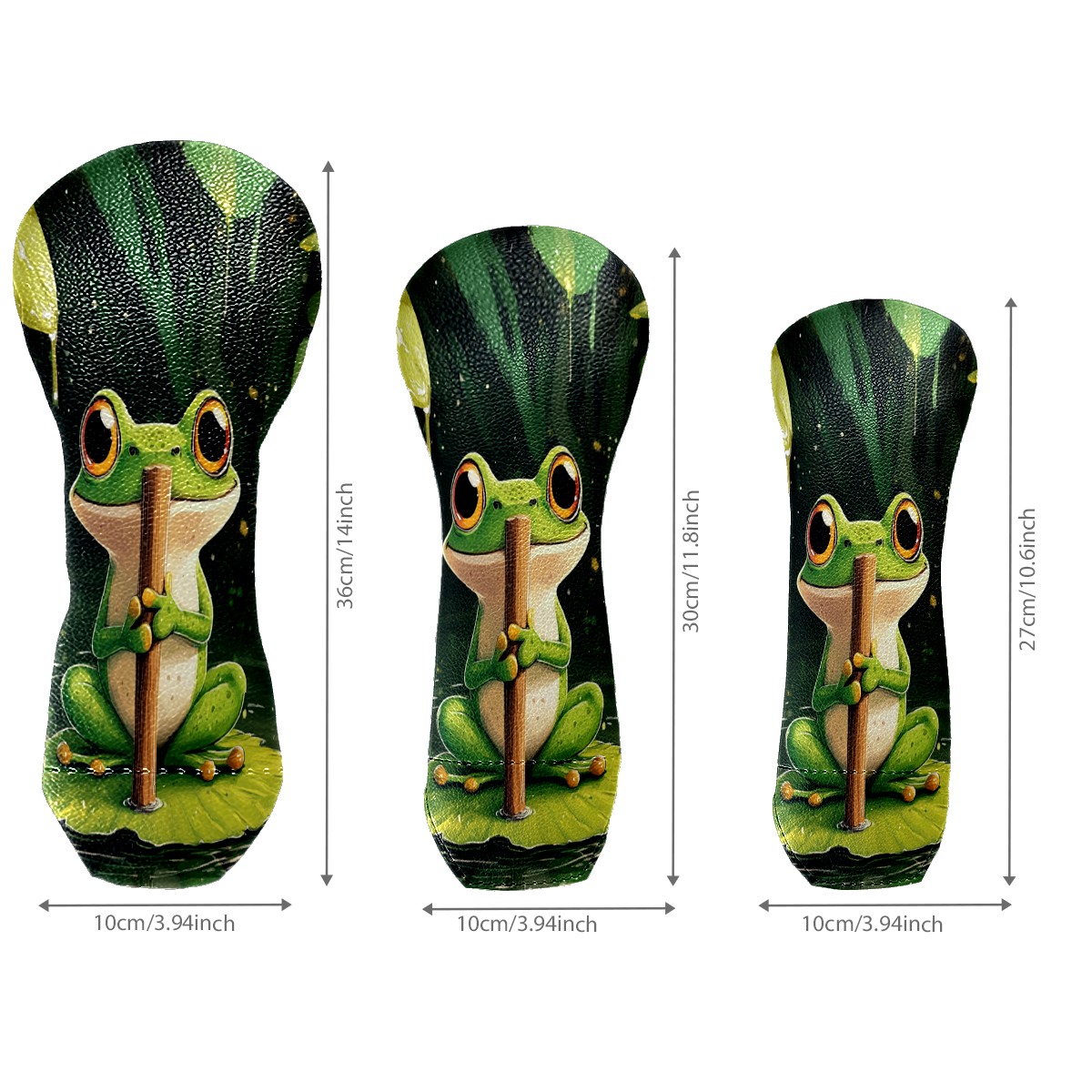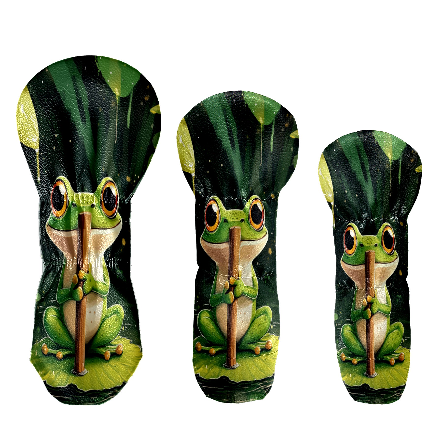 3 Pack PU Leather Golf Club Head Covers - Driver, Fairway Wood & Hybrid, Funny Golf Accessories, Ideal Golf Gift Pond Frog