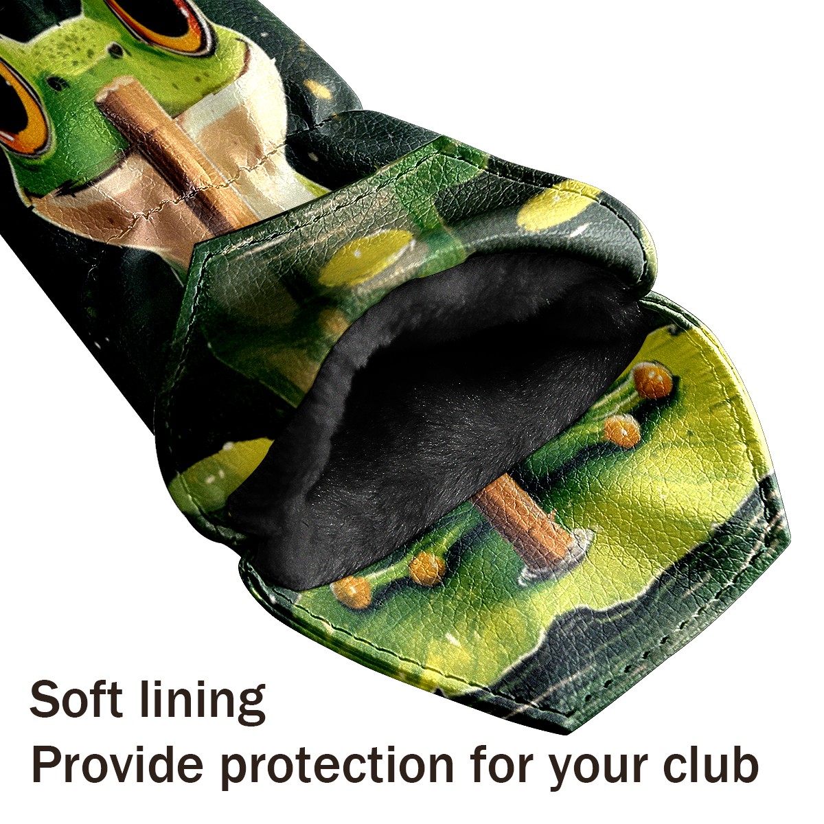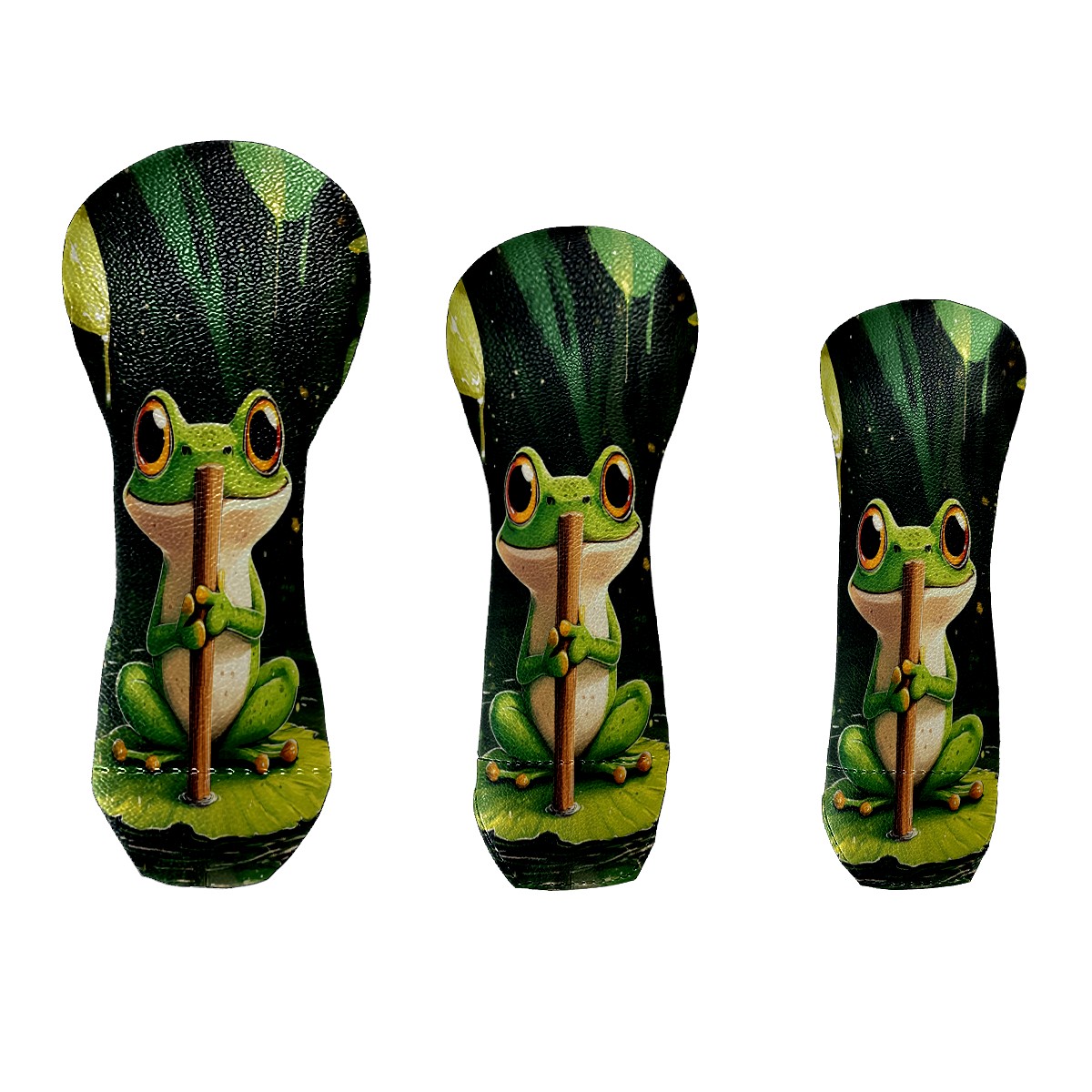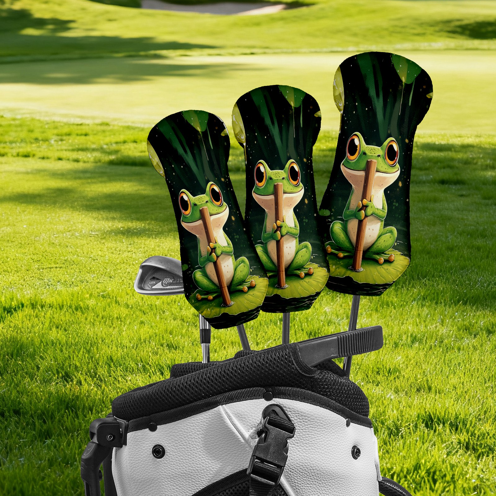 3 Pack PU Leather Golf Club Head Covers - Driver, Fairway Wood & Hybrid, Funny Golf Accessories, Ideal Golf Gift Pond Frog