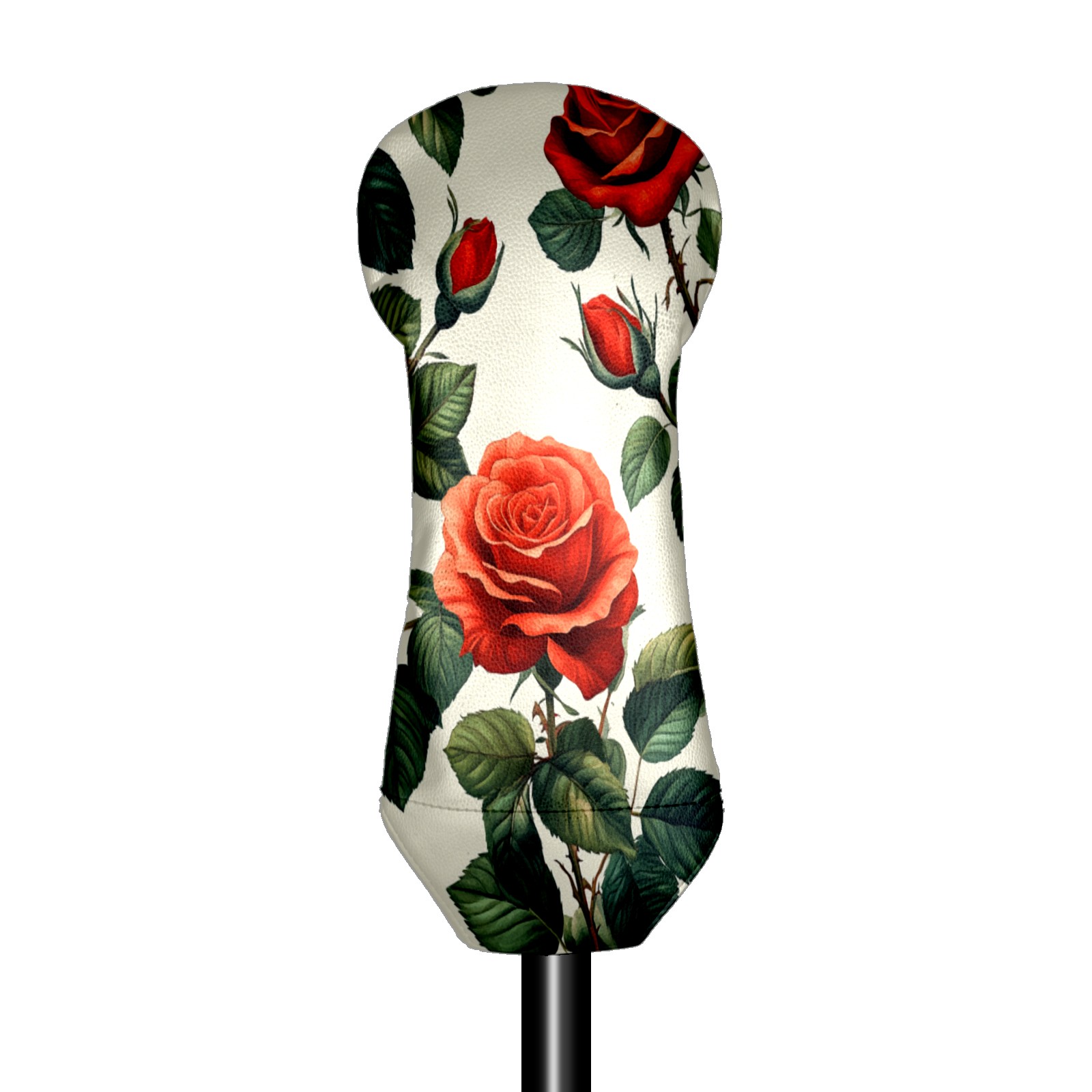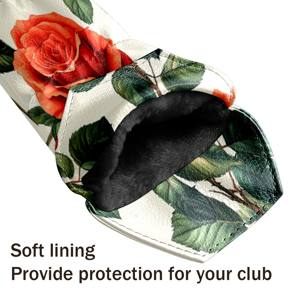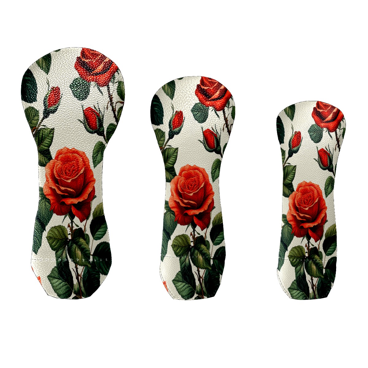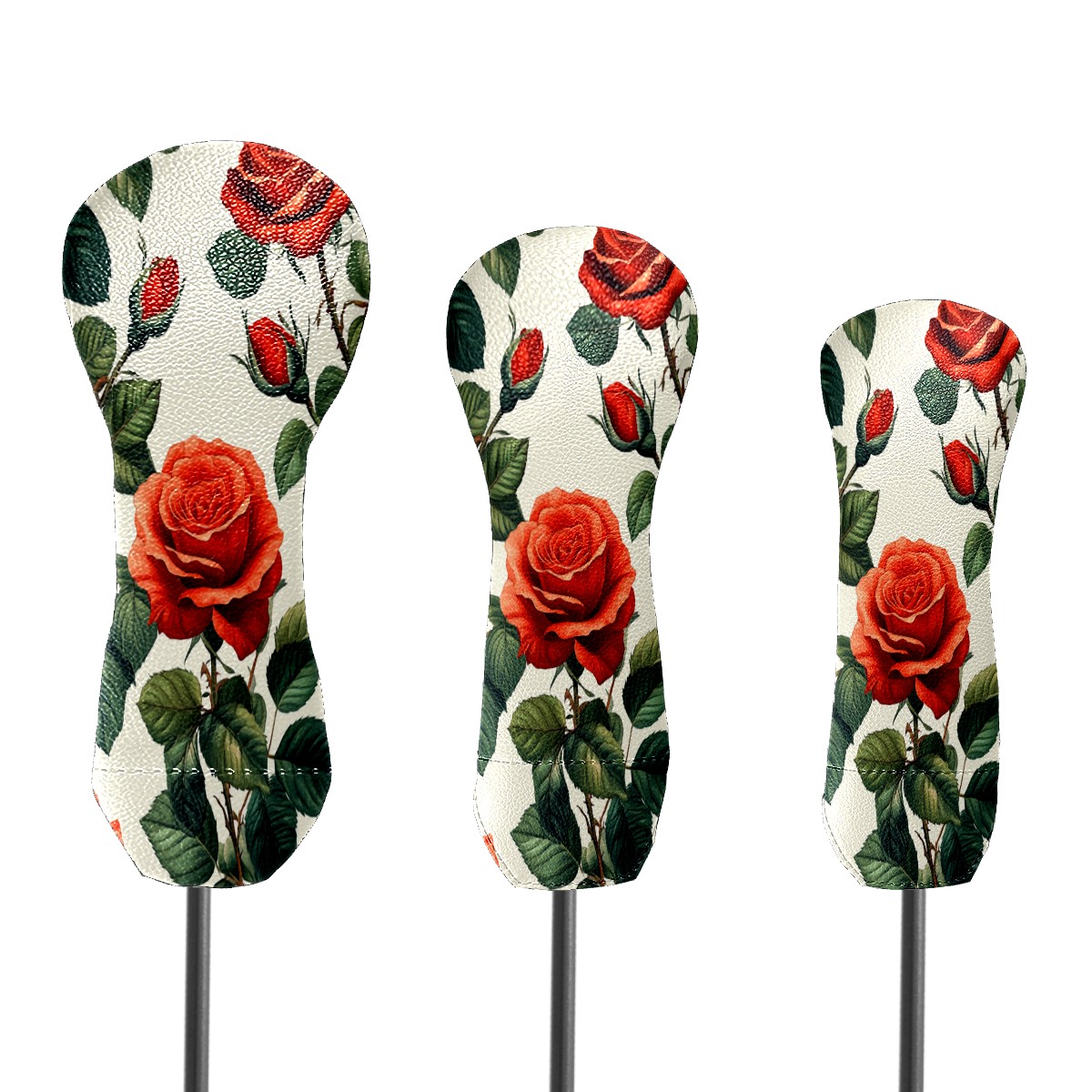 3 Pack PU Leather Golf Club Head Covers - Driver, Fairway Wood & Hybrid, Funny Golf Accessories, Ideal Golf Gift Red Rose Pattern