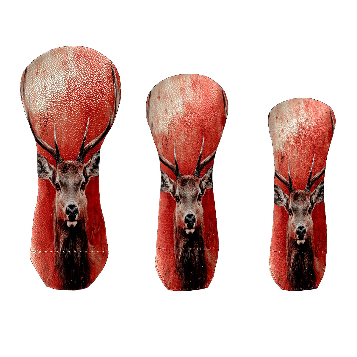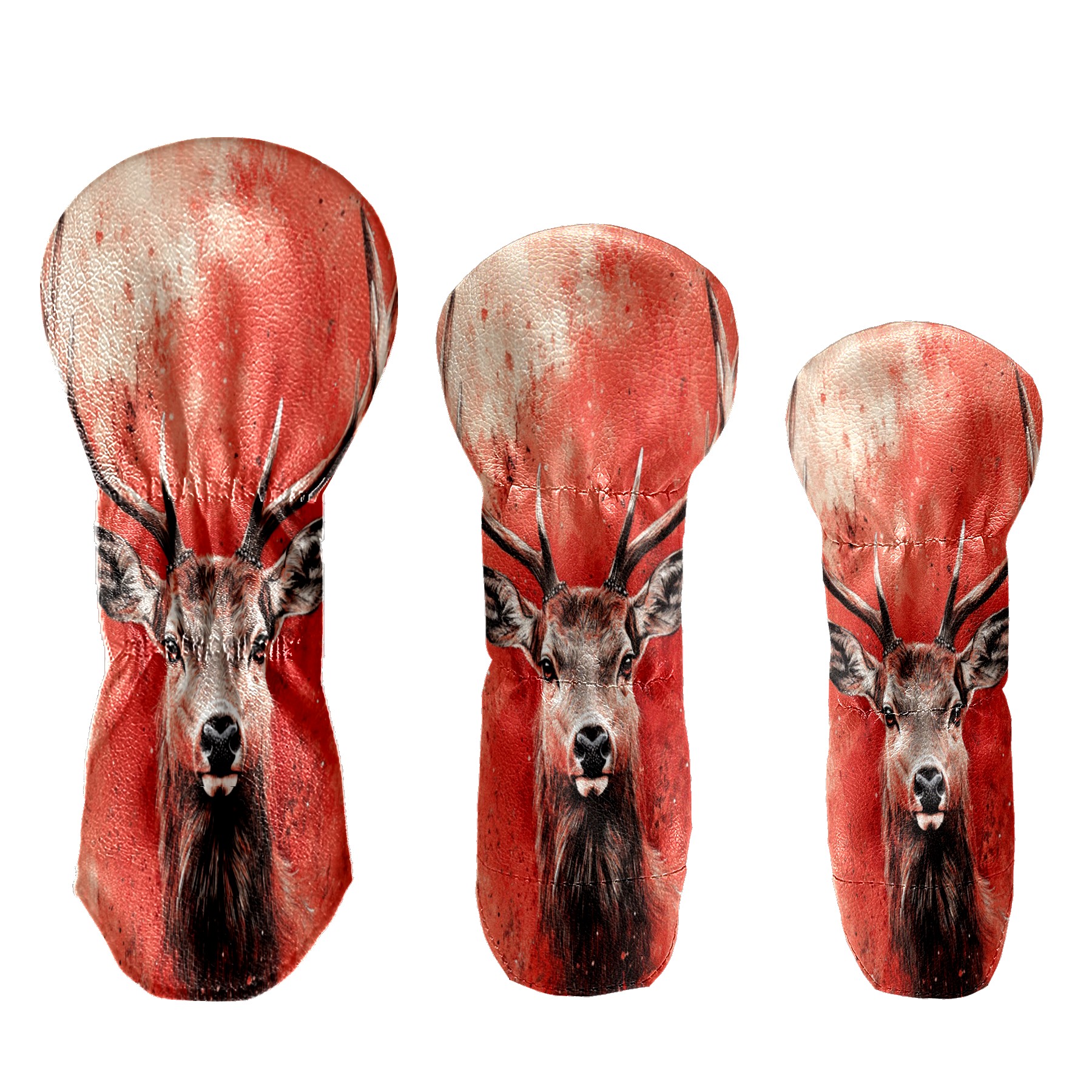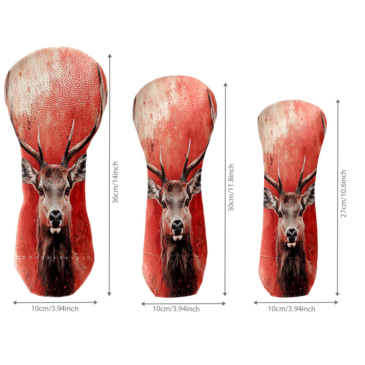 3 Pack PU Leather Golf Club Head Covers - Driver, Fairway Wood & Hybrid, Funny Golf Accessories, Ideal Golf Gift Red Antelope Pattern
