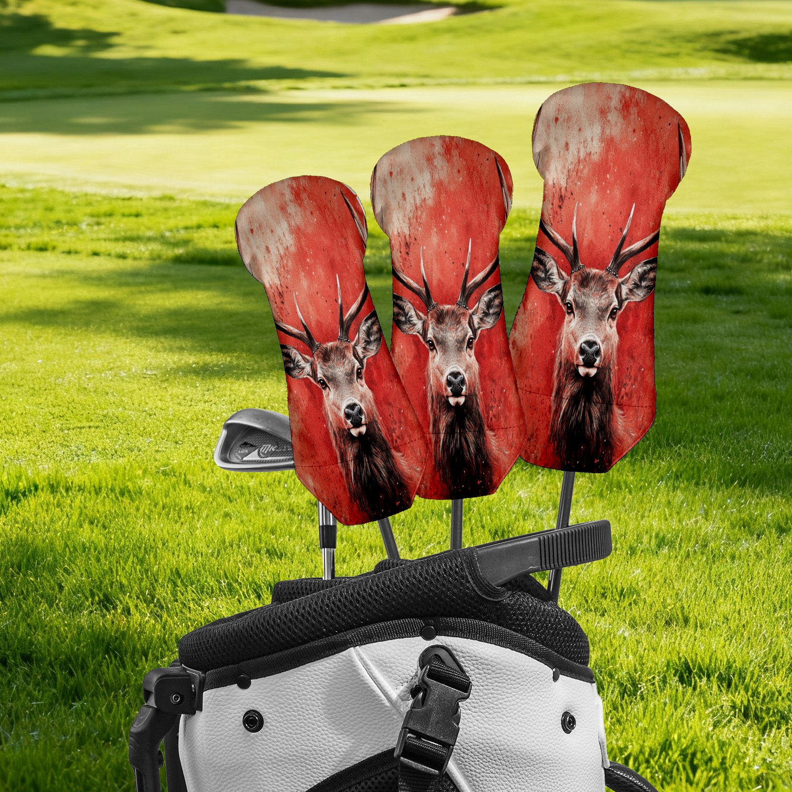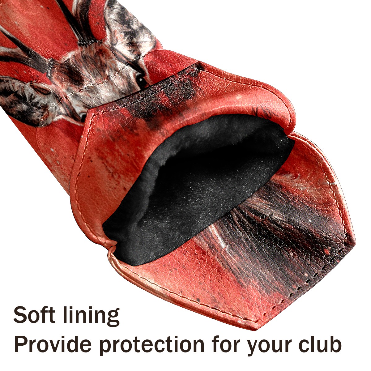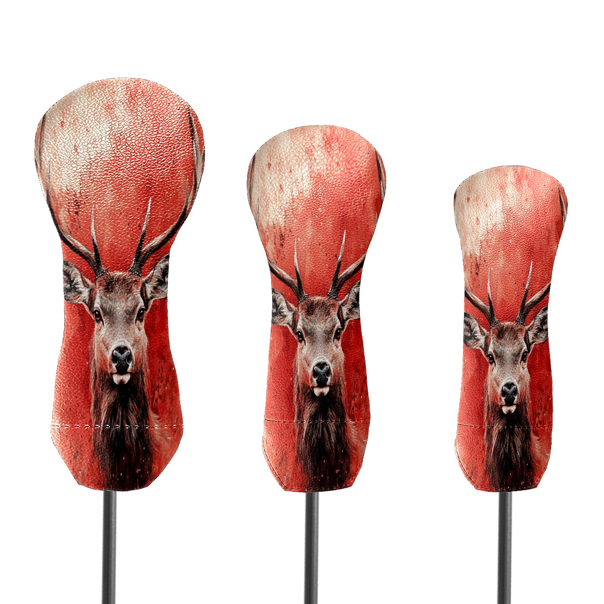 3 Pack PU Leather Golf Club Head Covers - Driver, Fairway Wood & Hybrid, Funny Golf Accessories, Ideal Golf Gift Red Antelope Pattern