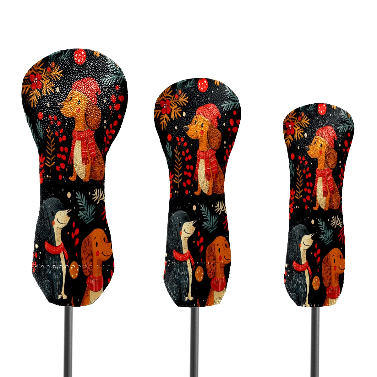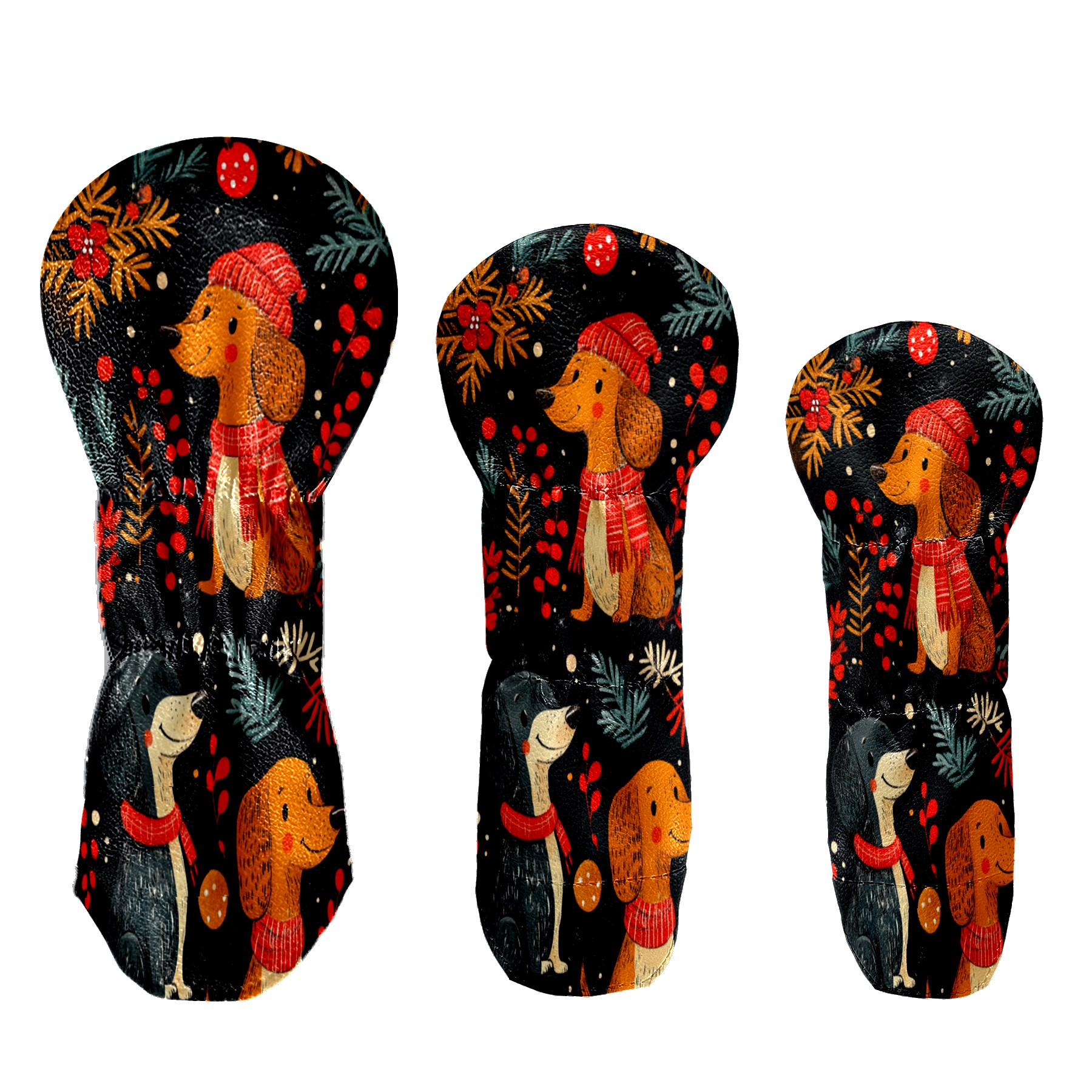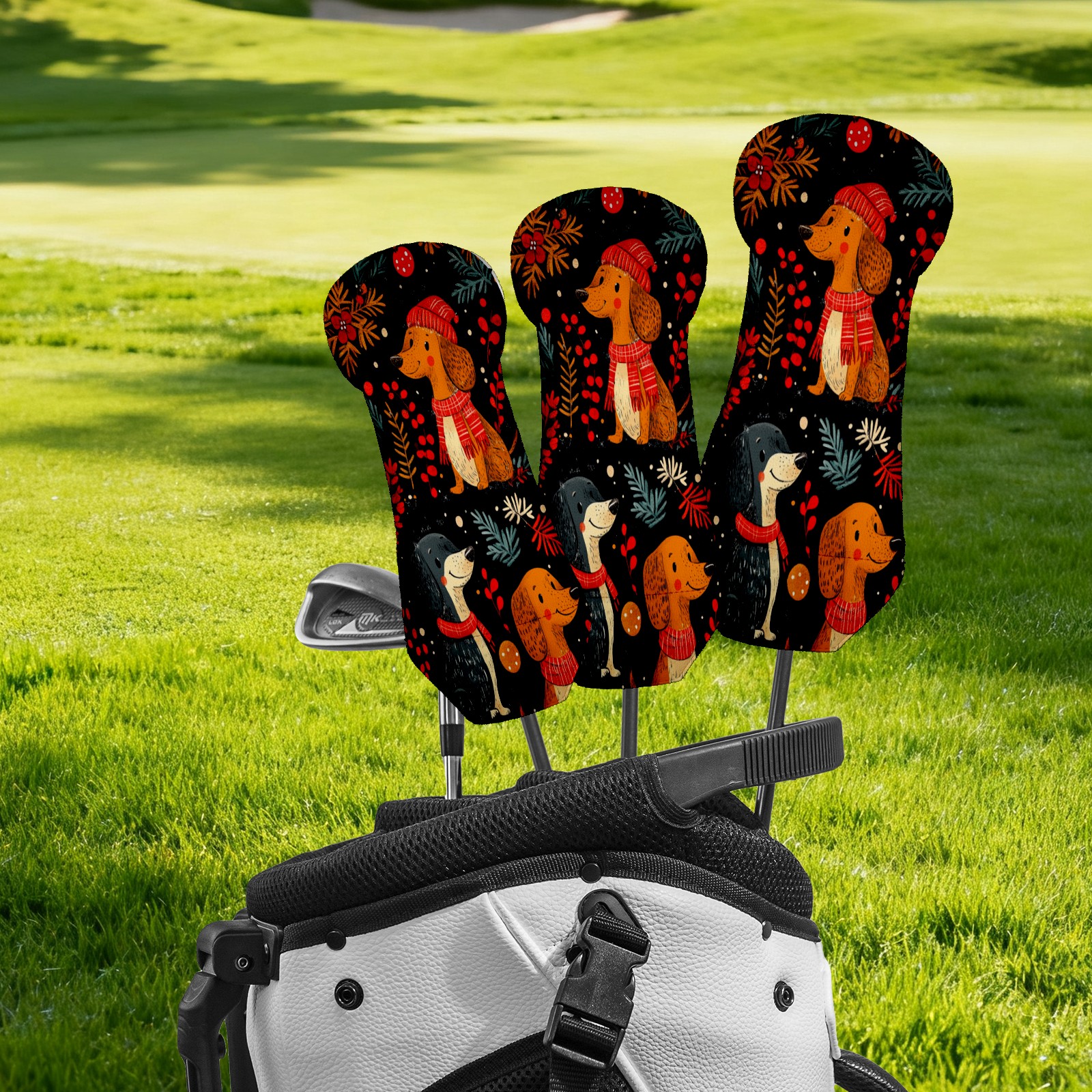 3 Pack PU Leather Golf Club Head Covers - Driver, Fairway Wood & Hybrid, Funny Golf Accessories, Ideal Golf Gift Dog Pattern Scarf