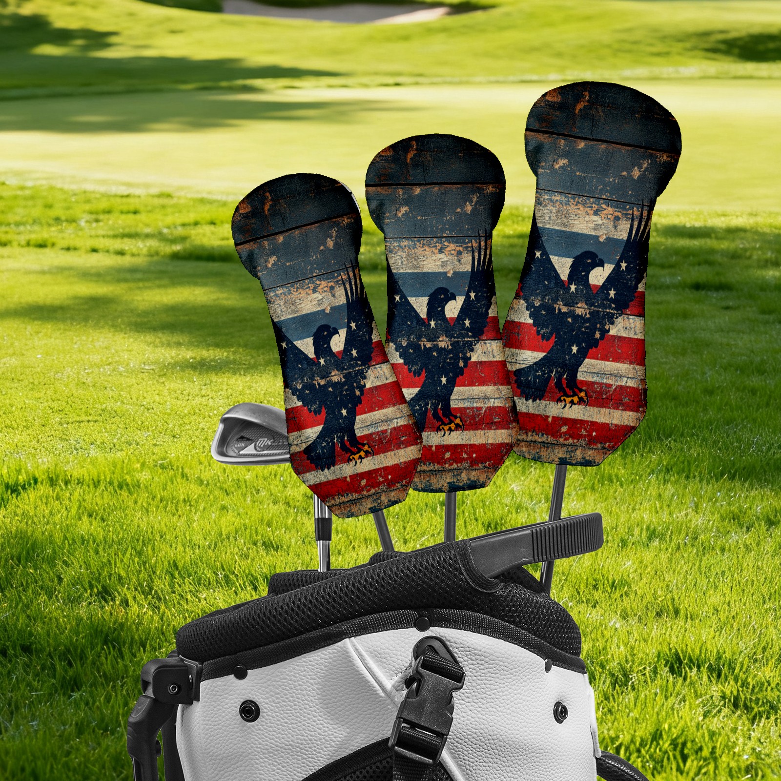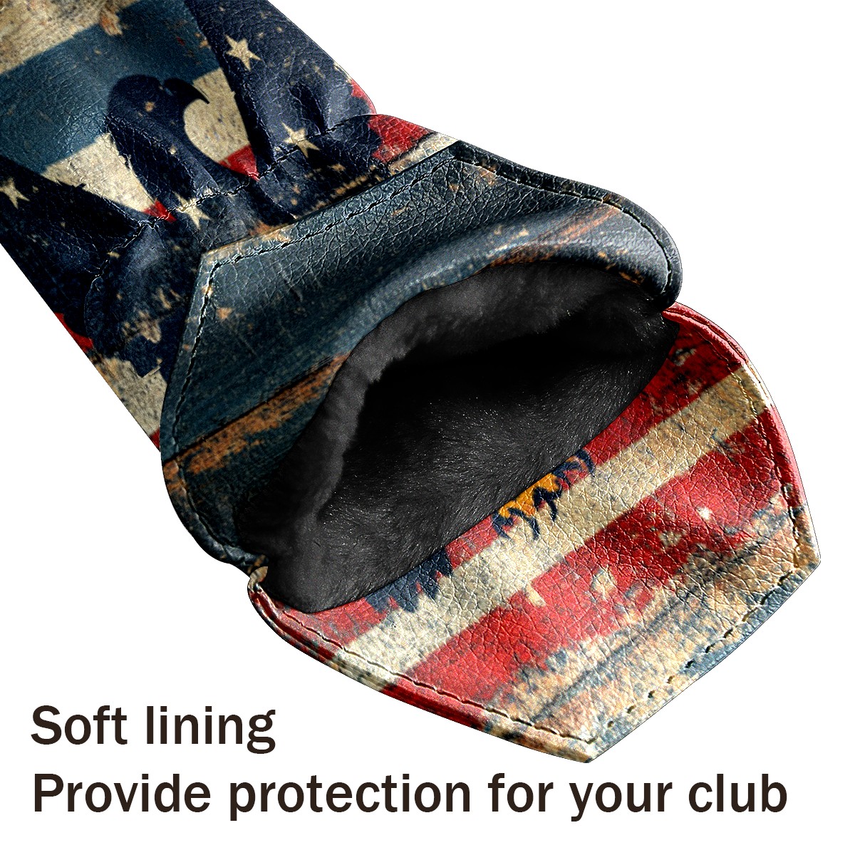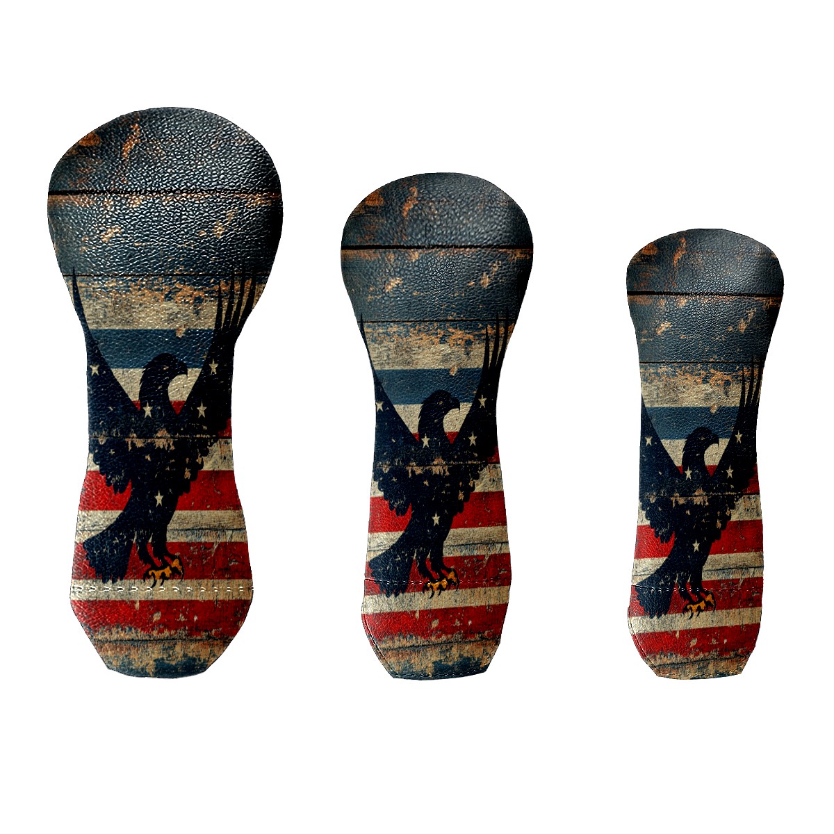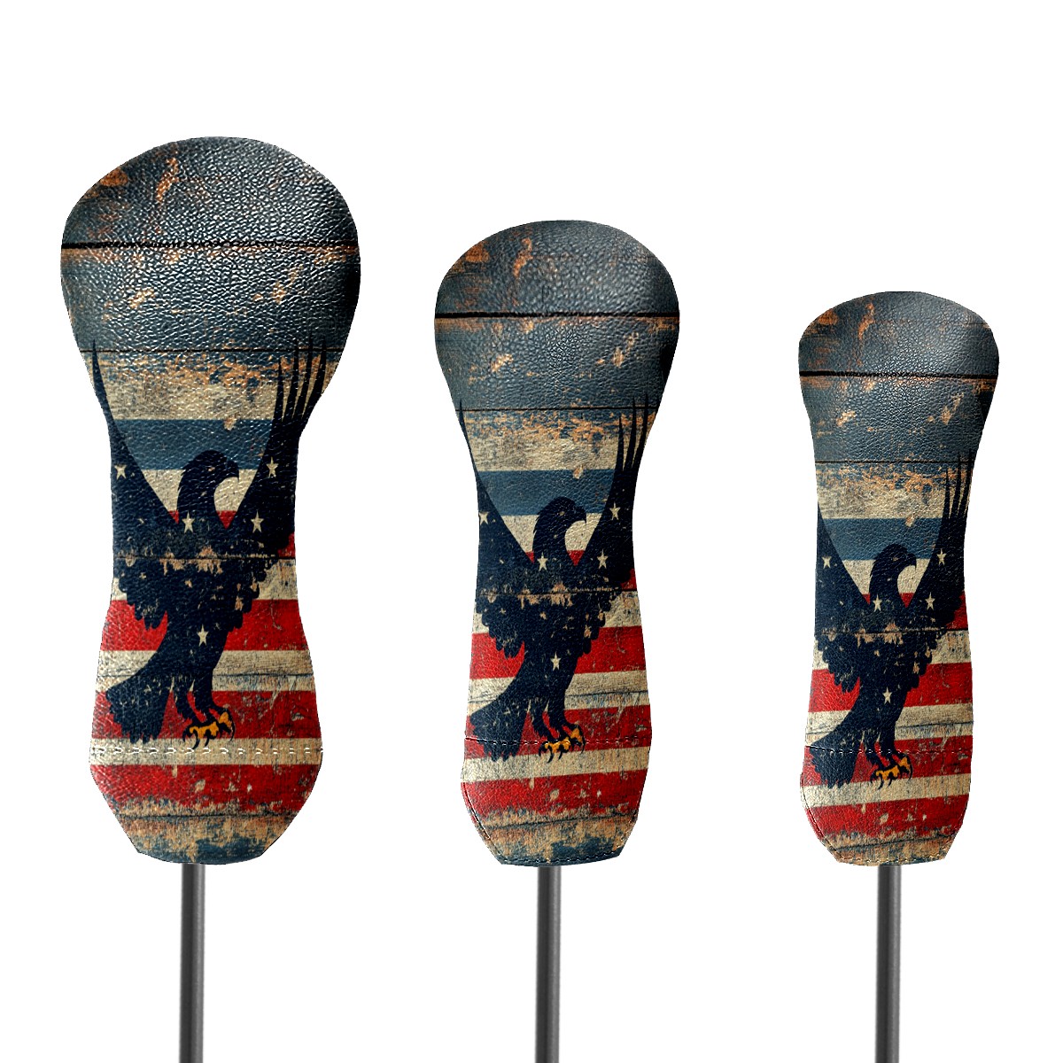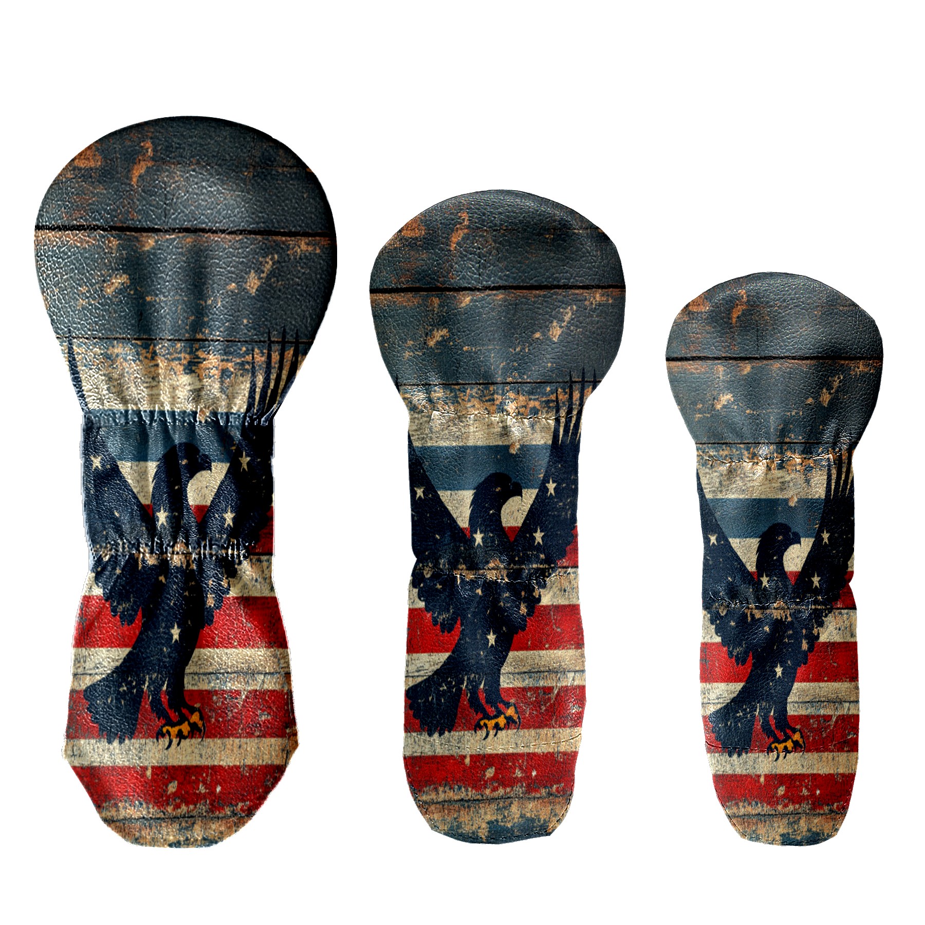 3 Pack PU Leather Golf Club Head Covers - Driver, Fairway Wood & Hybrid, Funny Golf Accessories, Ideal Golf Gift Wooden Eagle Pattern