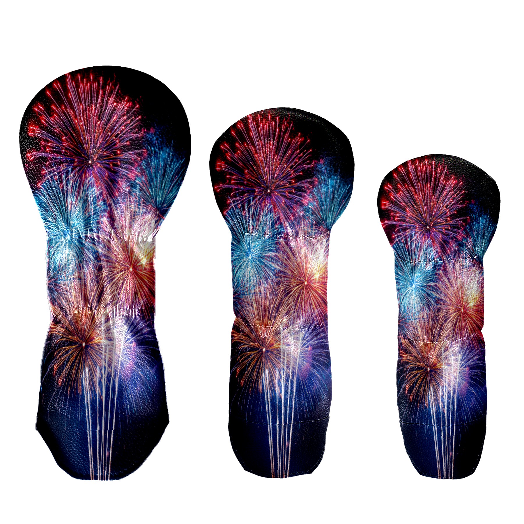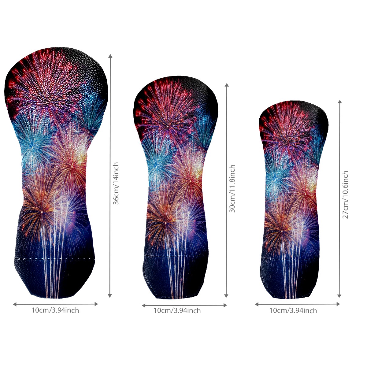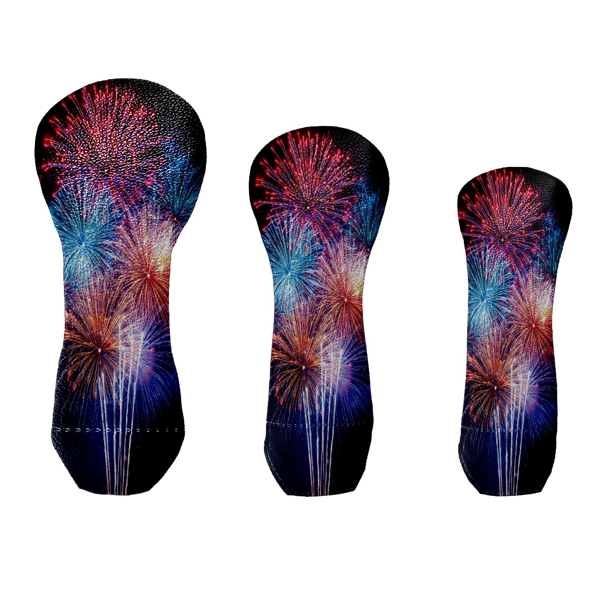 3 Pack PU Leather Golf Club Head Covers - Driver, Fairway Wood & Hybrid, Funny Golf Accessories, Ideal Golf Gift Dazzling Firework Pattern
