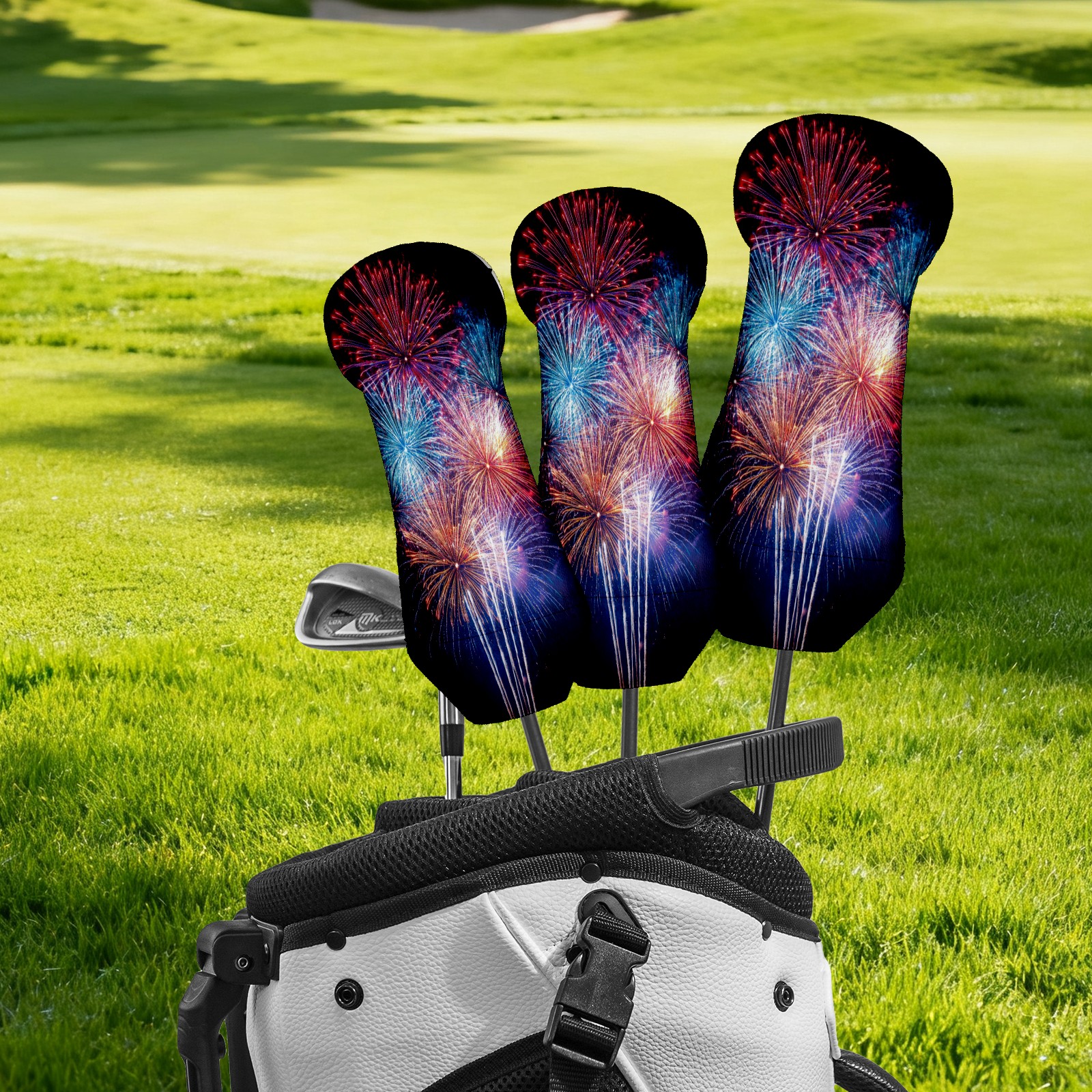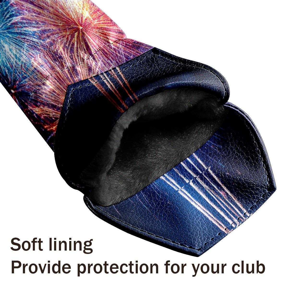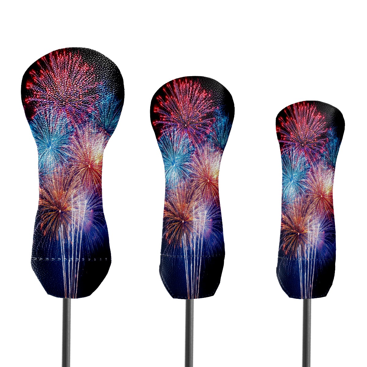 3 Pack PU Leather Golf Club Head Covers - Driver, Fairway Wood & Hybrid, Funny Golf Accessories, Ideal Golf Gift Dazzling Firework Pattern