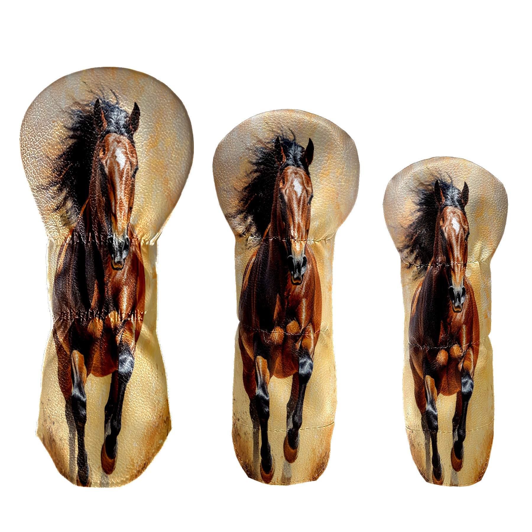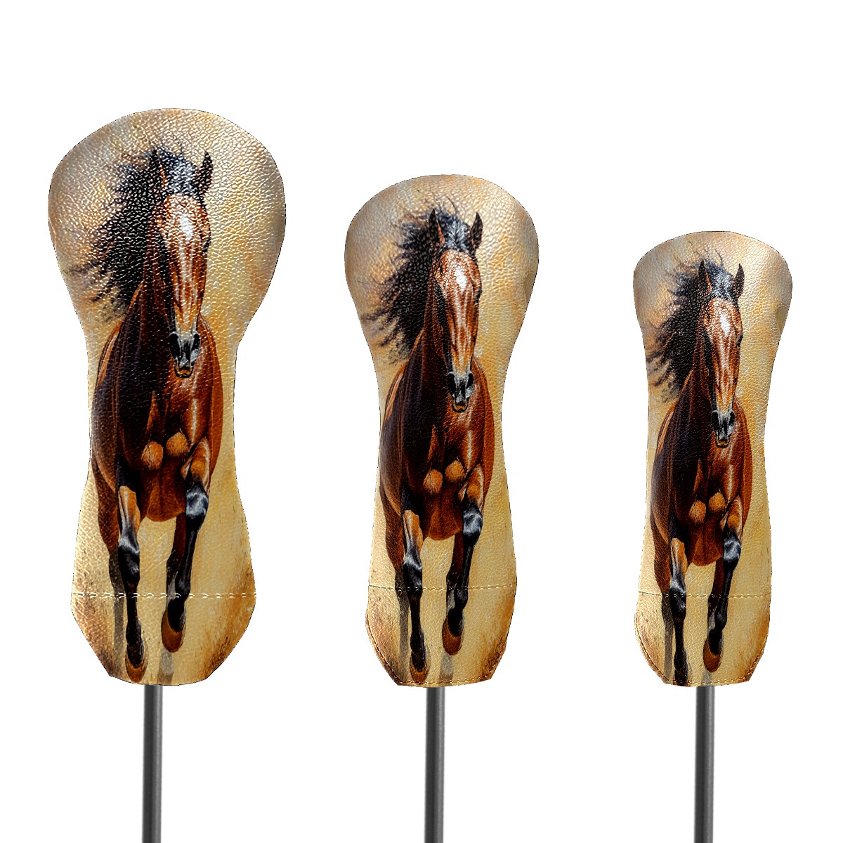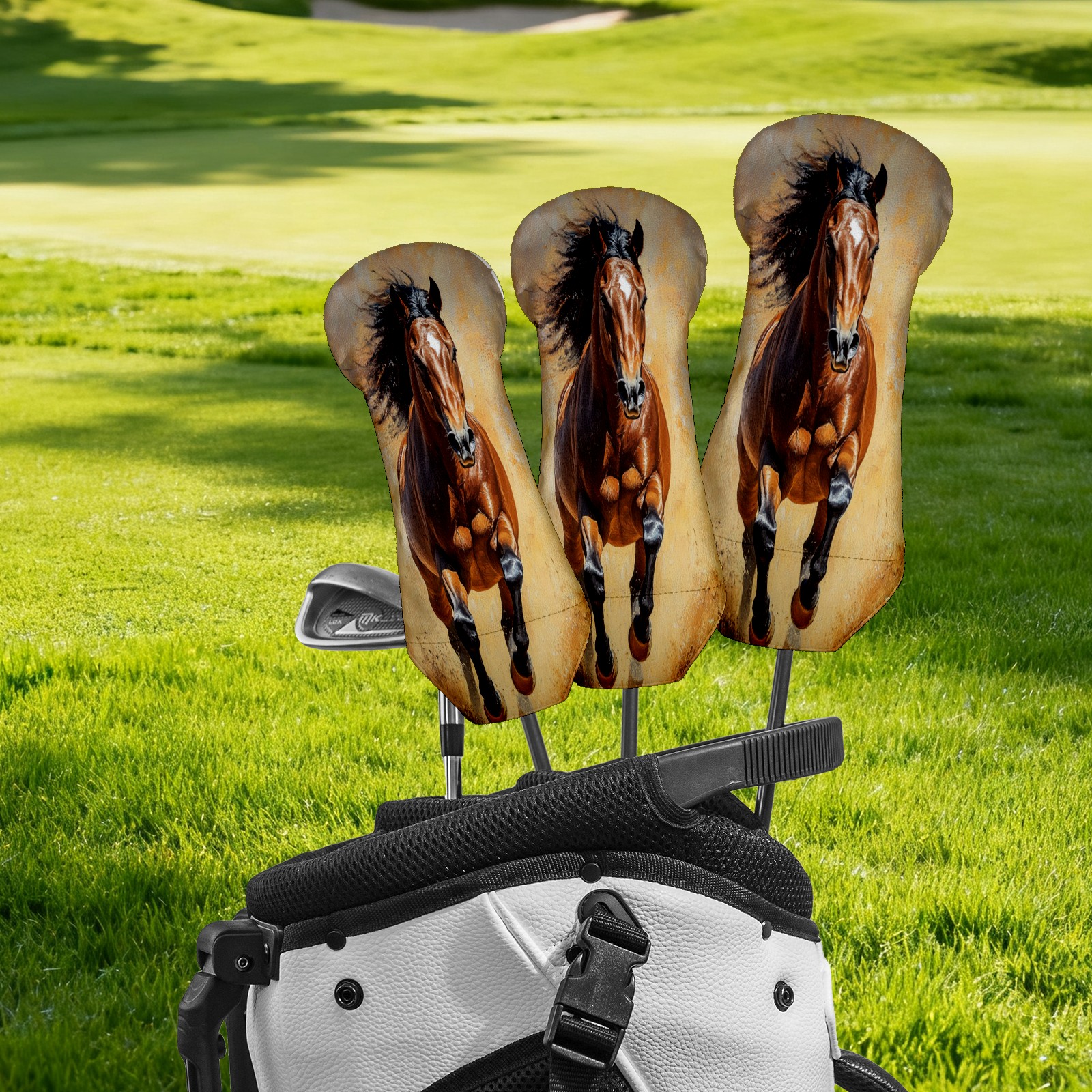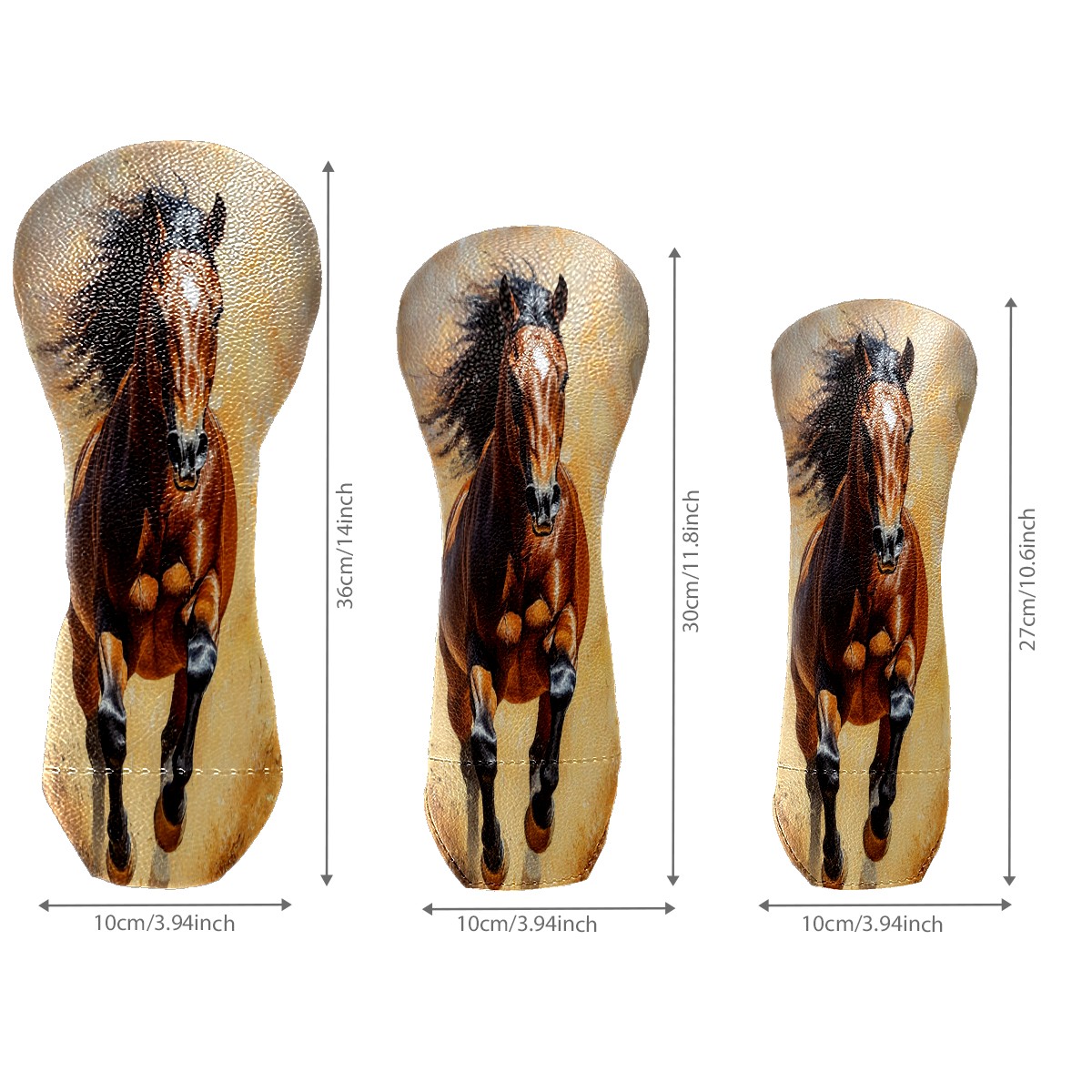 3 Pack PU Leather Golf Club Head Covers - Driver, Fairway Wood & Hybrid, Funny Golf Accessories, Ideal Golf Gift Galloping Horse Pattern