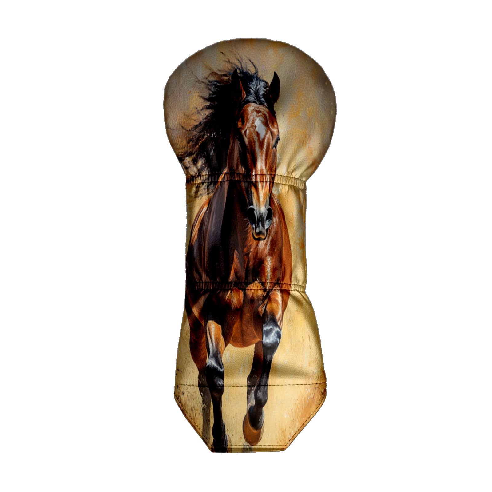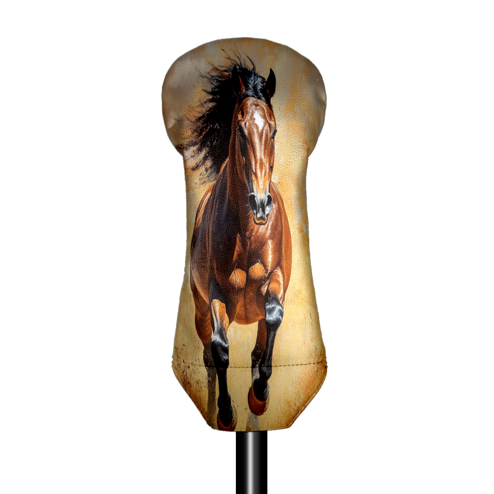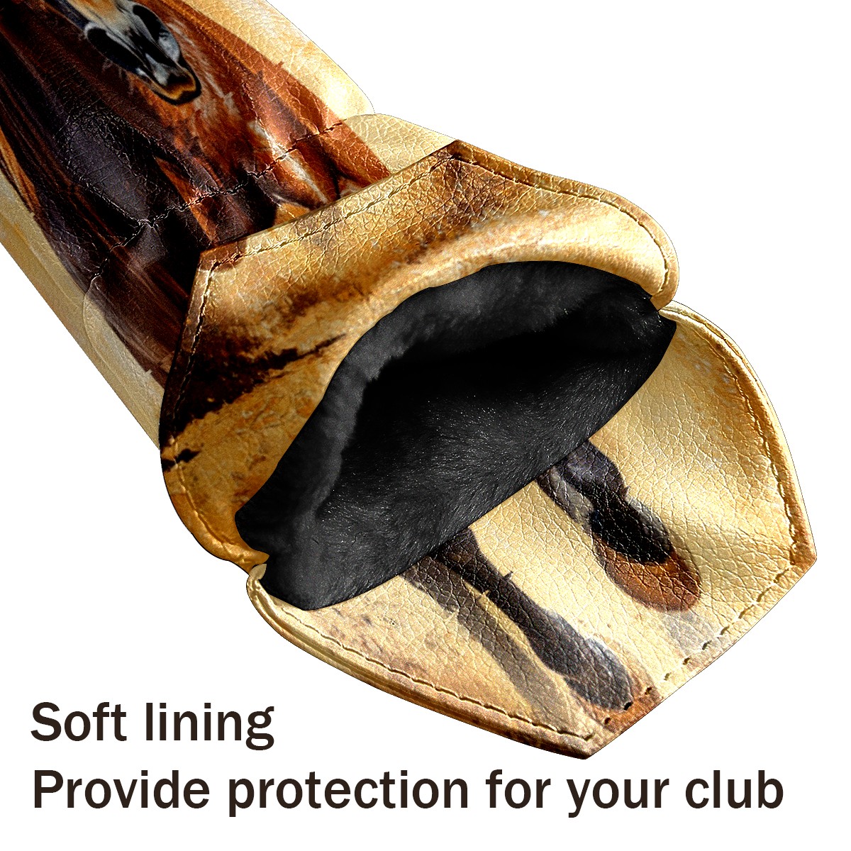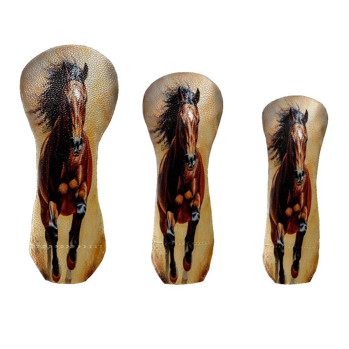 3 Pack PU Leather Golf Club Head Covers - Driver, Fairway Wood & Hybrid, Funny Golf Accessories, Ideal Golf Gift Galloping Horse Pattern