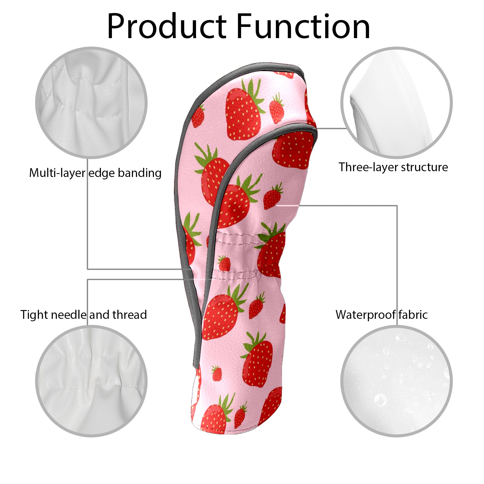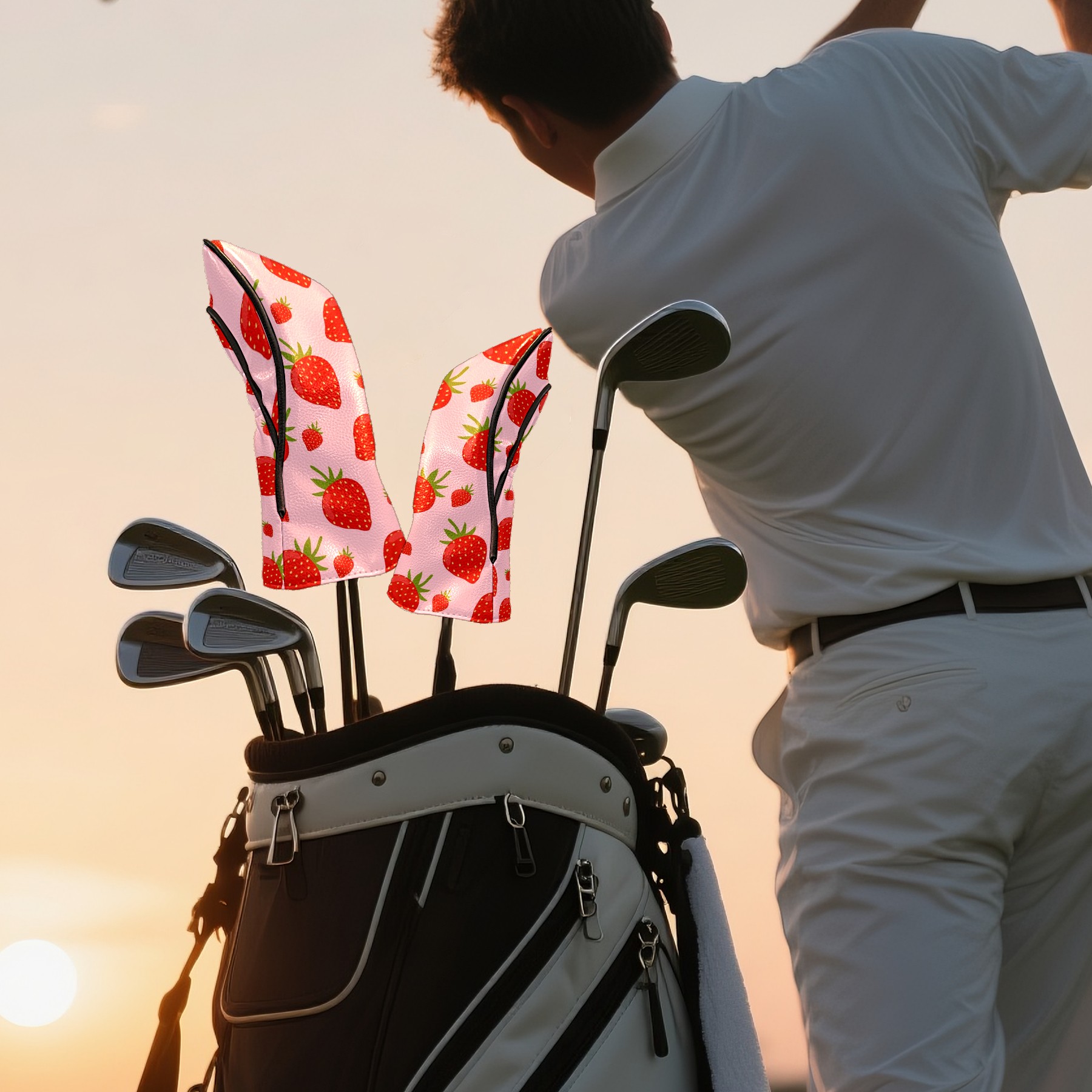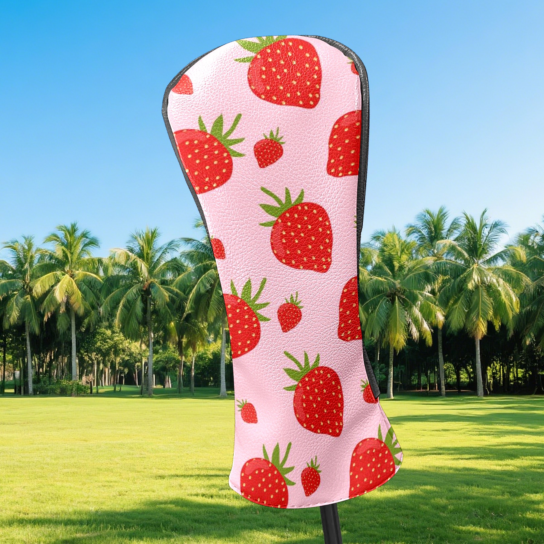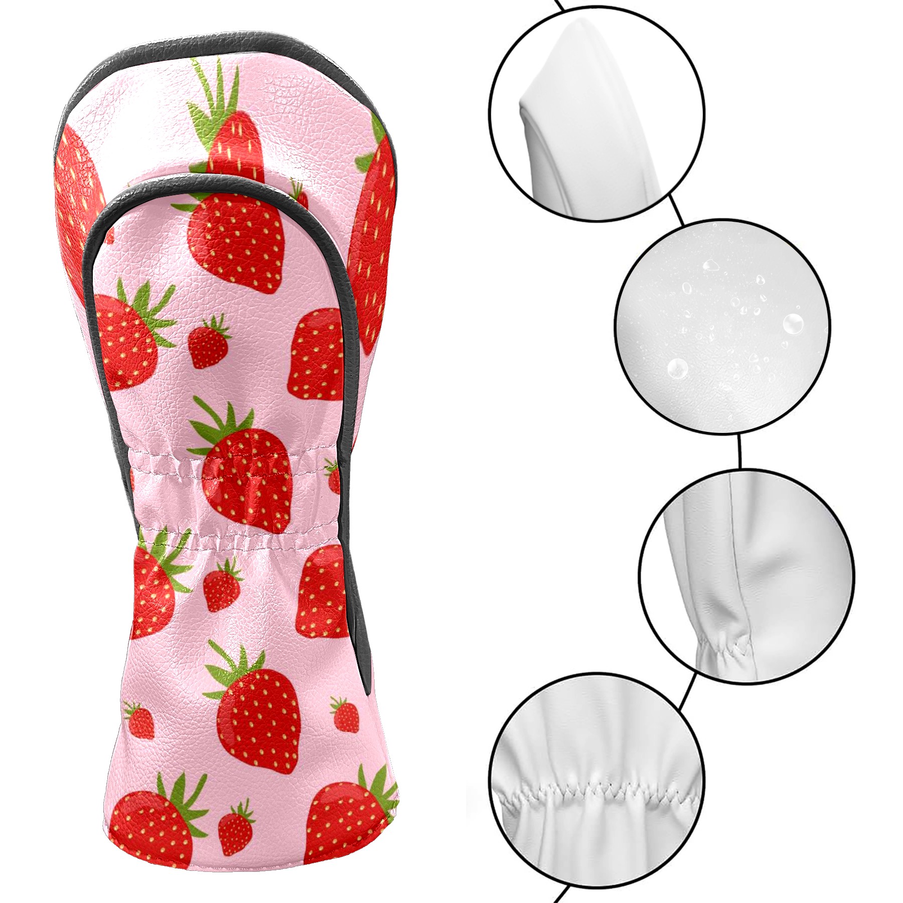 Golf Club Head Cover Waterproof Leather for Driver & Fairway Wood, Driver Headcovers, Golf Accessories for Men Women, Anti-Scratch, Golf Gift for Golfers, 1/3/5 Wood Cover Rose Red Strawberry