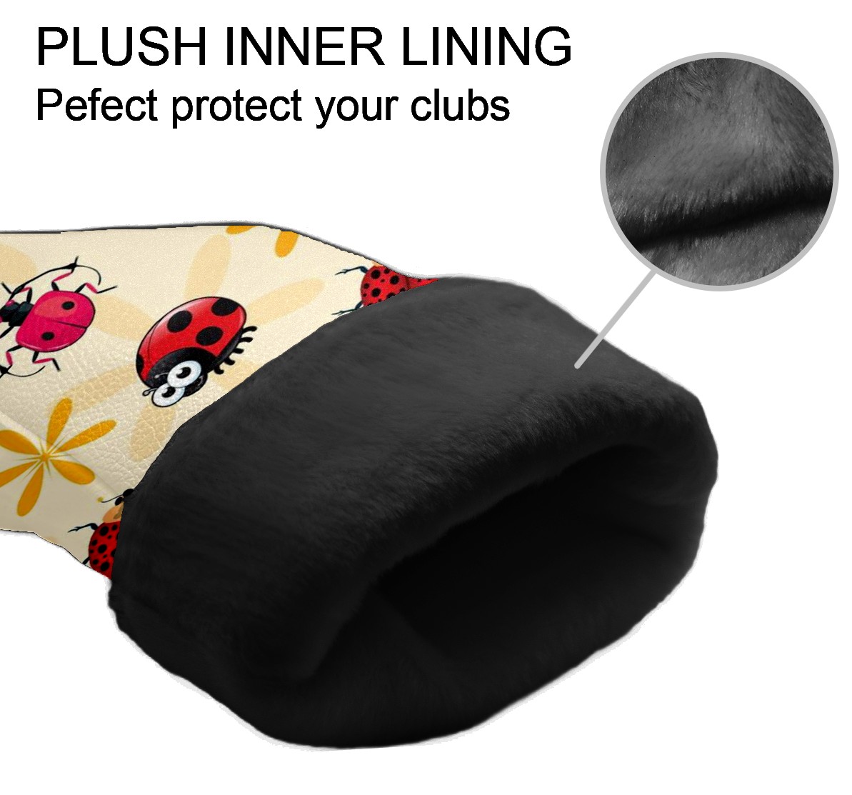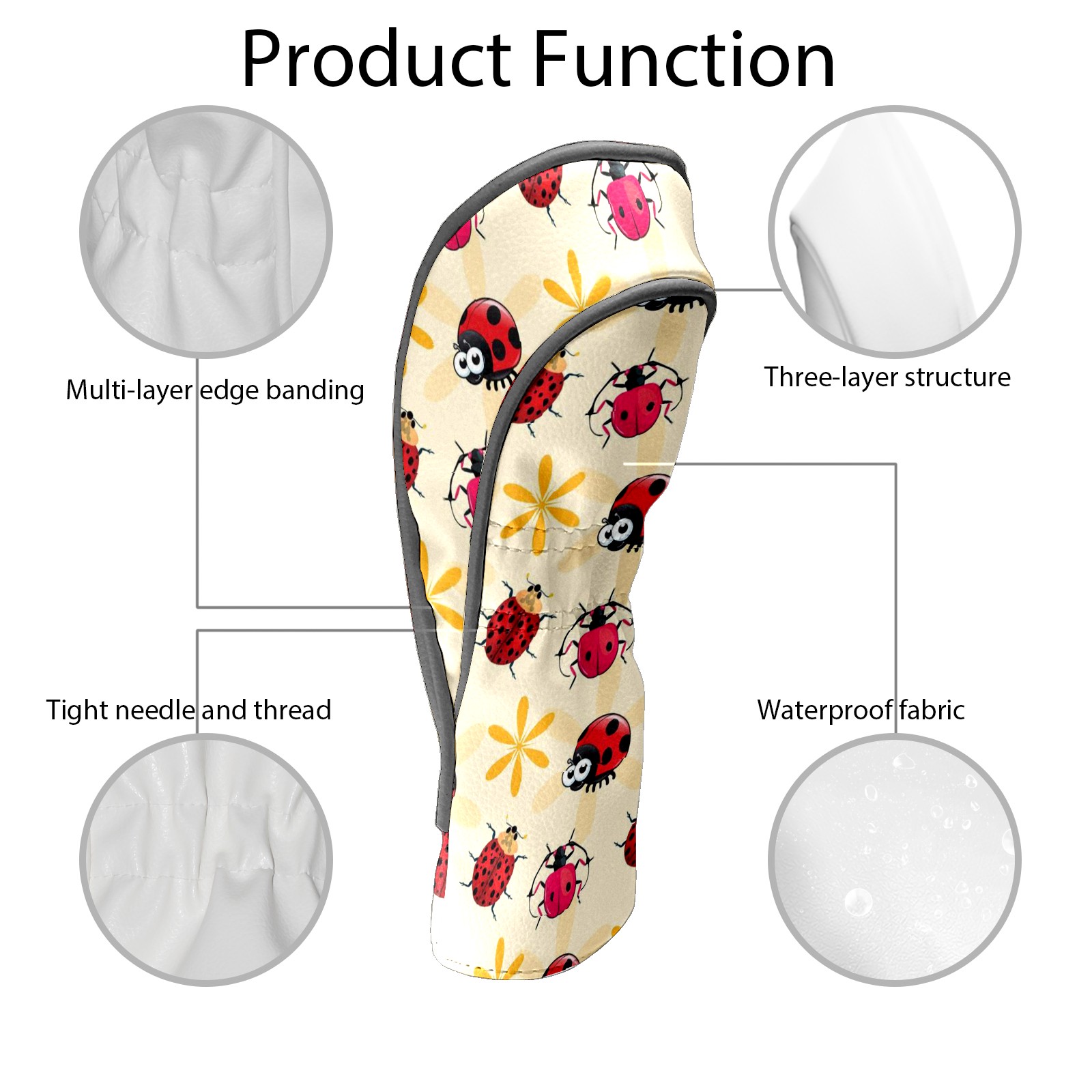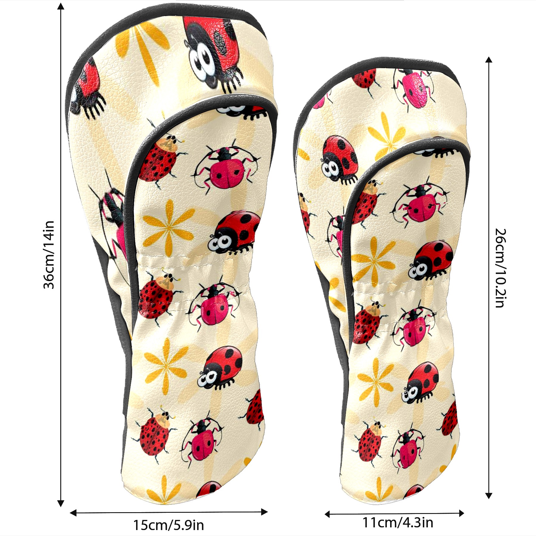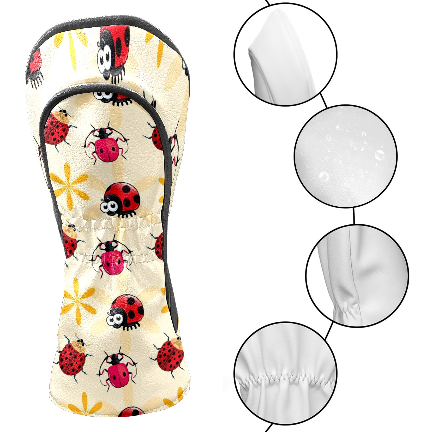 Golf Club Head Cover Waterproof Leather for Driver & Fairway Wood, Driver Headcovers, Golf Accessories for Men Women, Anti-Scratch, Golf Gift for Golfers, 1/3/5 Wood Cover Red Ladybugs Flower