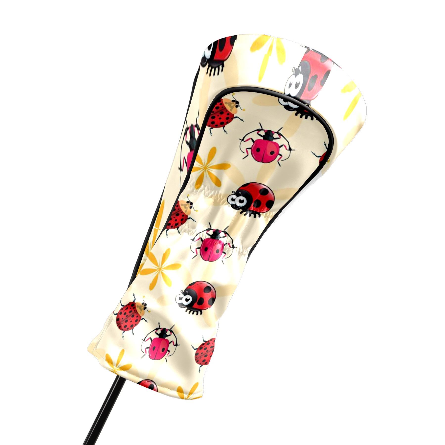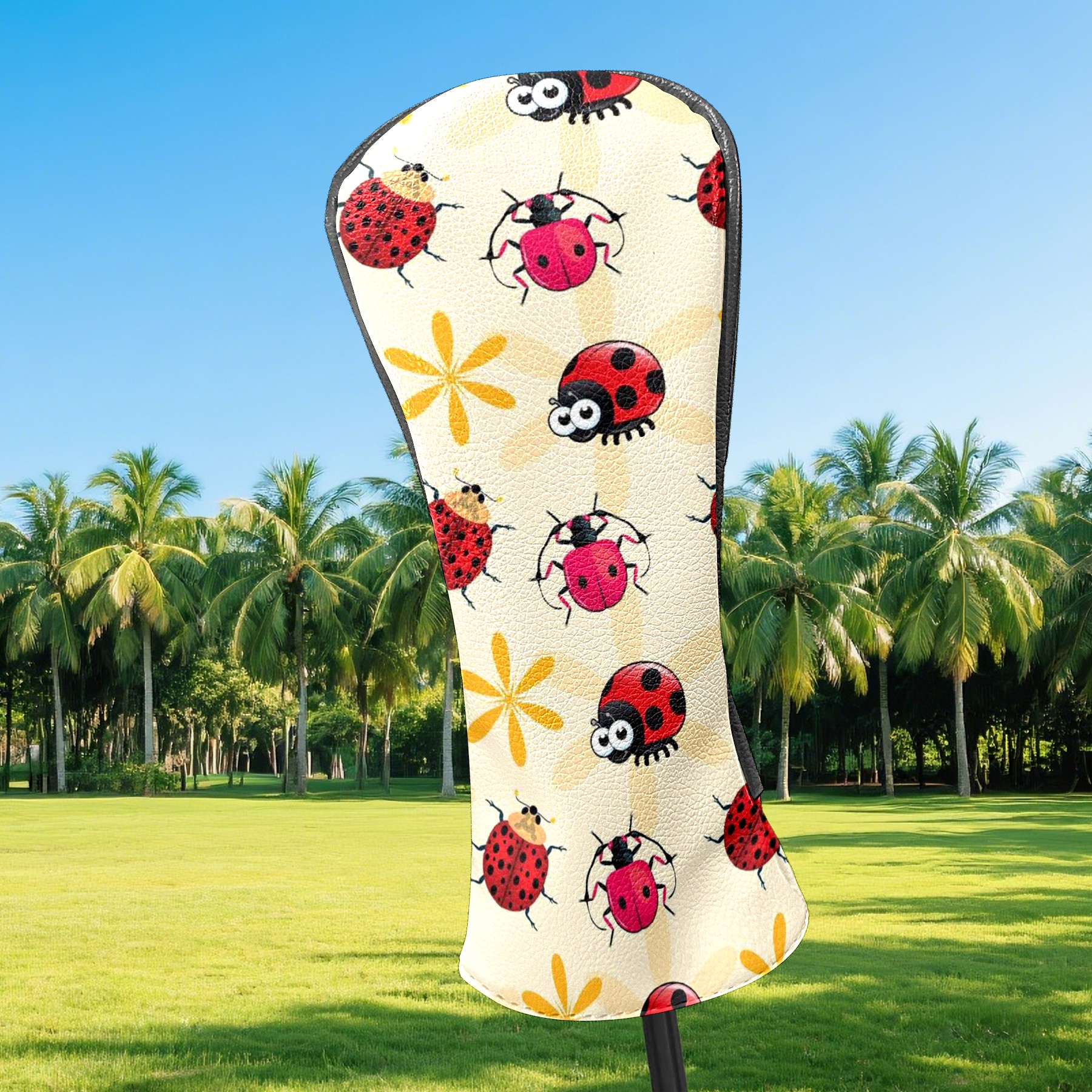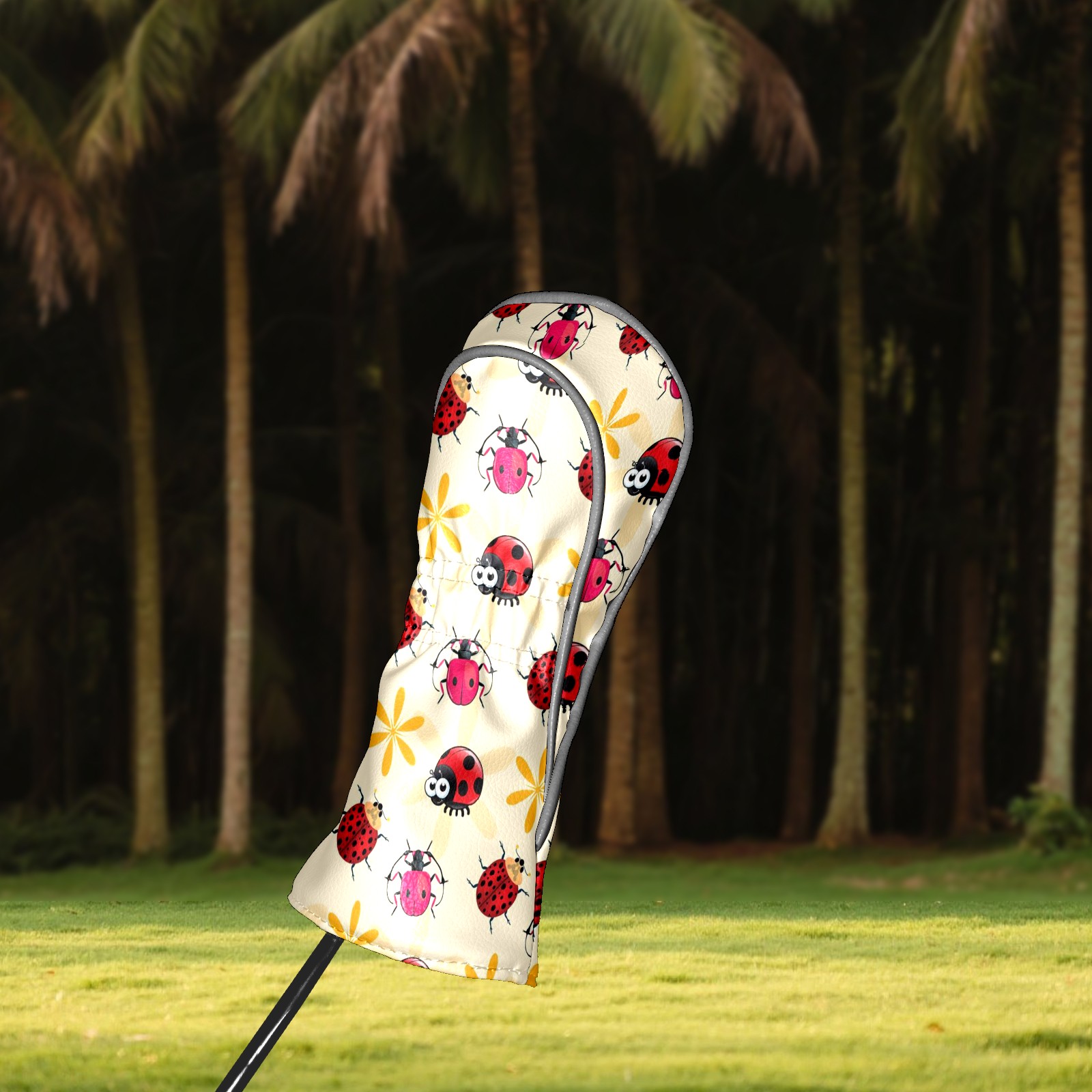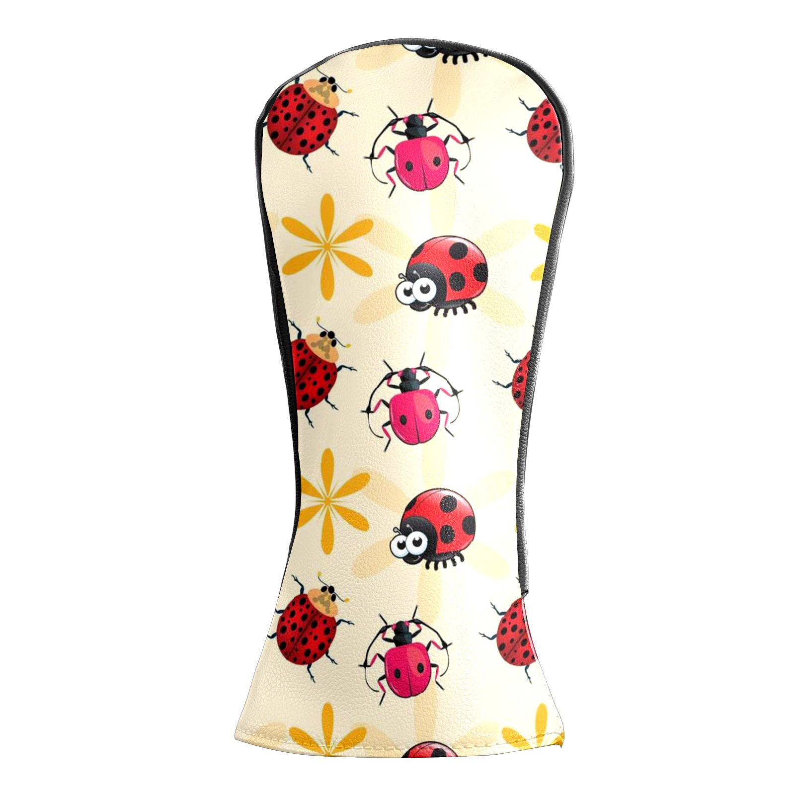 Golf Club Head Cover Waterproof Leather for Driver & Fairway Wood, Driver Headcovers, Golf Accessories for Men Women, Anti-Scratch, Golf Gift for Golfers, 1/3/5 Wood Cover Red Ladybugs Flower