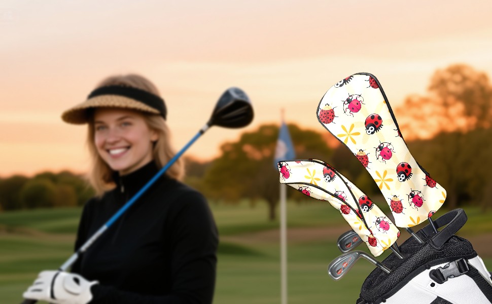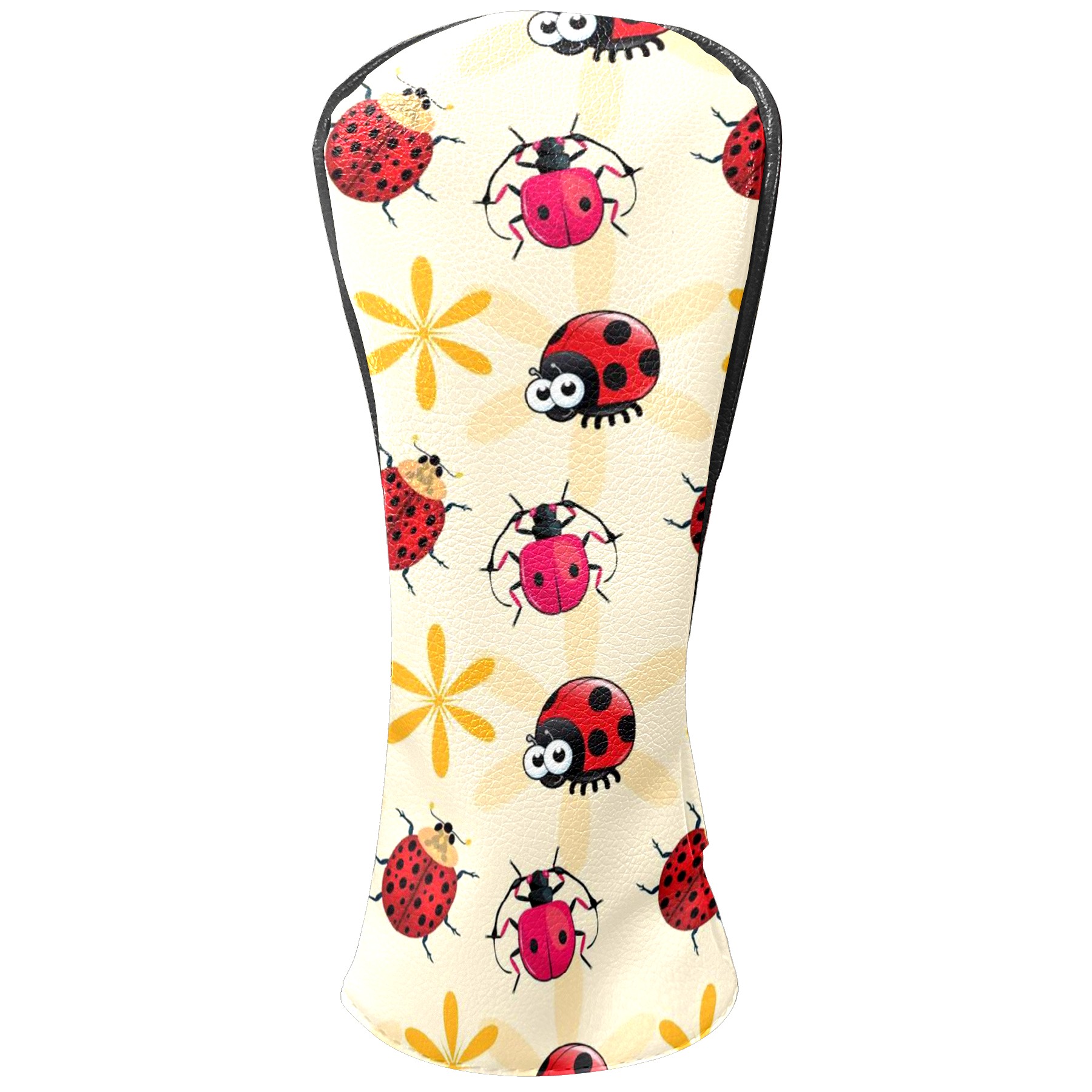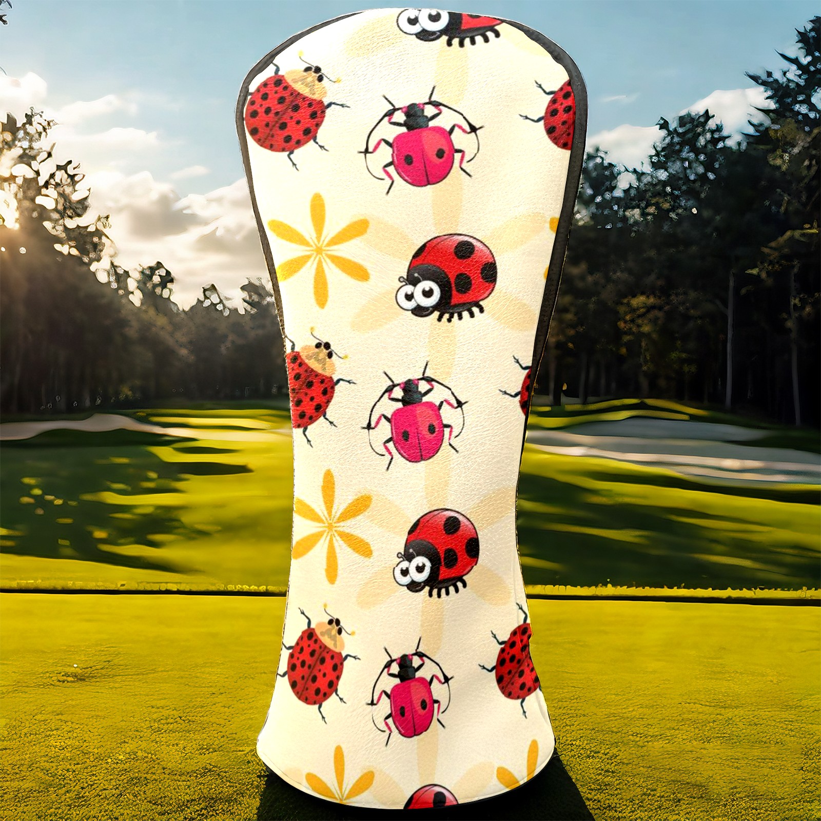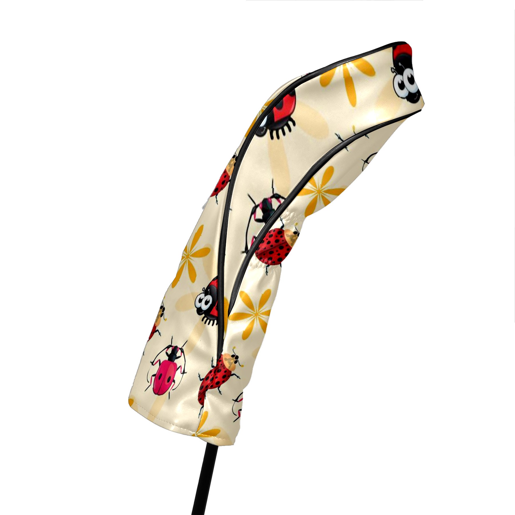 Golf Club Head Cover Waterproof Leather for Driver & Fairway Wood, Driver Headcovers, Golf Accessories for Men Women, Anti-Scratch, Golf Gift for Golfers, 1/3/5 Wood Cover Red Ladybugs Flower