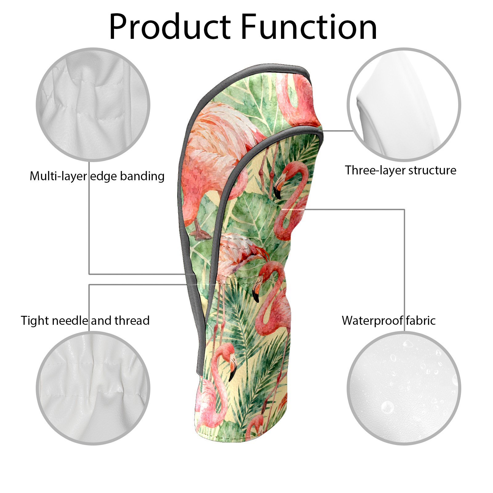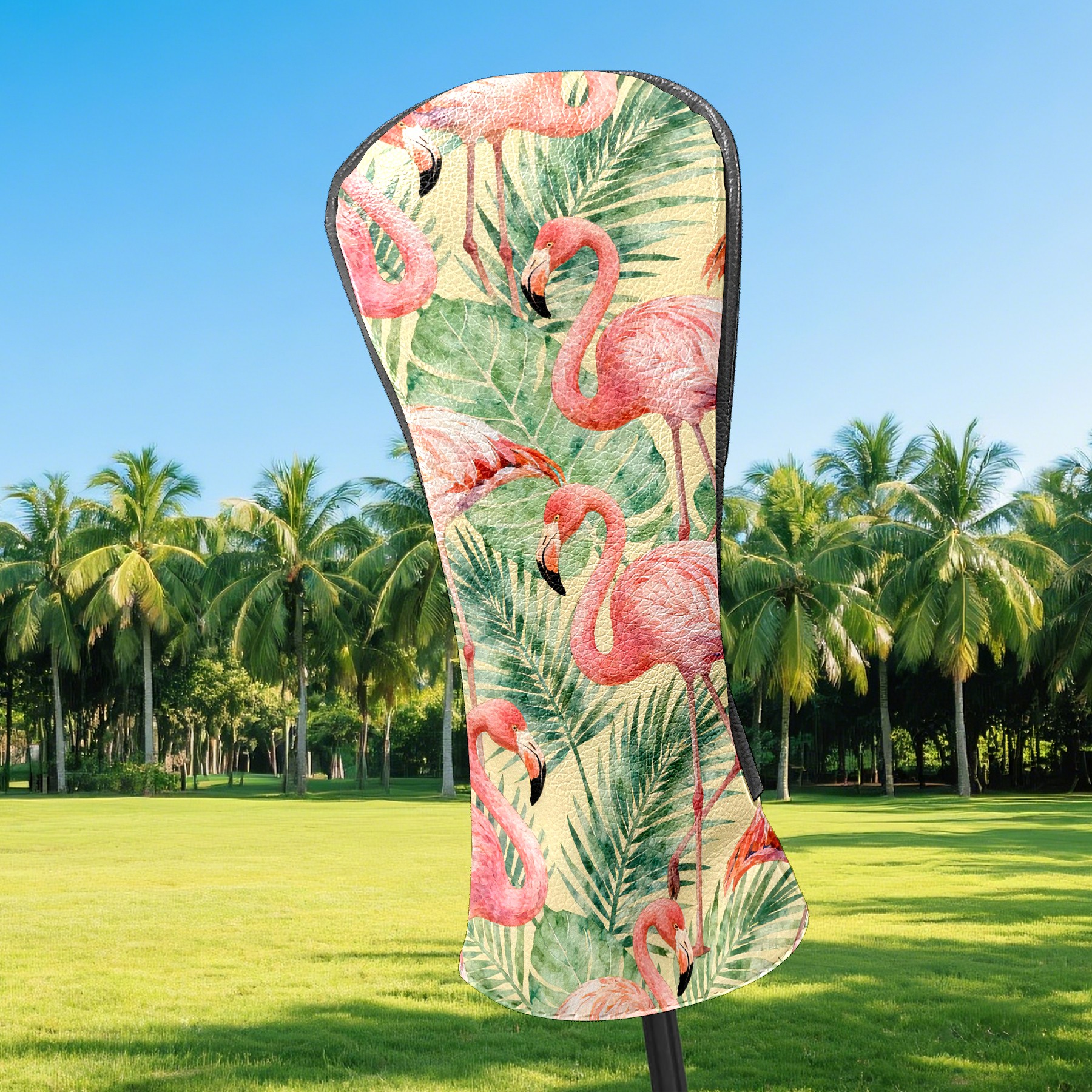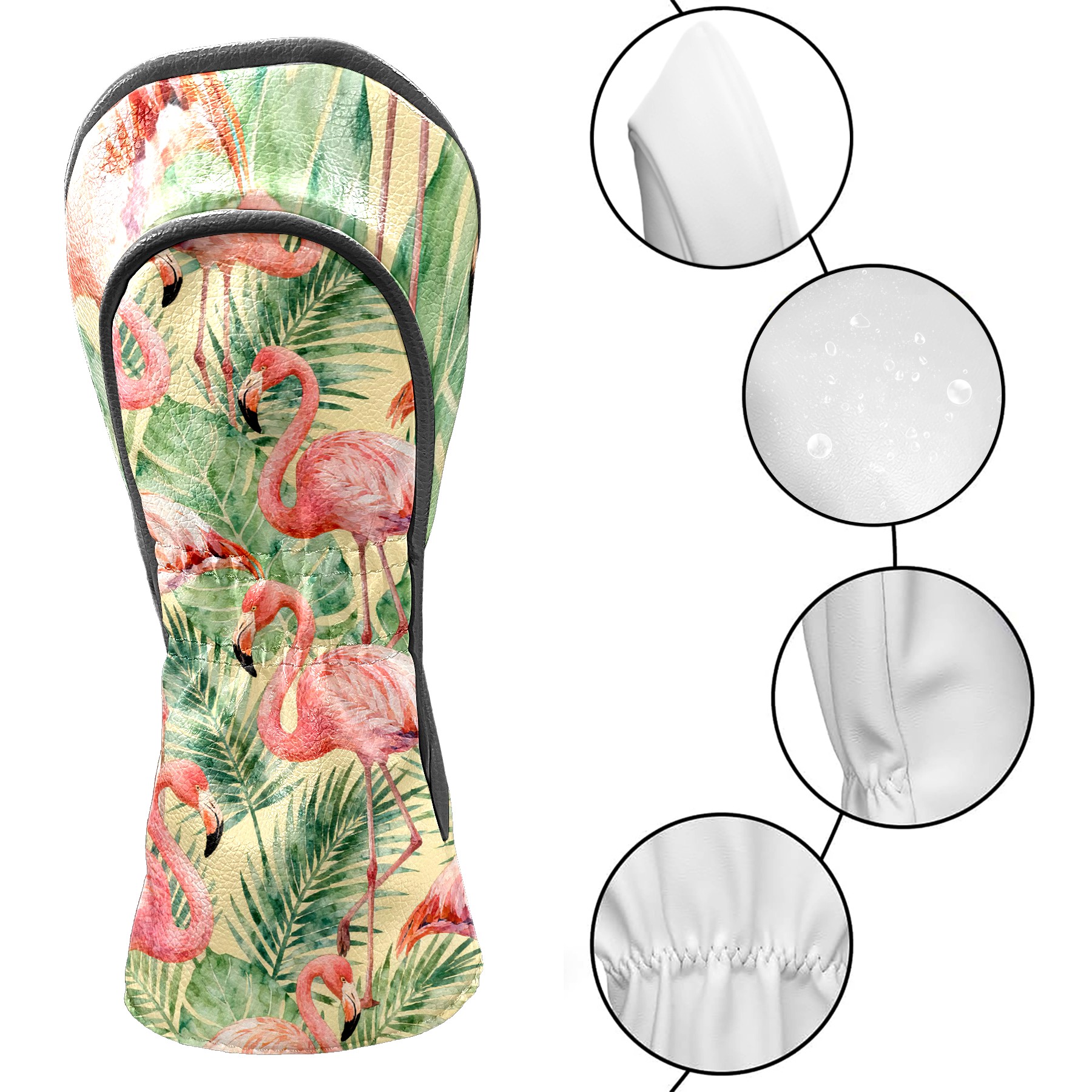 Golf Club Head Cover Waterproof Leather for Driver & Fairway Wood, Driver Headcovers, Golf Accessories for Men Women, Anti-Scratch, Golf Gift for Golfers, 1/3/5 Wood Cover Flamingos Tropical Jungle