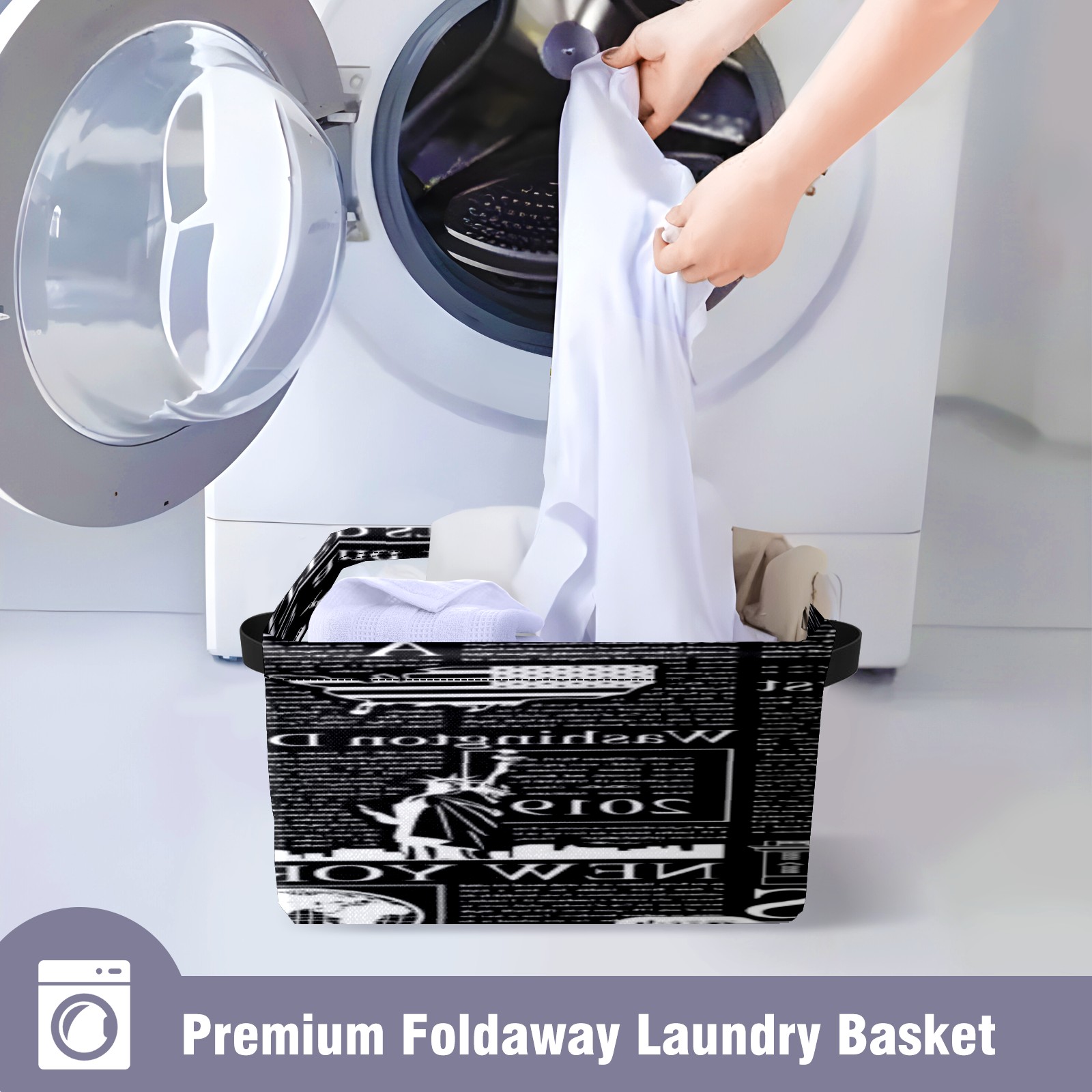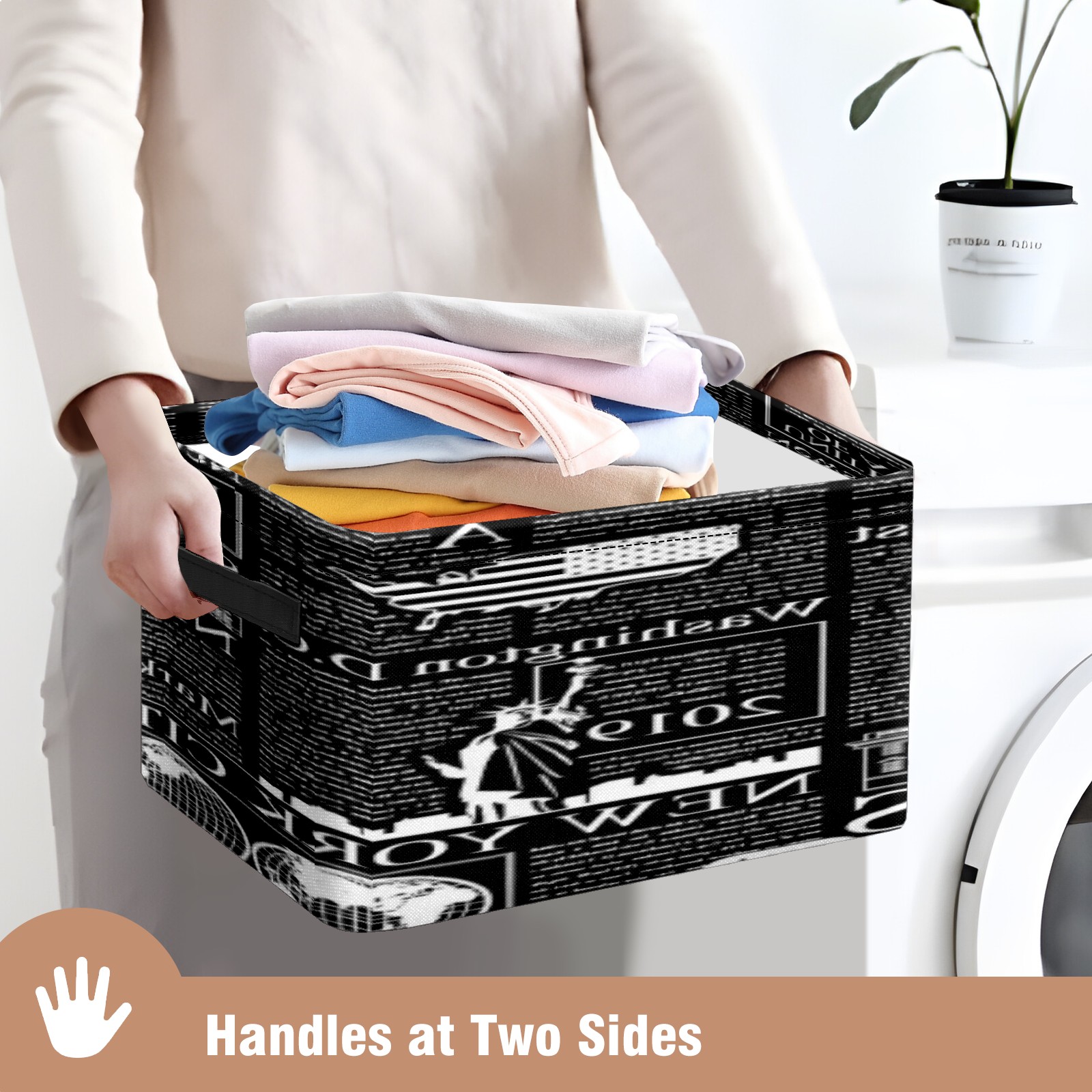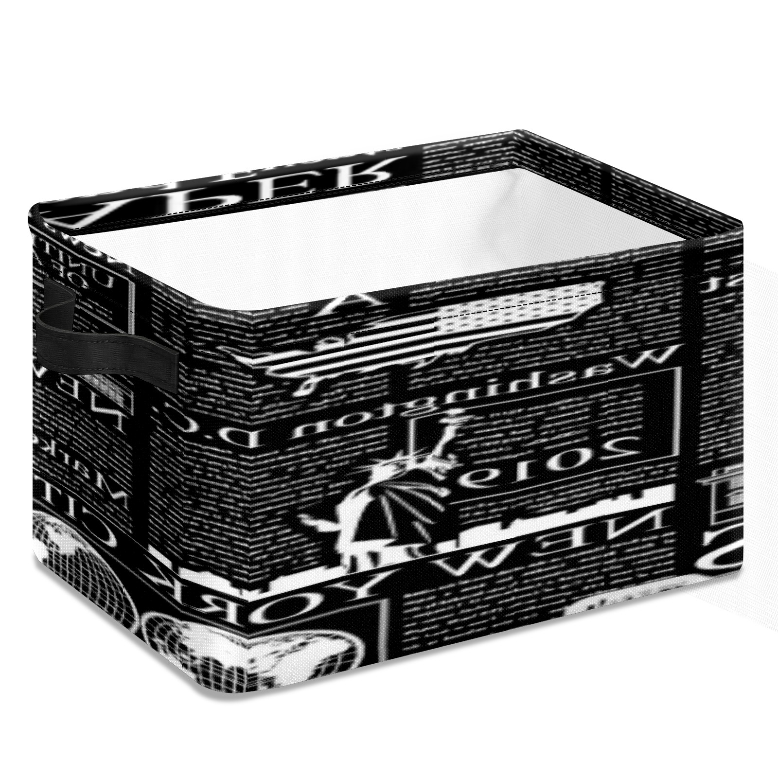 1 Pack Woven Storage Baskets - Natural Seagrass Organizer Bins with Handles, Decorative Foldable Storage Vintage Newsprint