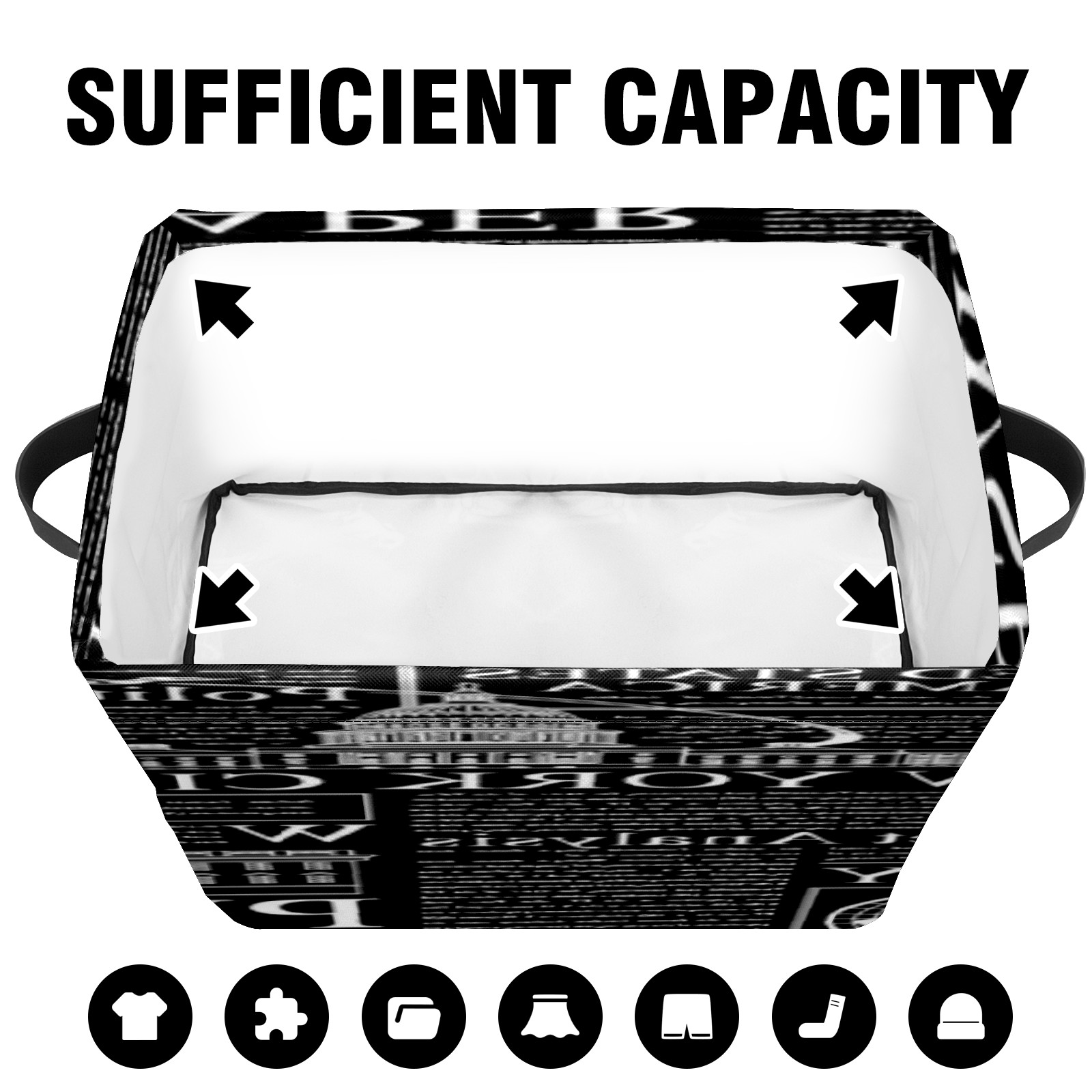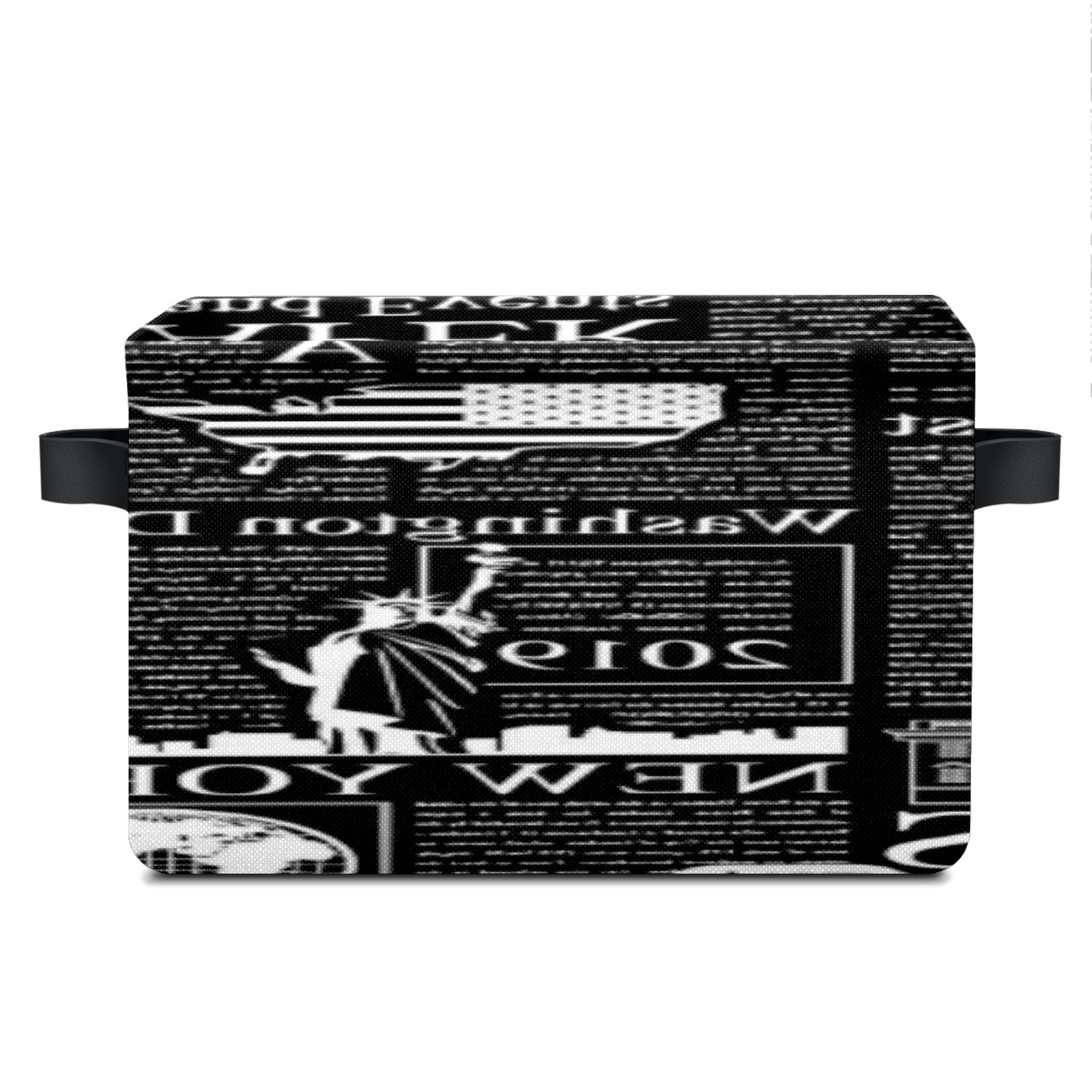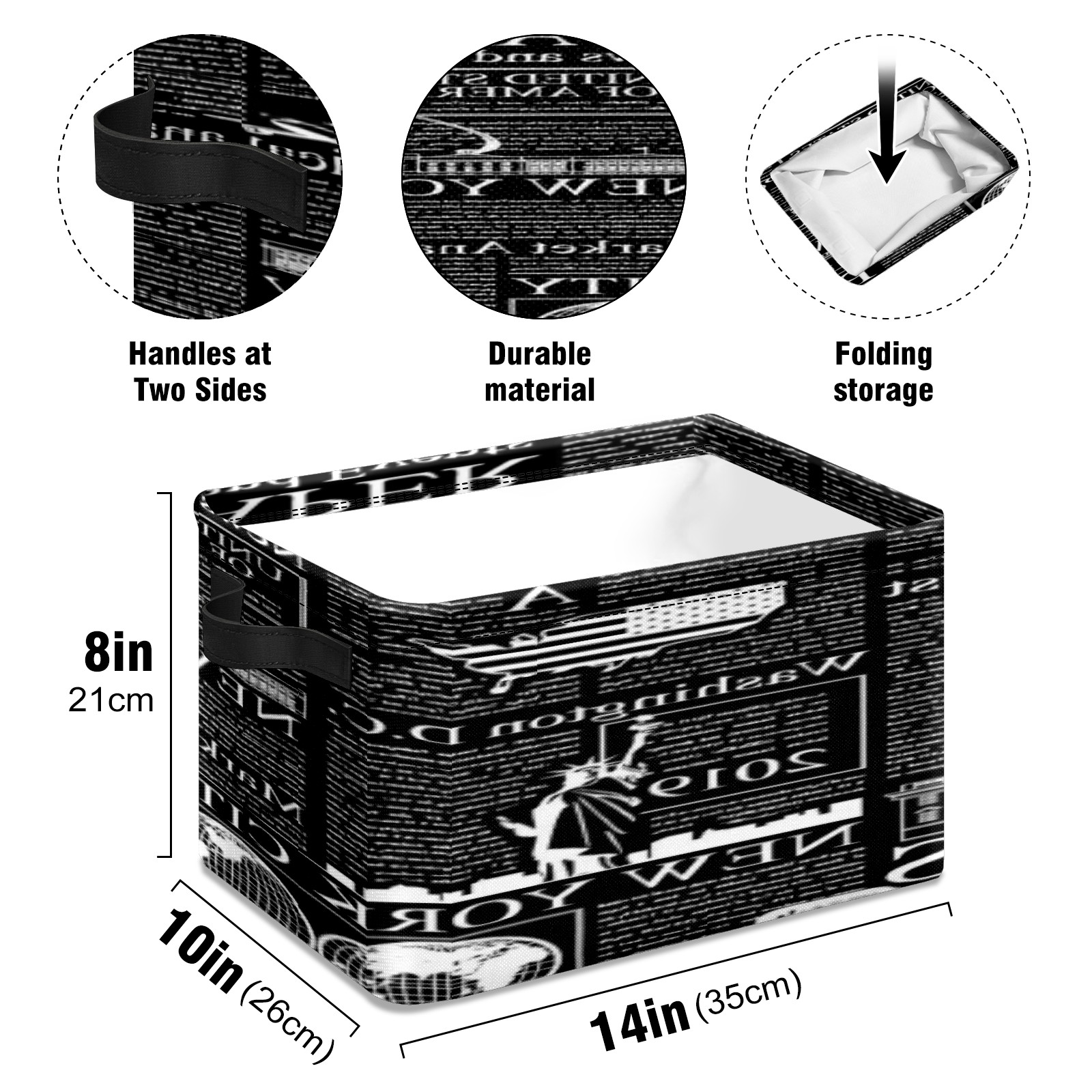 1 Pack Woven Storage Baskets - Natural Seagrass Organizer Bins with Handles, Decorative Foldable Storage Vintage Newsprint