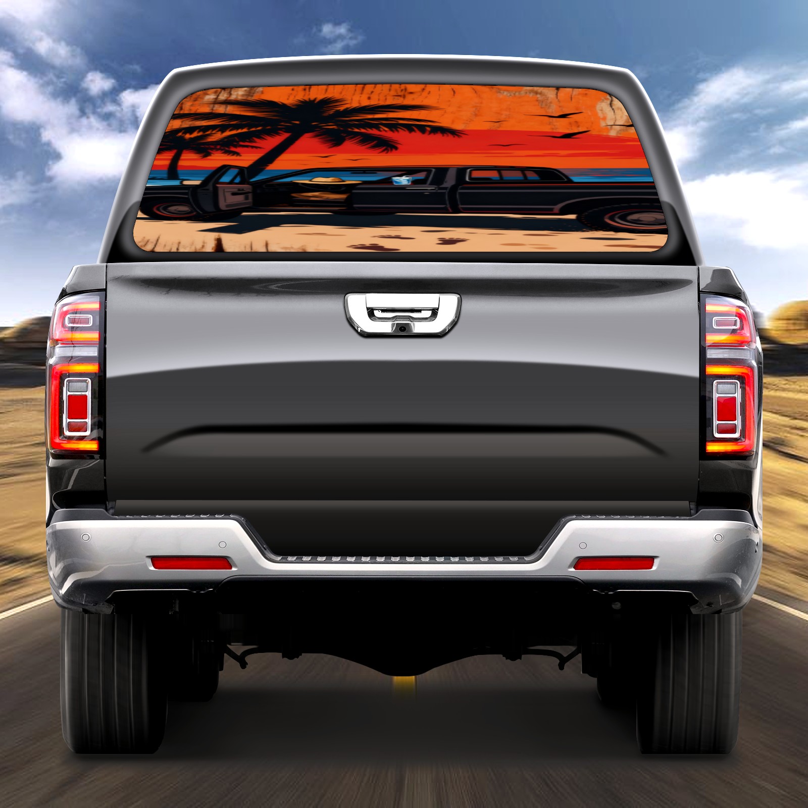 Pickup Car Window Stickers Decal Rear Window Decals for Trucks One Way Visual Waterproof Truck Back Window Tint Decal Graphic Perforated Vinyl Truck Stickers 66X 22inch Sunset Pickup