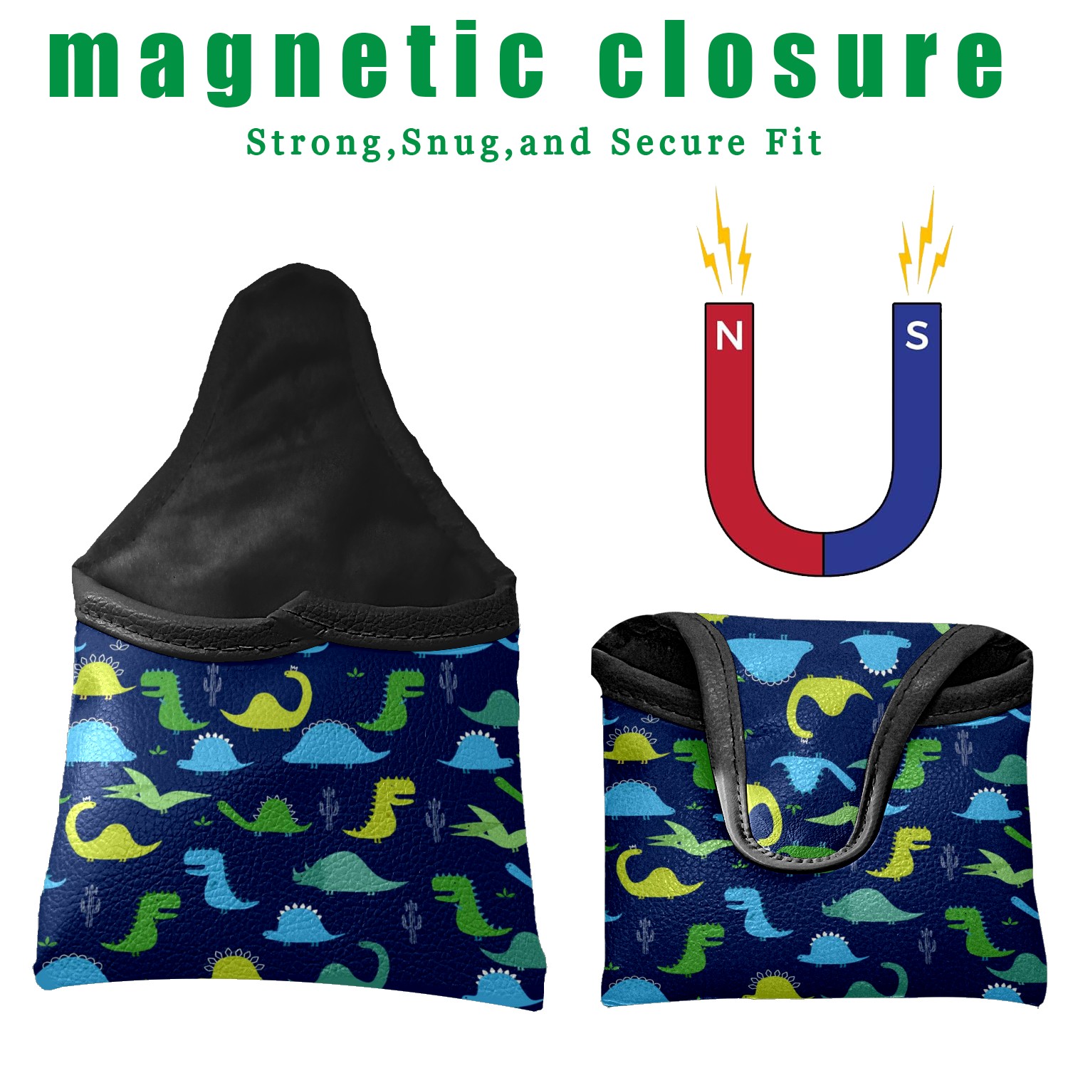 Golf Club Headcovers - Premium PU Leather, Waterproof & Stain-Resistant, Soft Velvet Lining for Scratch Protection, Easy to Clean, Perfect Gift for Golfers Navy Blue Dinosaur