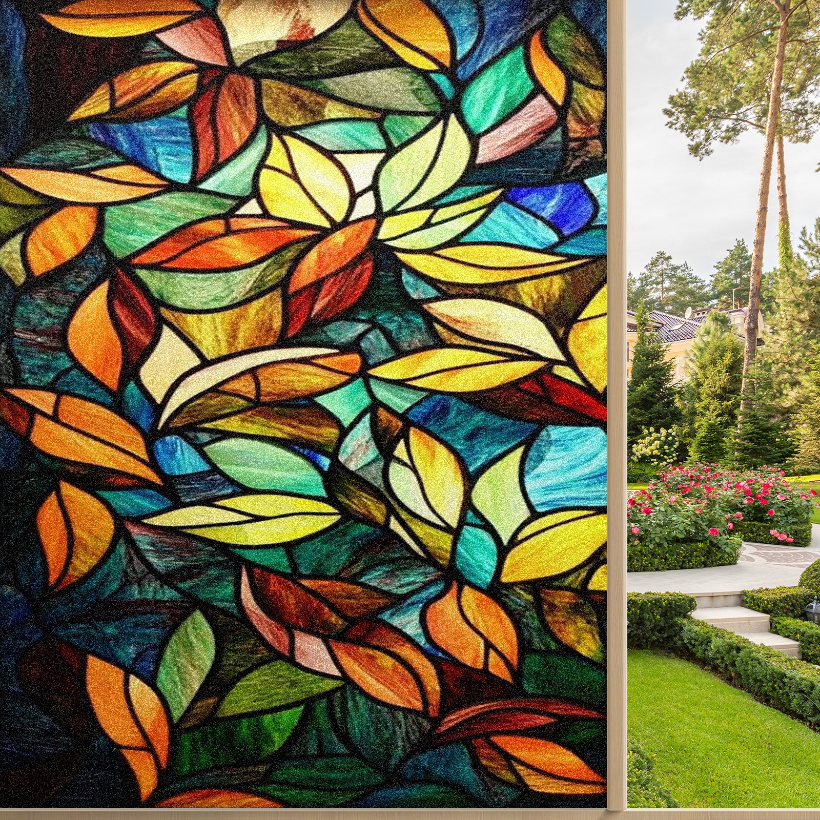 <p>Our stained glass privacy window film combines daytime privacy with soft, natural light, blocking unwanted views without the need for heavy curtains! Made from premium PET material with a single-sided frosted finish, it blocks 90% of UV rays and 86% of infrared rays, effectively protecting you and your furniture. This window film requires no adhesive, is environmentally friendly, and reusable (leaving no residue after removal). Available in six sizes, it's suitable for sliding doors, bathrooms, living rooms, offices, hotels, and more. It's the ideal choice for creating a bright, private, and secure space!</p>