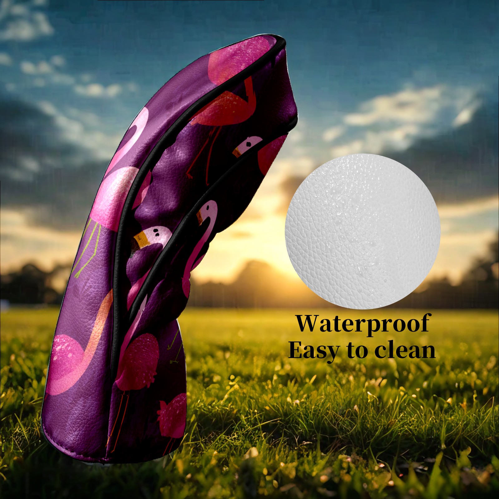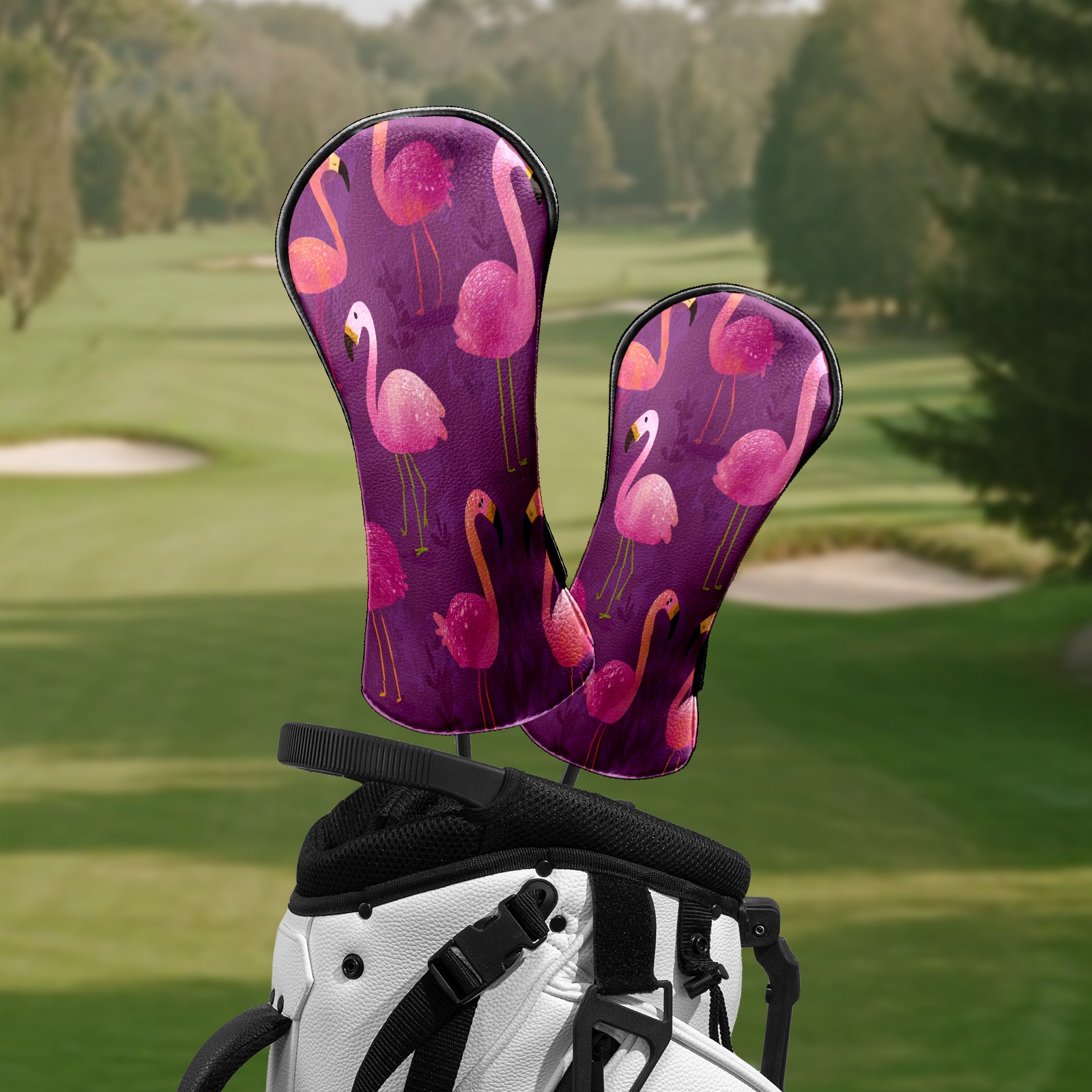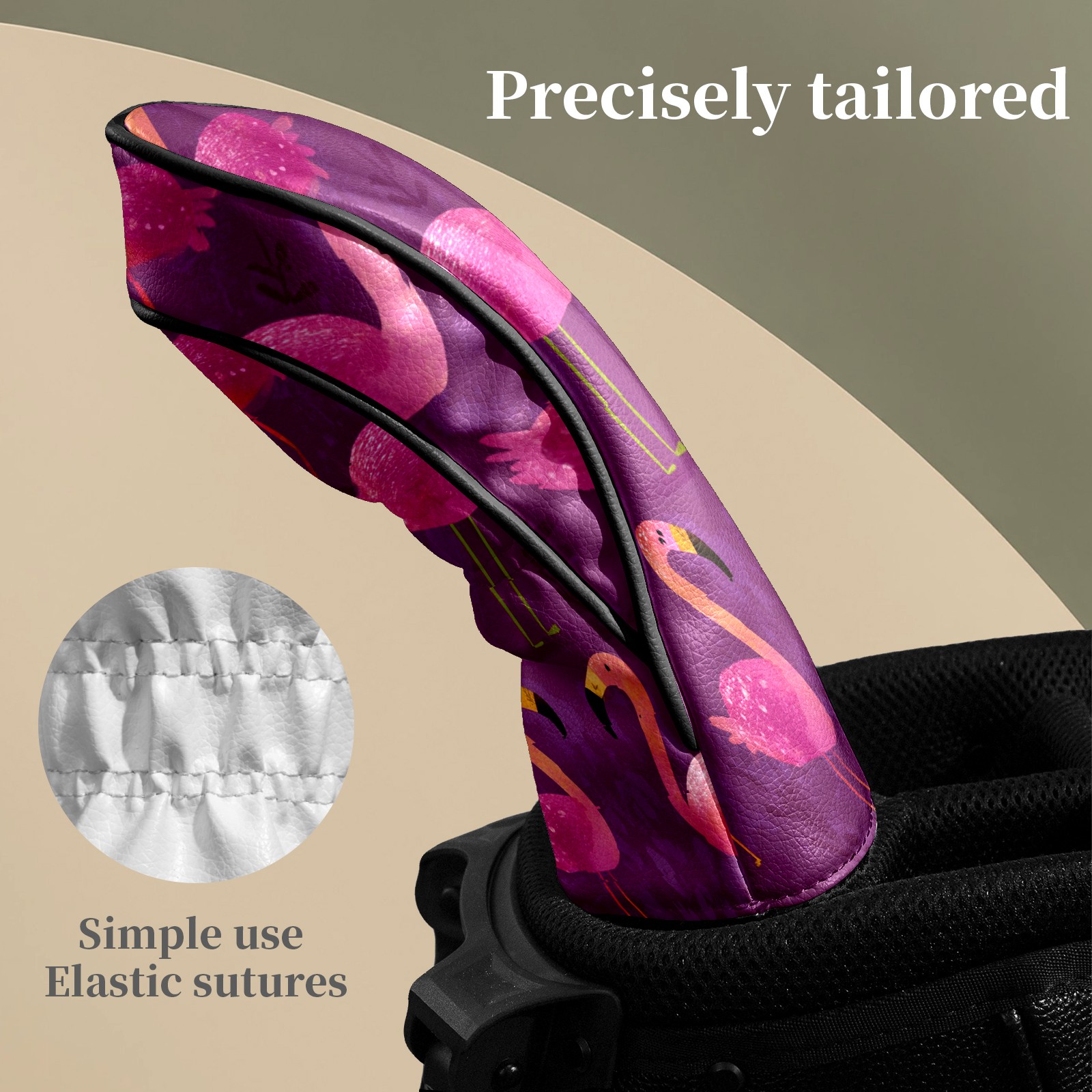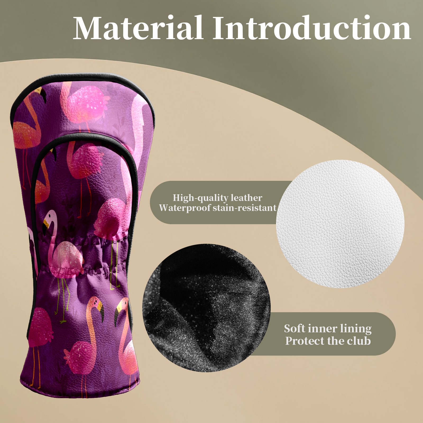 Counullo Golf Head Covers - Flamingos Pink Driver Fairway Headcover, Durable PU Leather & Soft Velvet Lining, Secure Elastic Band, Perfect Christmas Golf Gift for Men