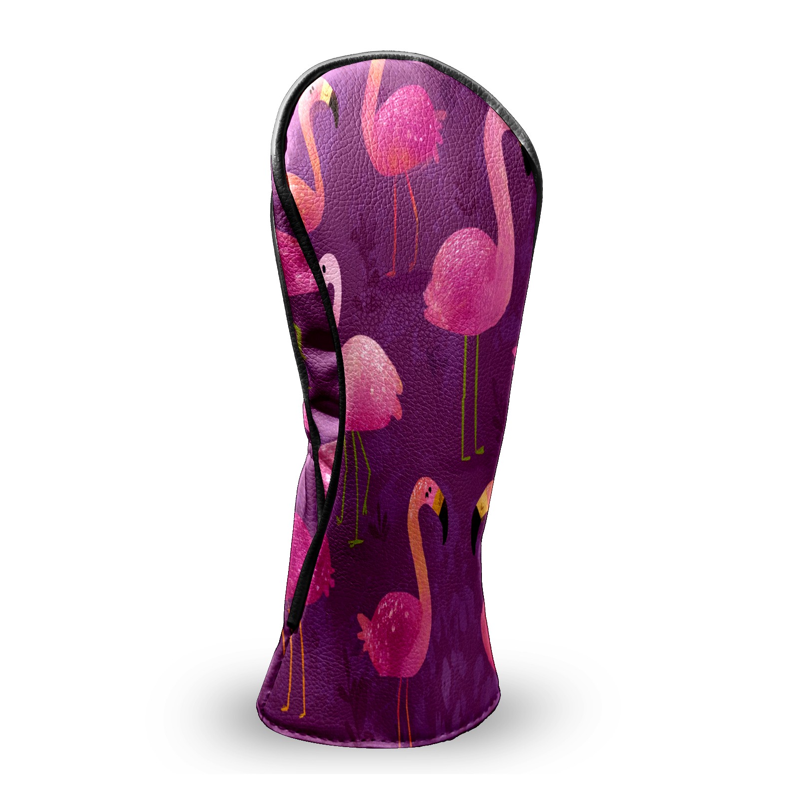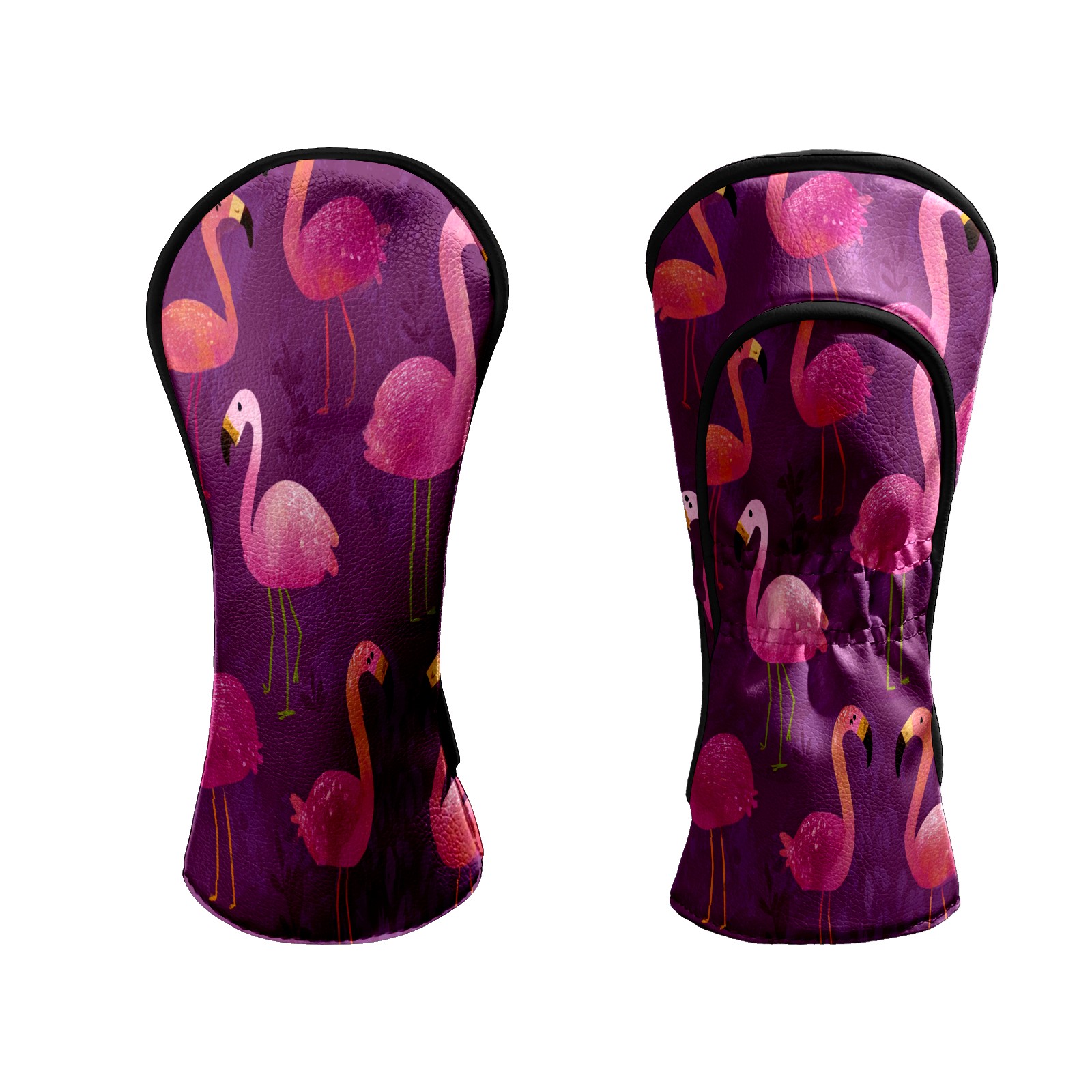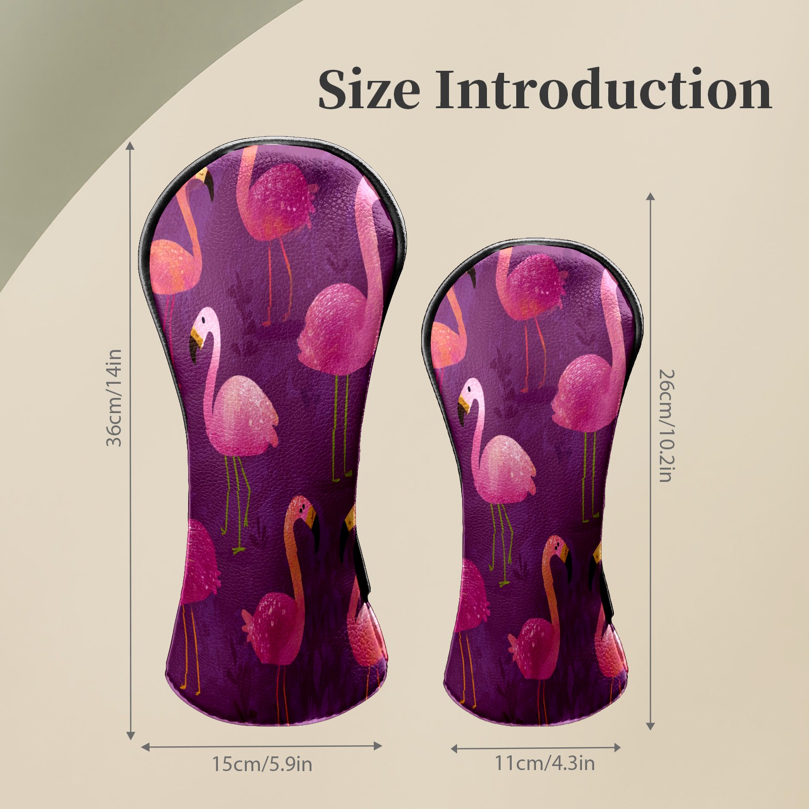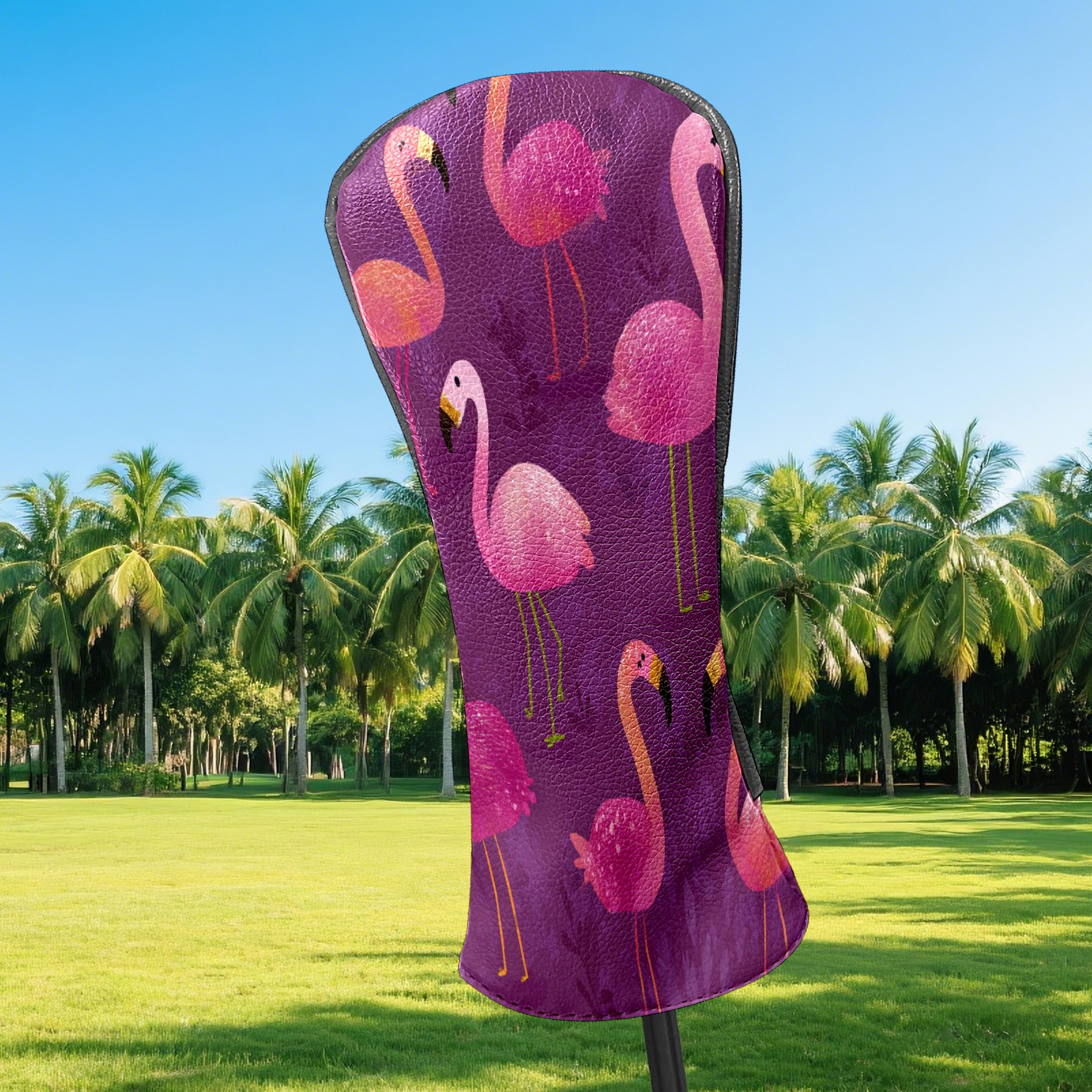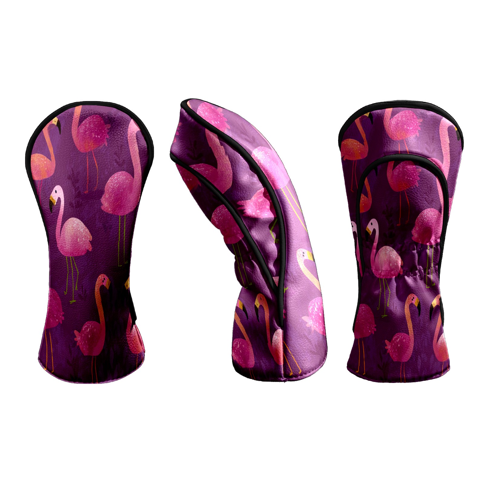 Counullo Golf Head Covers - Flamingos Pink Driver Fairway Headcover, Durable PU Leather & Soft Velvet Lining, Secure Elastic Band, Perfect Christmas Golf Gift for Men