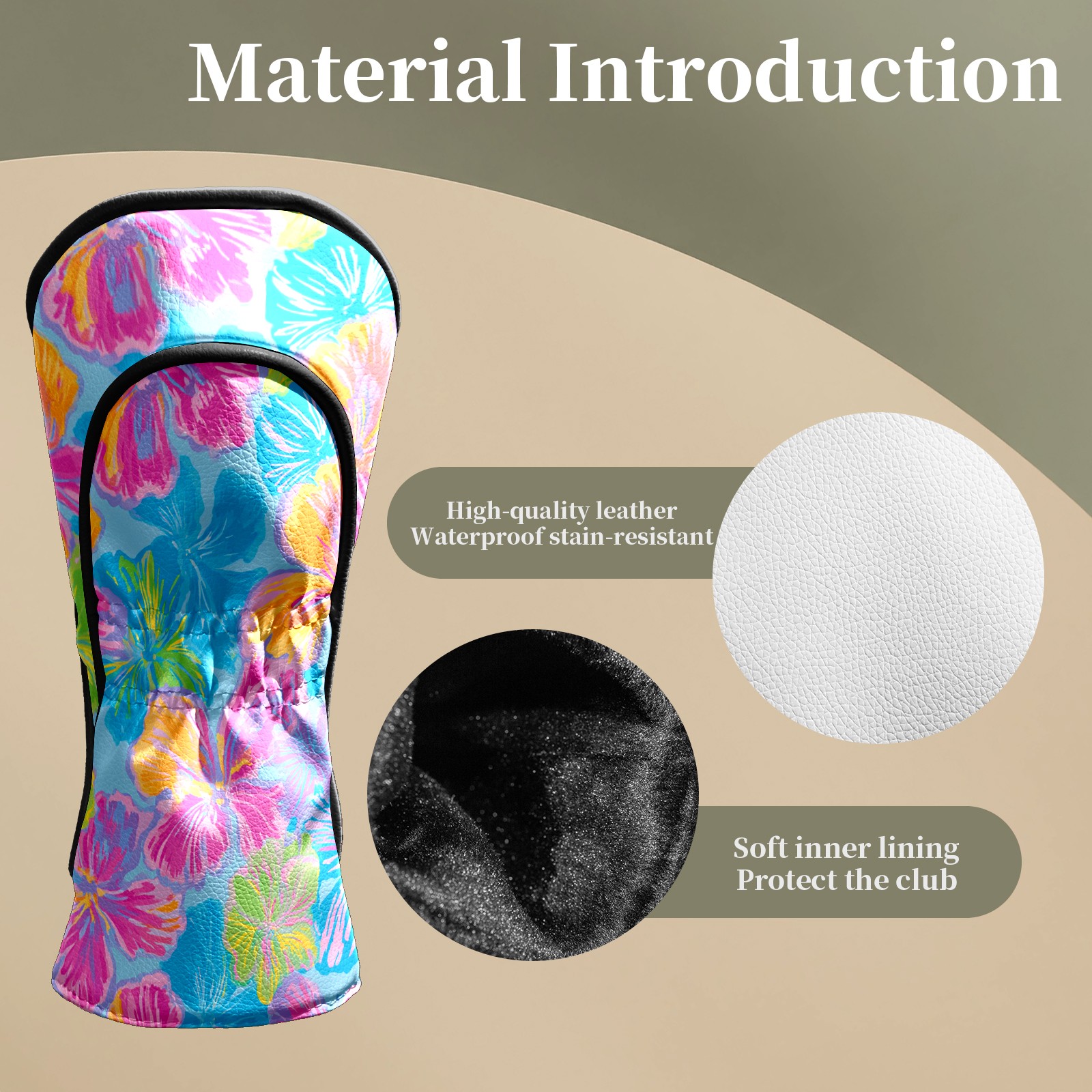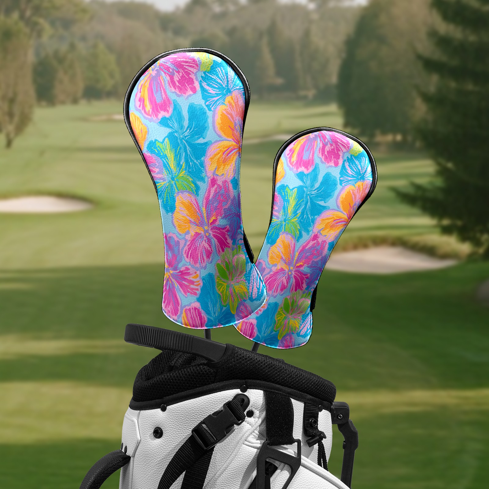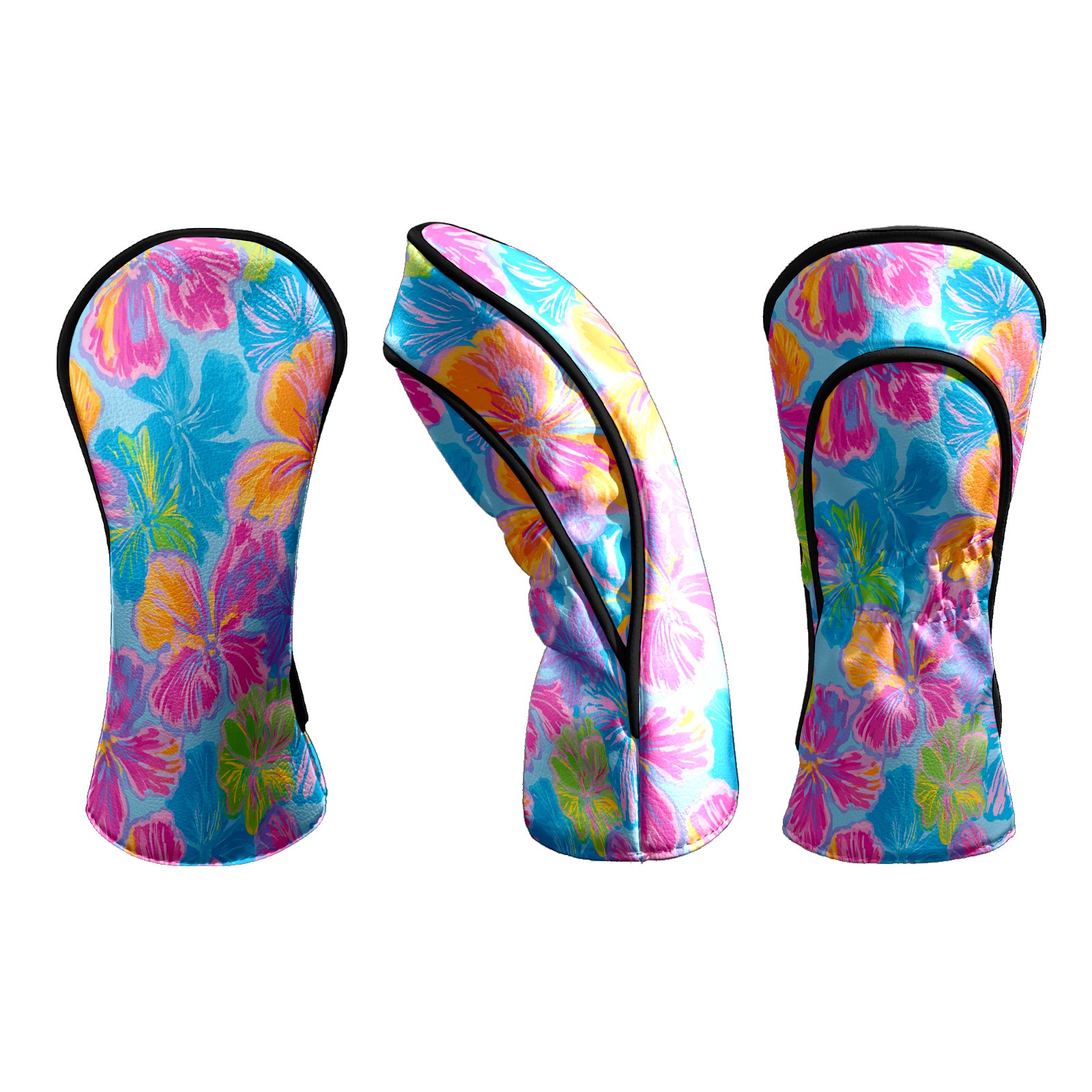 Counullo Golf Head Covers - Tropical Floral Multicolor Driver Fairway Headcover, Durable PU Leather & Soft Velvet Lining, Secure Elastic Band, Perfect Christmas Golf Gift for Men