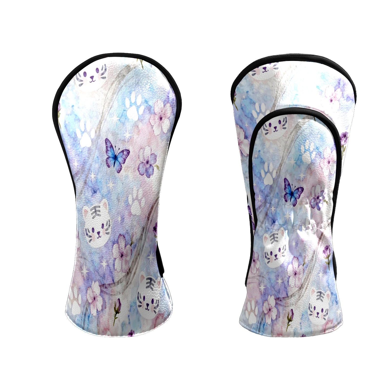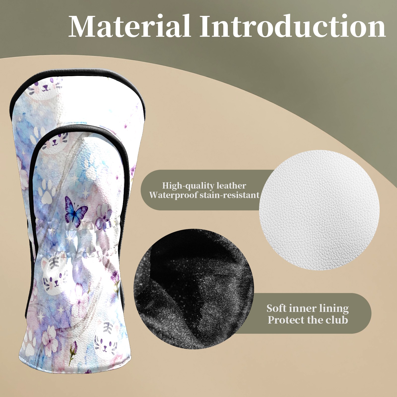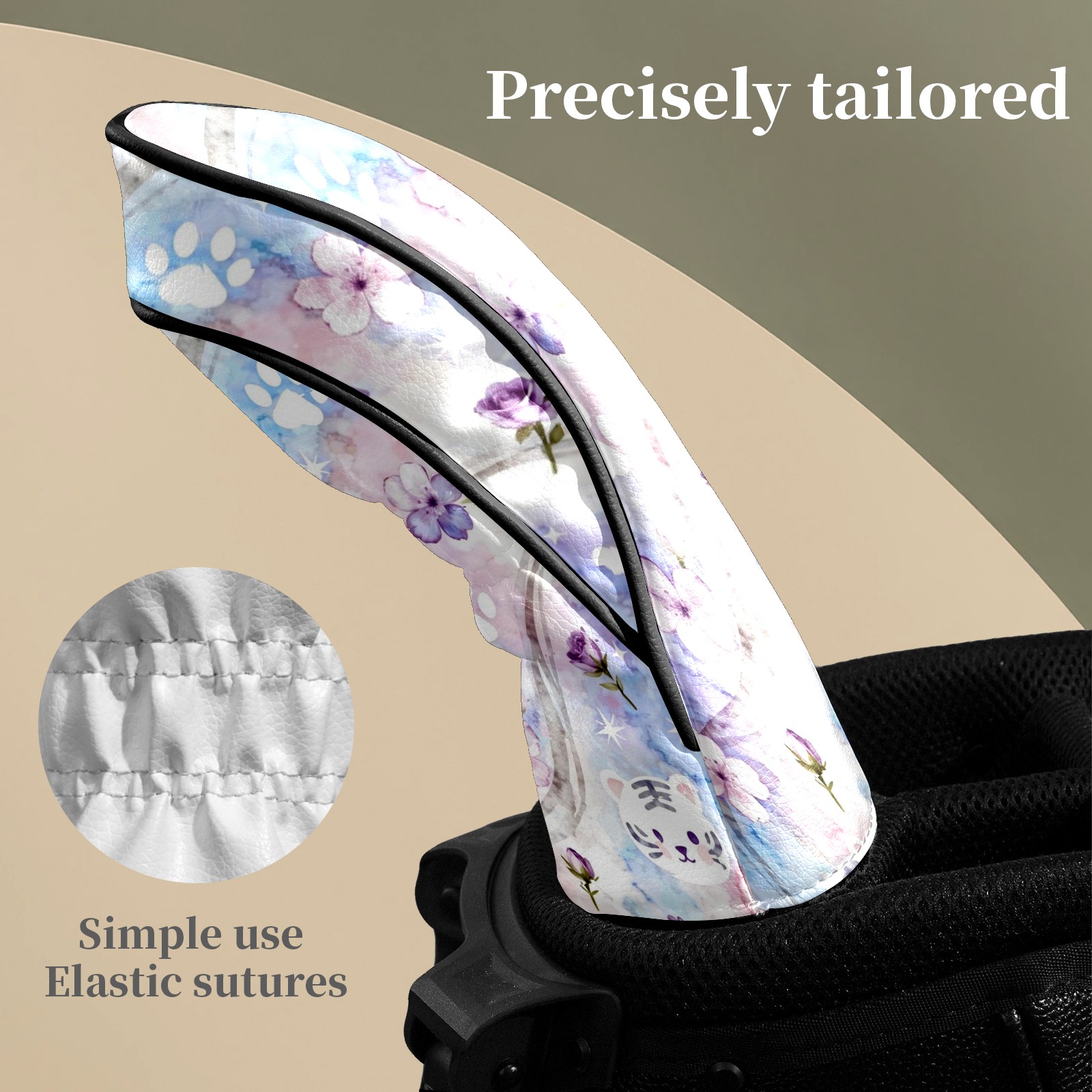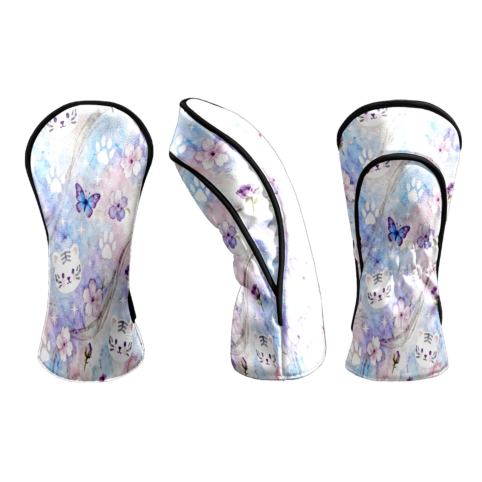 Counullo Golf Head Covers - Cat Paw LightPurple Driver Fairway Headcover, Durable PU Leather & Soft Velvet Lining, Secure Elastic Band, Perfect Christmas Golf Gift for Men