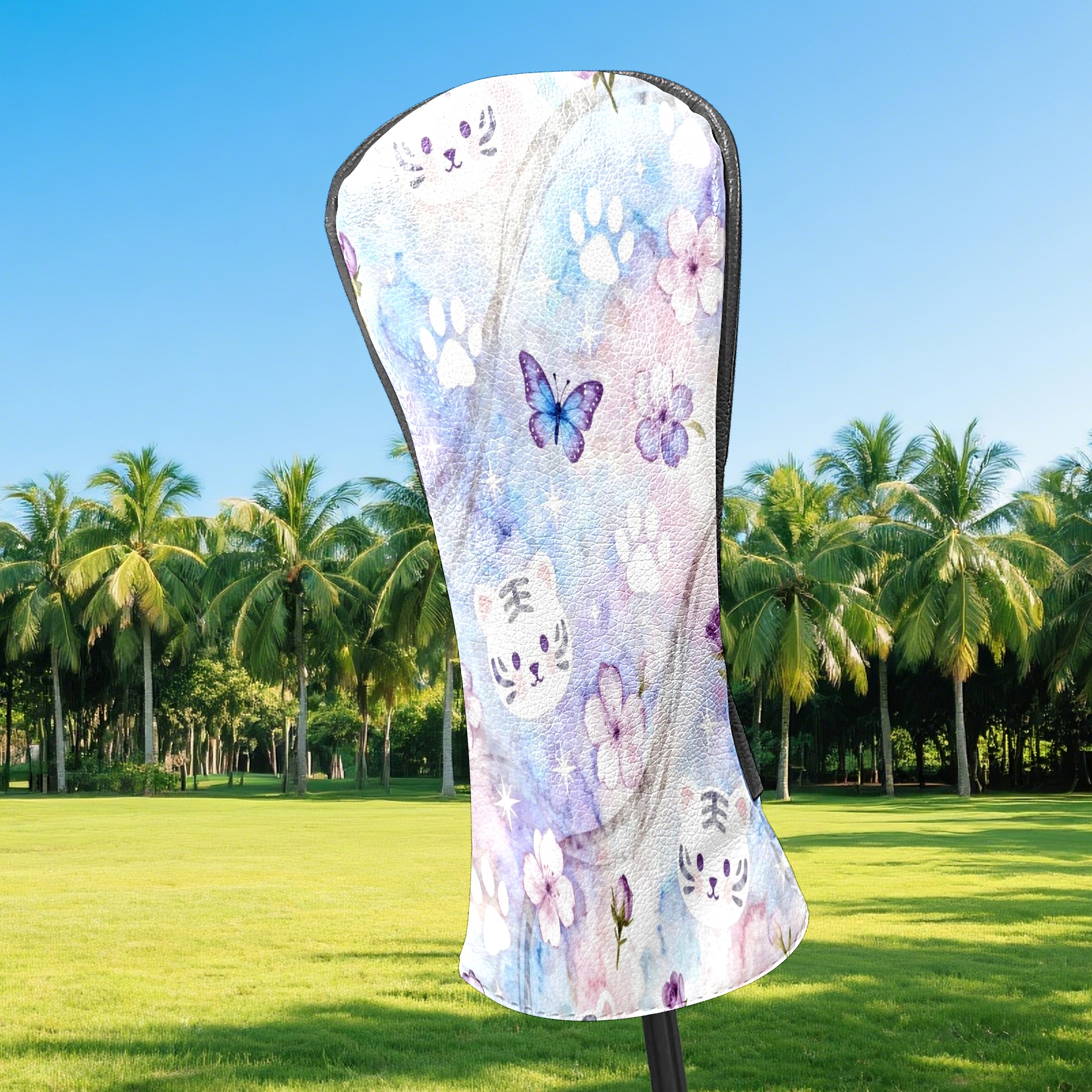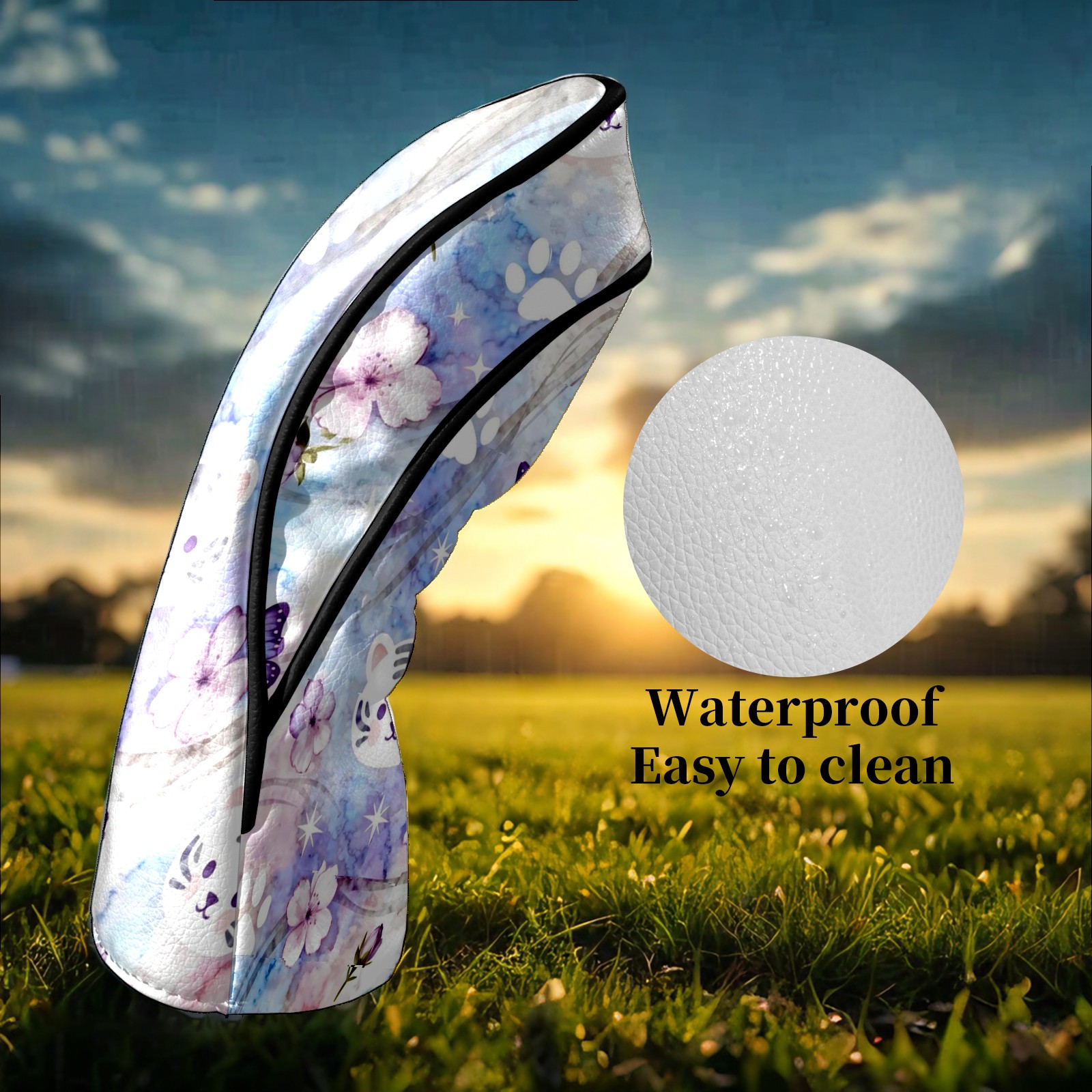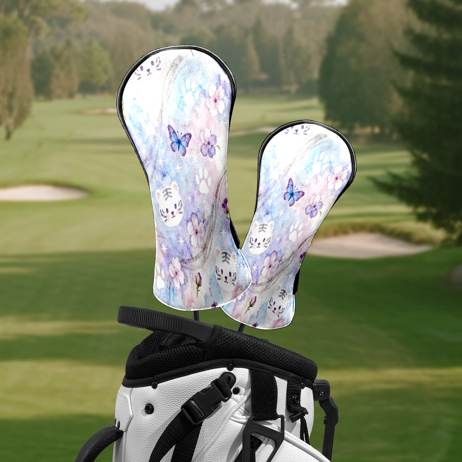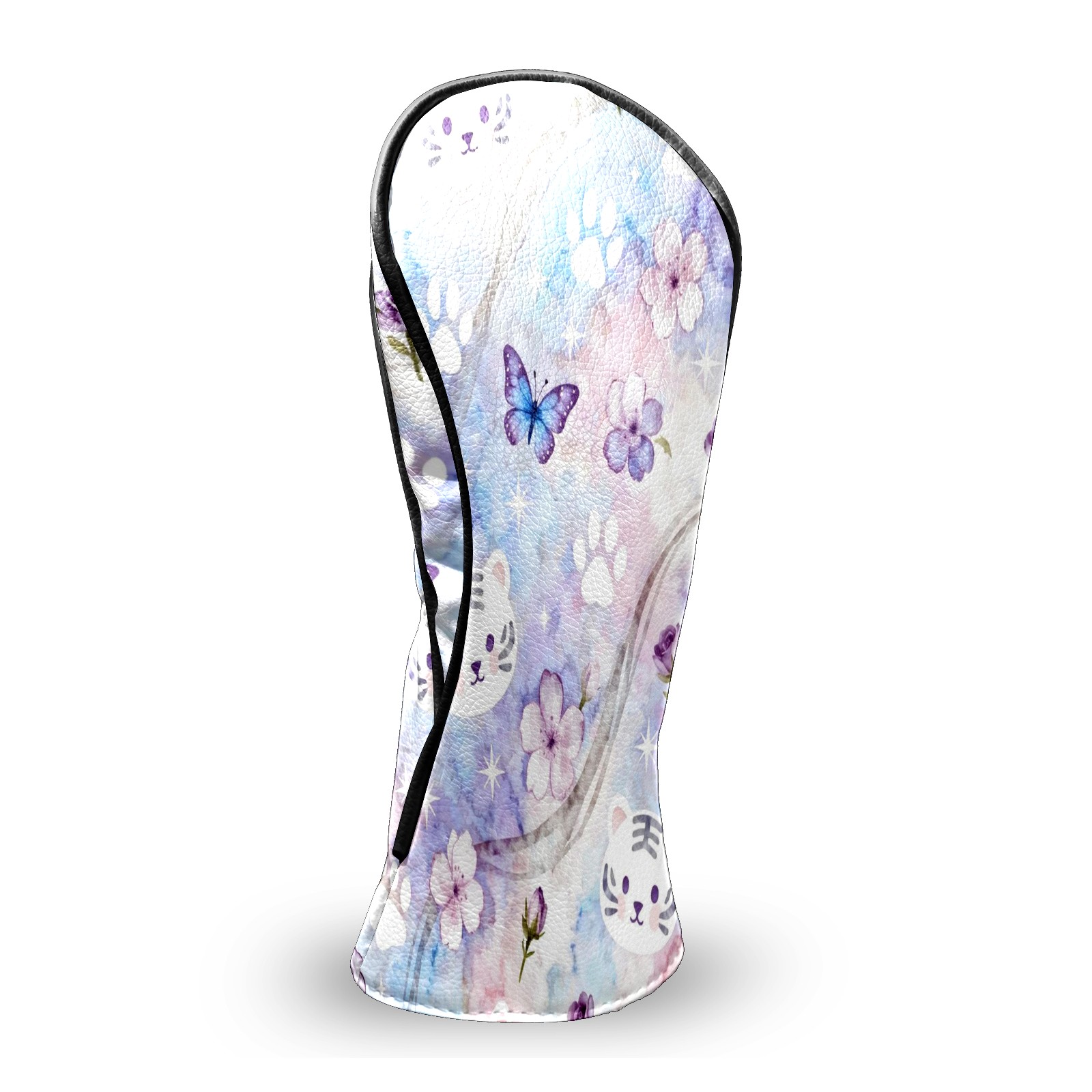 Counullo Golf Head Covers - Cat Paw LightPurple Driver Fairway Headcover, Durable PU Leather & Soft Velvet Lining, Secure Elastic Band, Perfect Christmas Golf Gift for Men