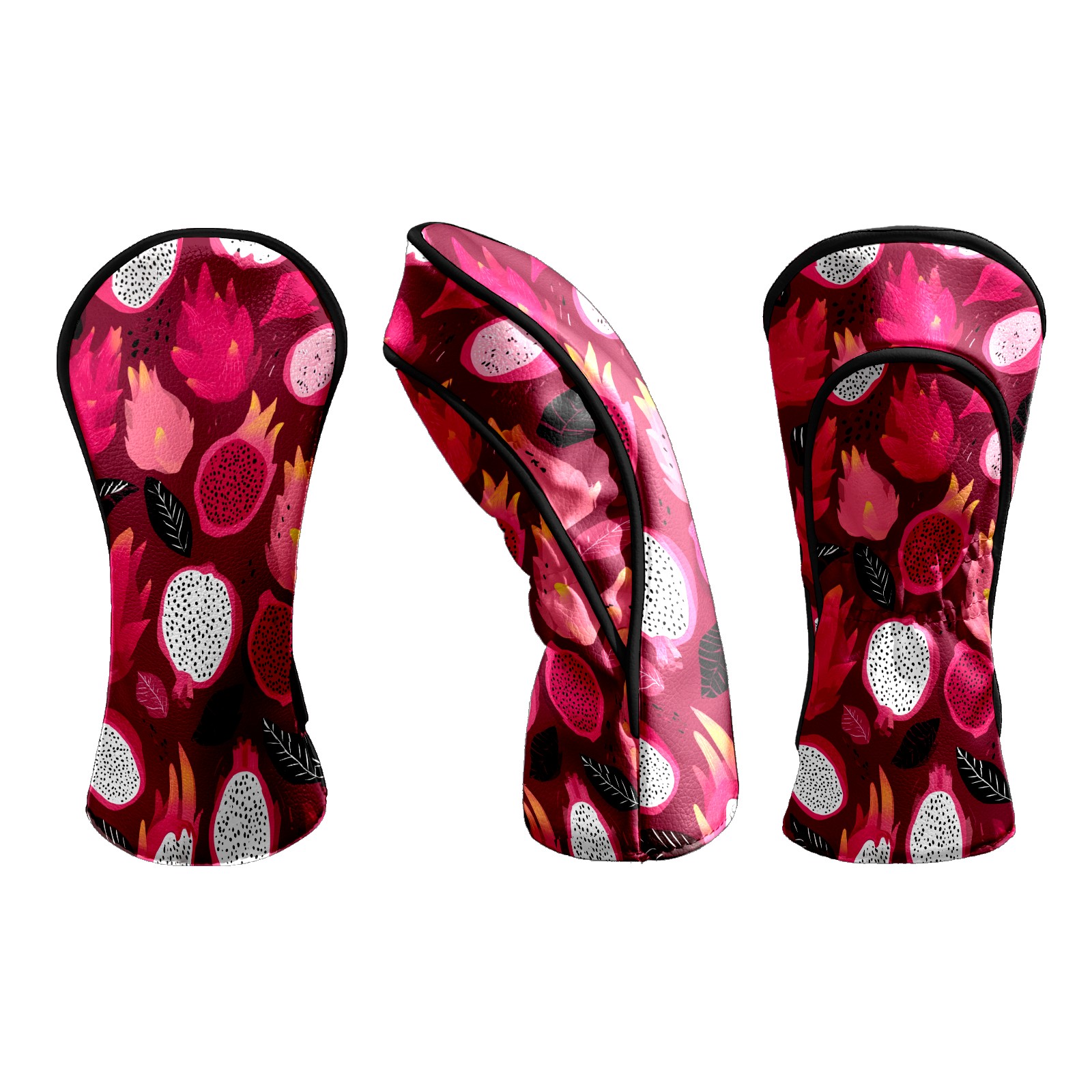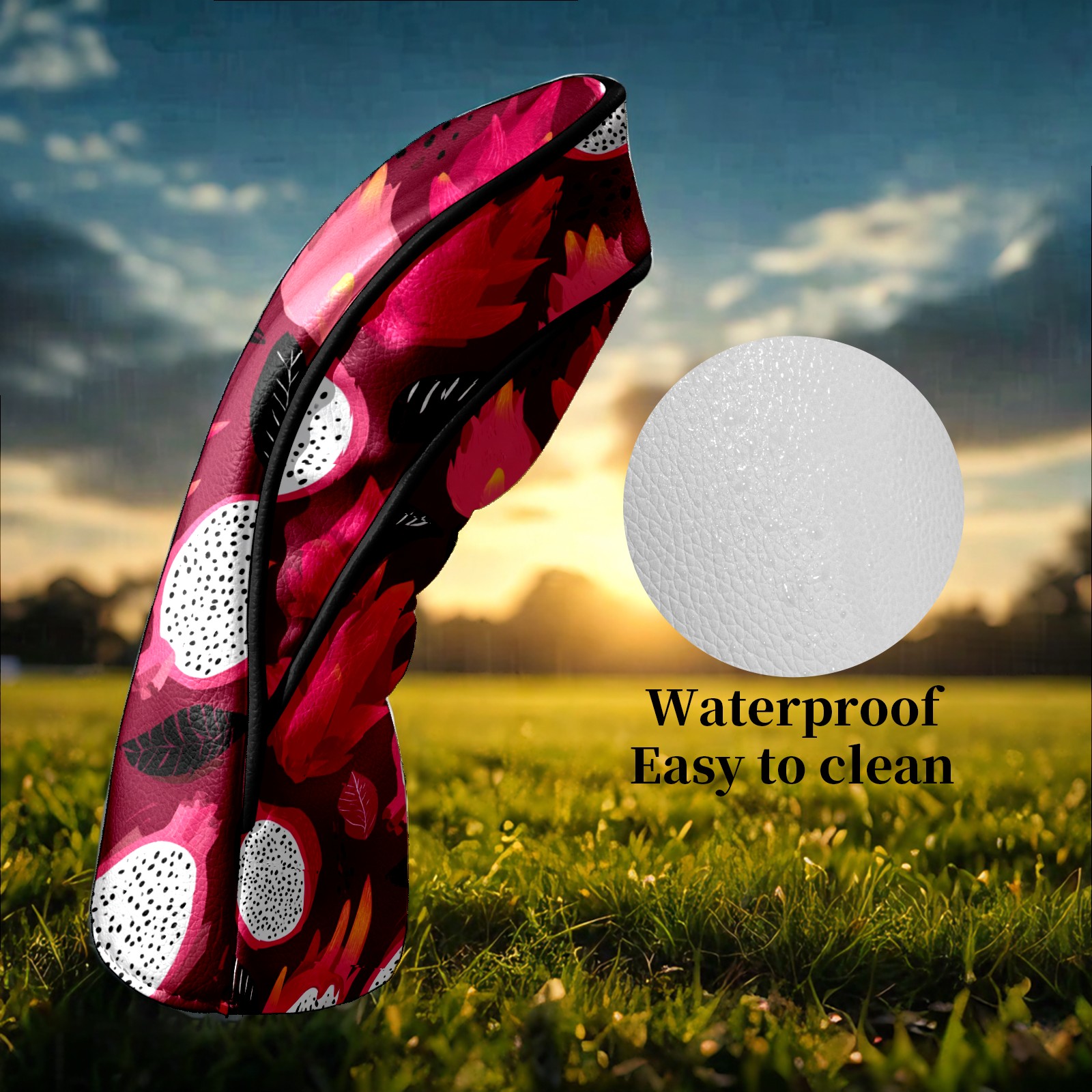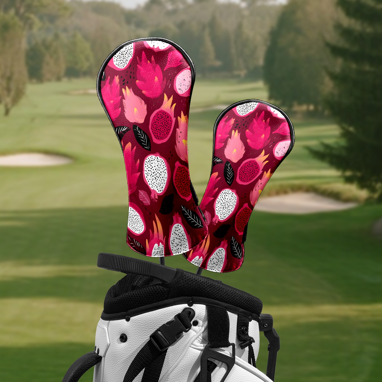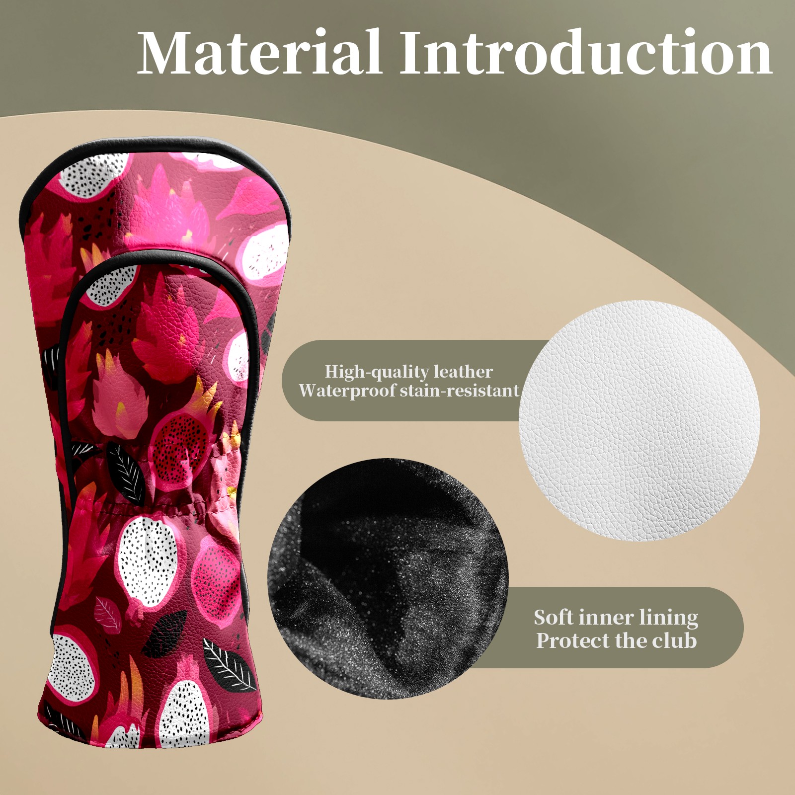 Counullo Golf Head Covers - Pomegranate Red Driver Fairway Headcover, Durable PU Leather & Soft Velvet Lining, Secure Elastic Band, Perfect Christmas Golf Gift for Men