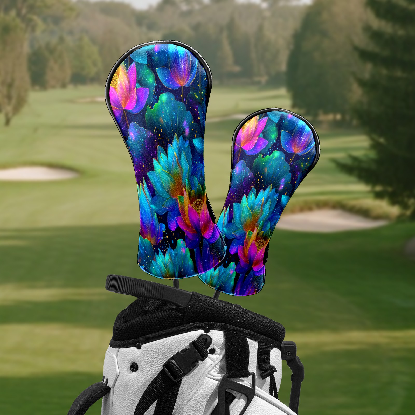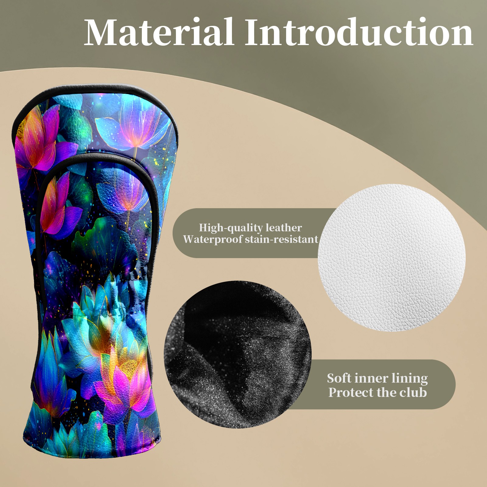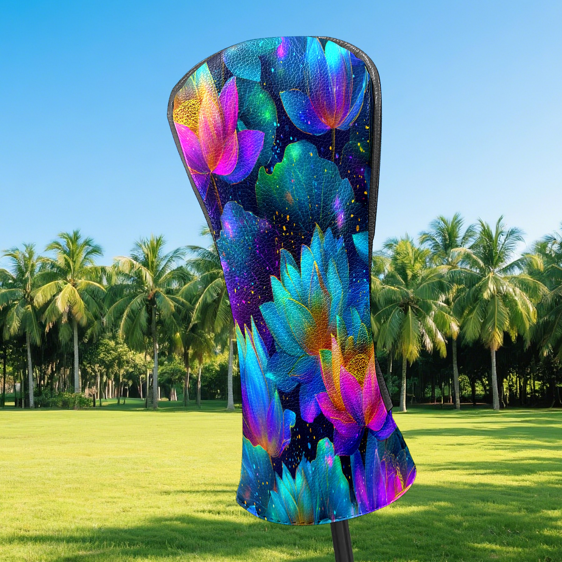 Counullo Golf Head Covers - Psychedelic Lotus Multicolor Driver Fairway Headcover, Durable PU Leather & Soft Velvet Lining, Secure Elastic Band, Perfect Christmas Golf Gift for Men