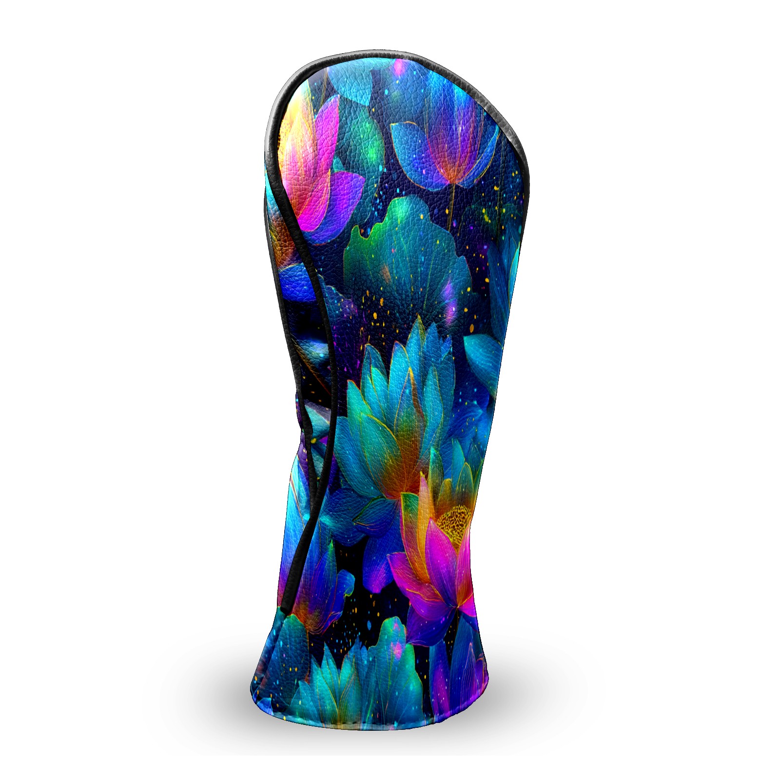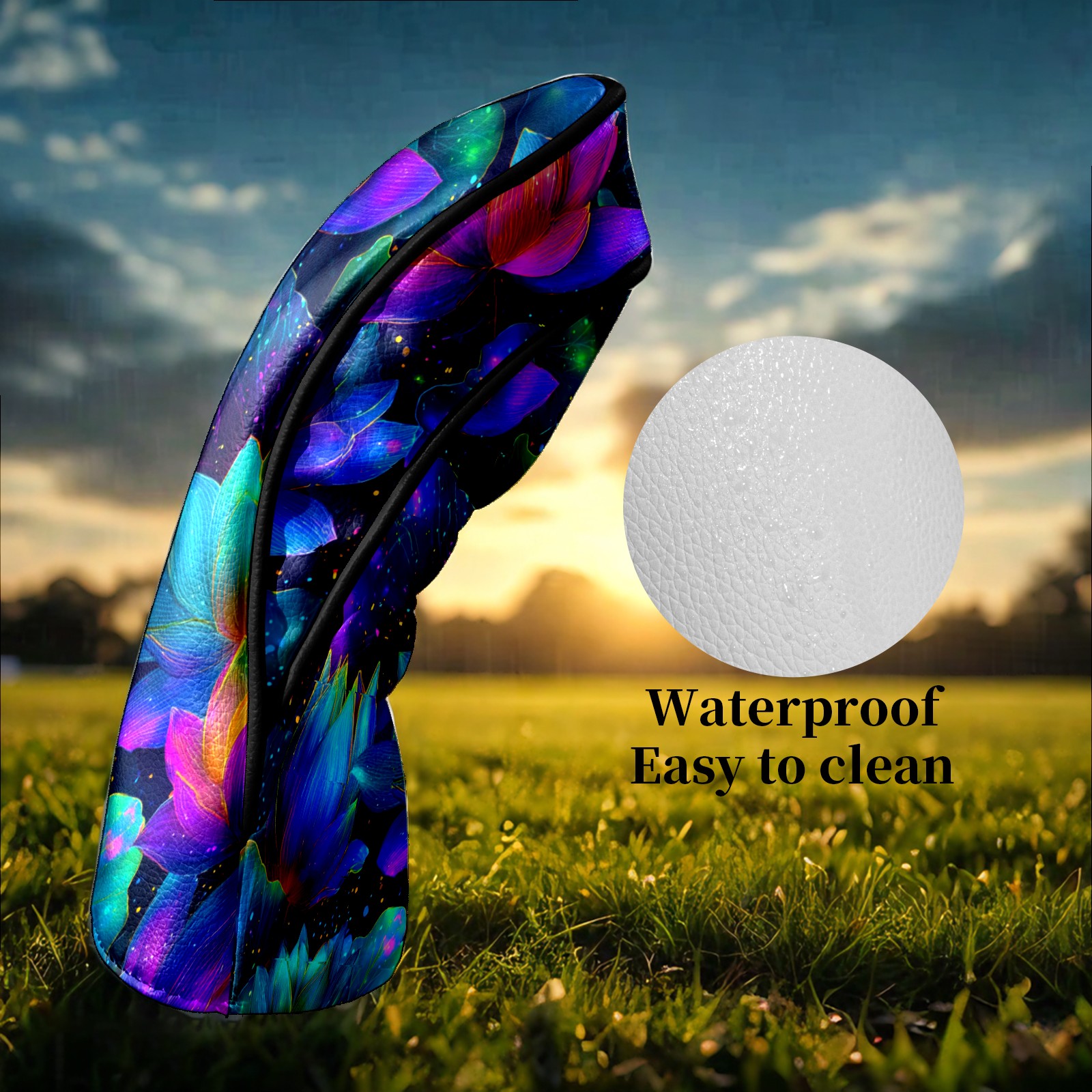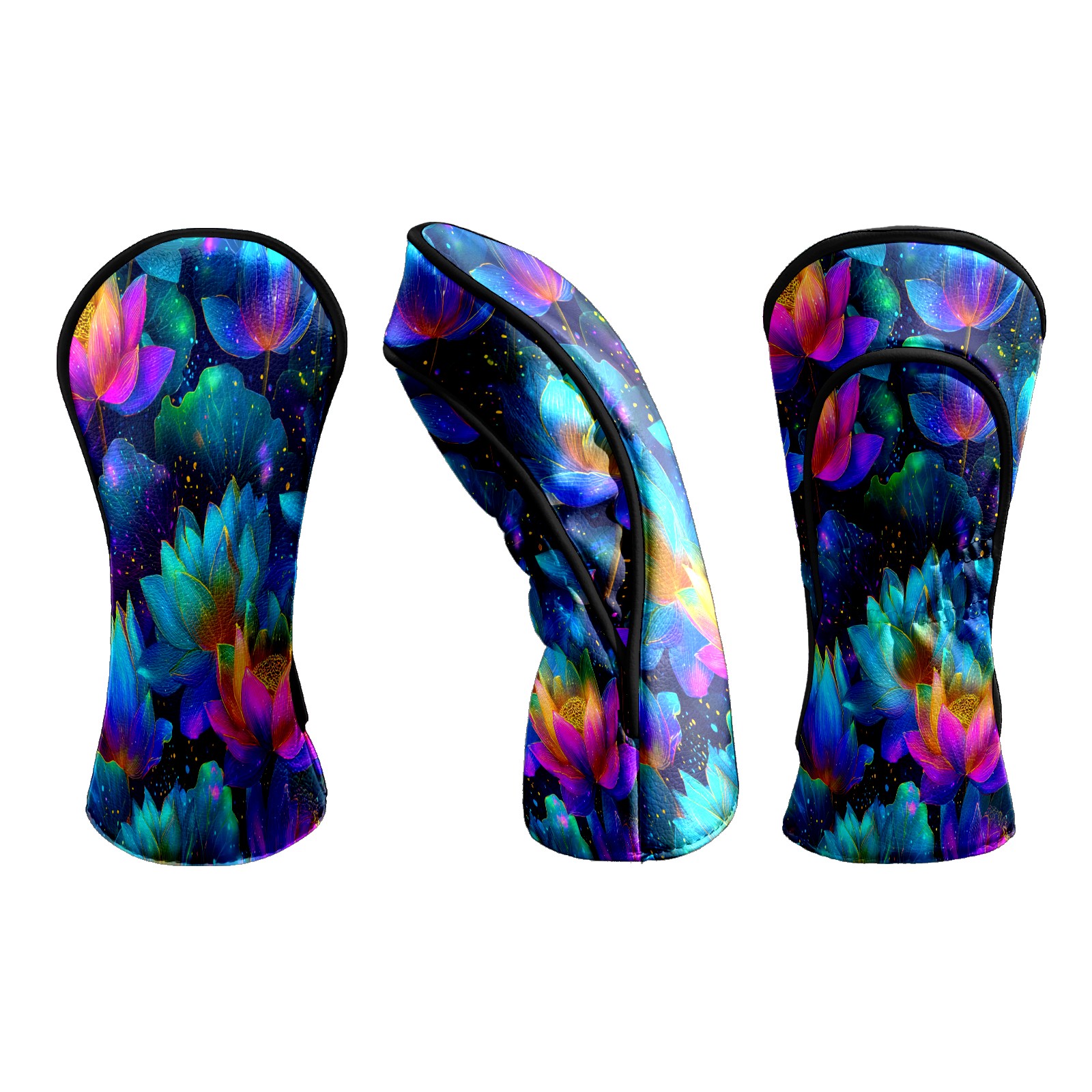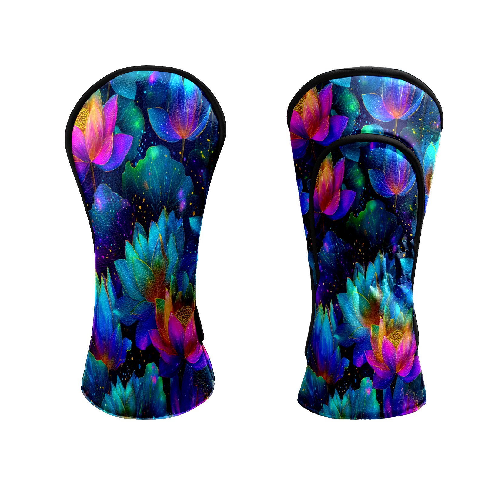 Counullo Golf Head Covers - Psychedelic Lotus Multicolor Driver Fairway Headcover, Durable PU Leather & Soft Velvet Lining, Secure Elastic Band, Perfect Christmas Golf Gift for Men