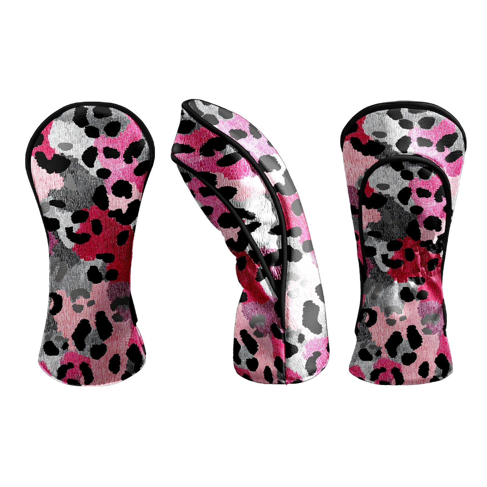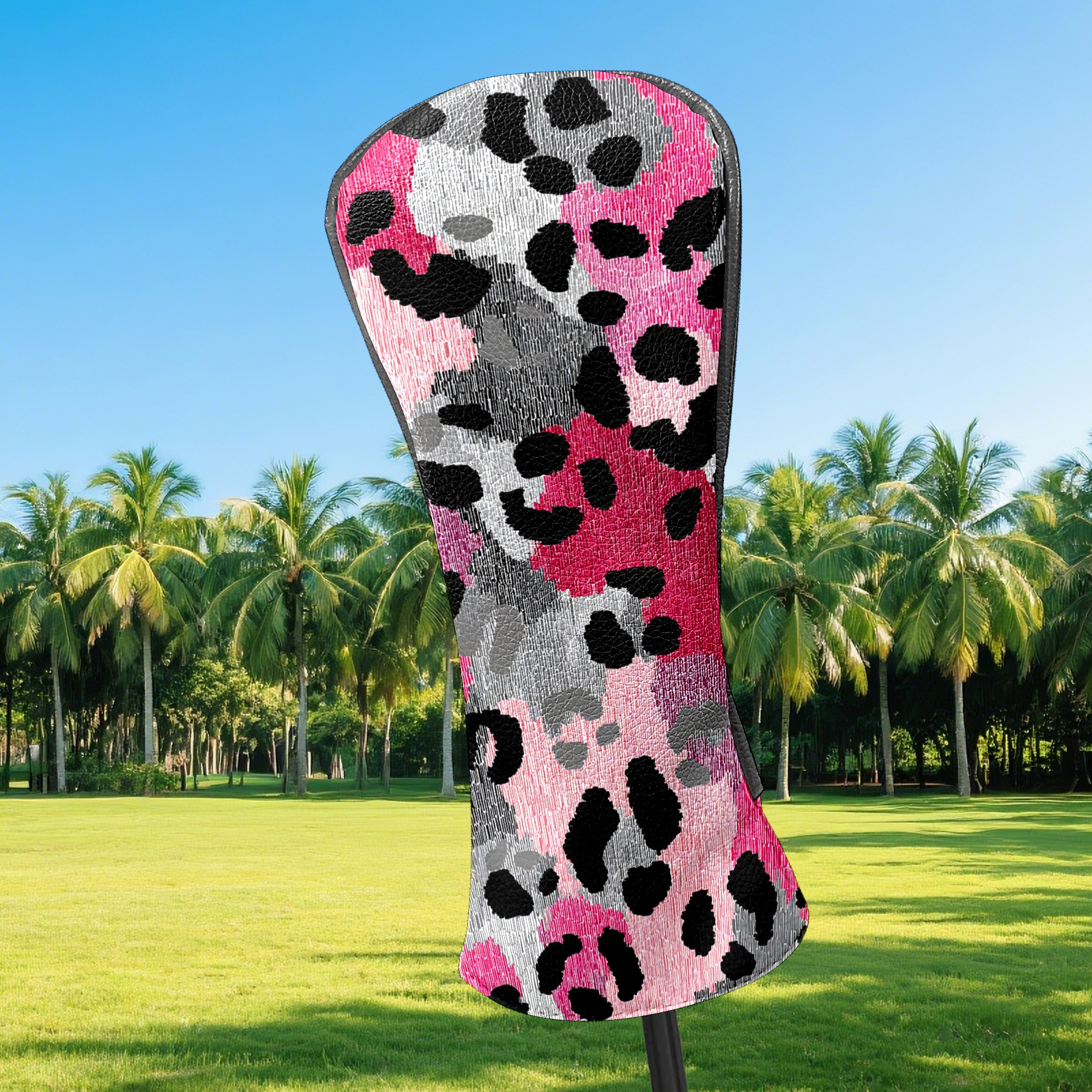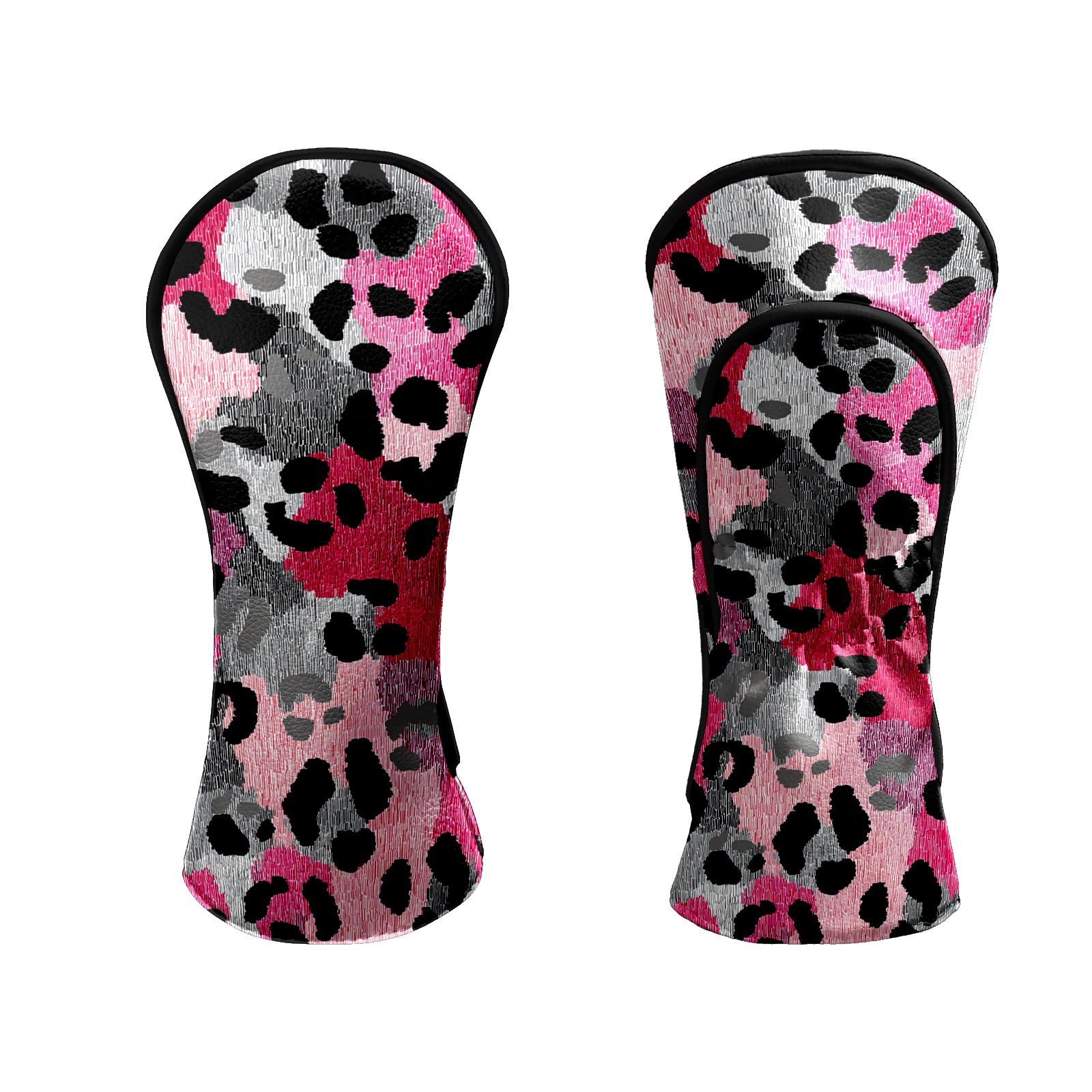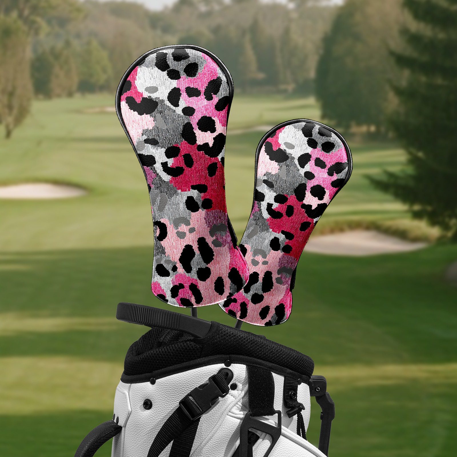 Counullo Golf Head Covers - Leopard Print BlackPink Driver Fairway Headcover, Durable PU Leather & Soft Velvet Lining, Secure Elastic Band, Perfect Christmas Golf Gift for Men