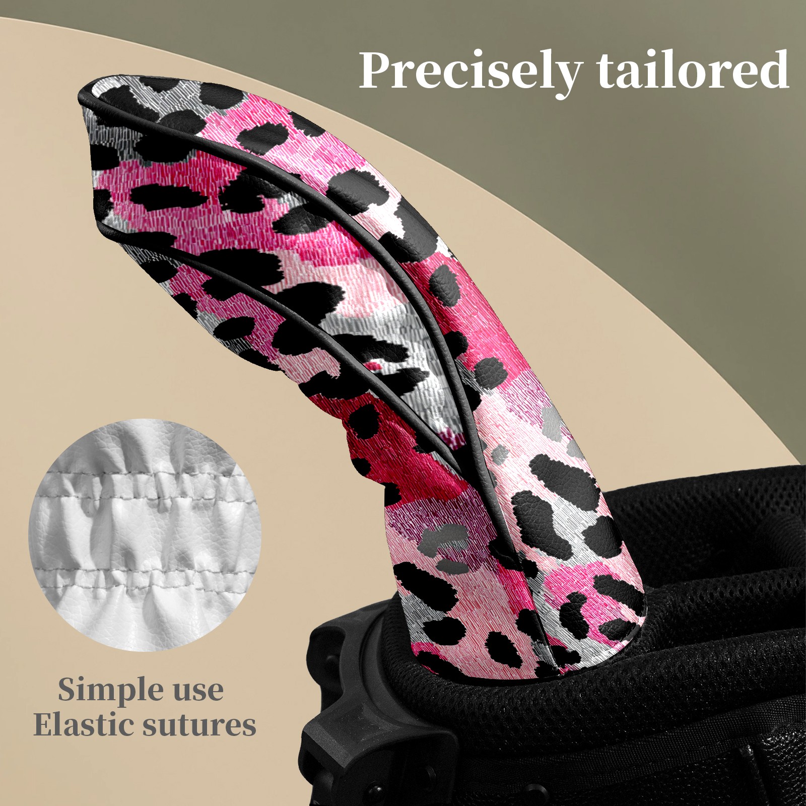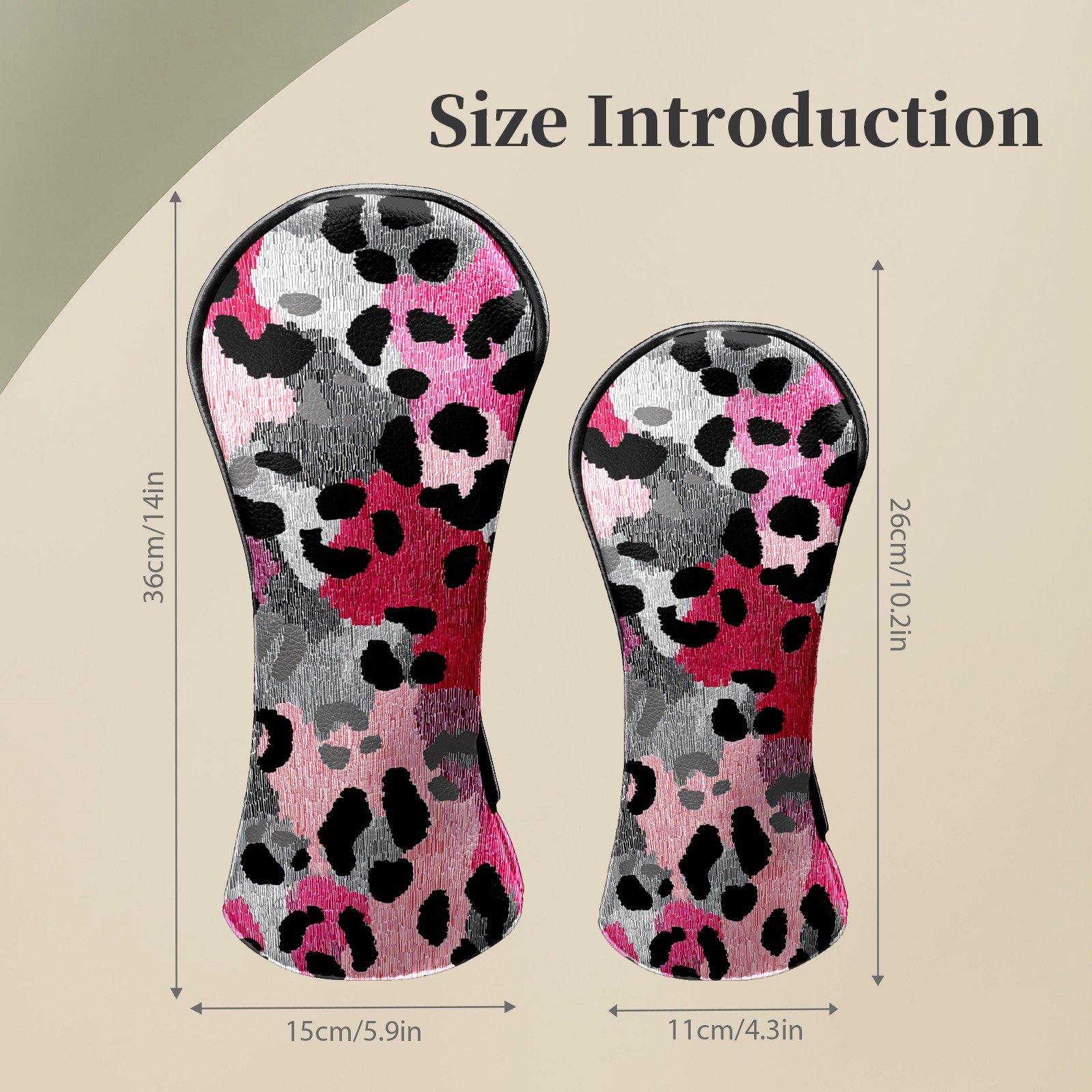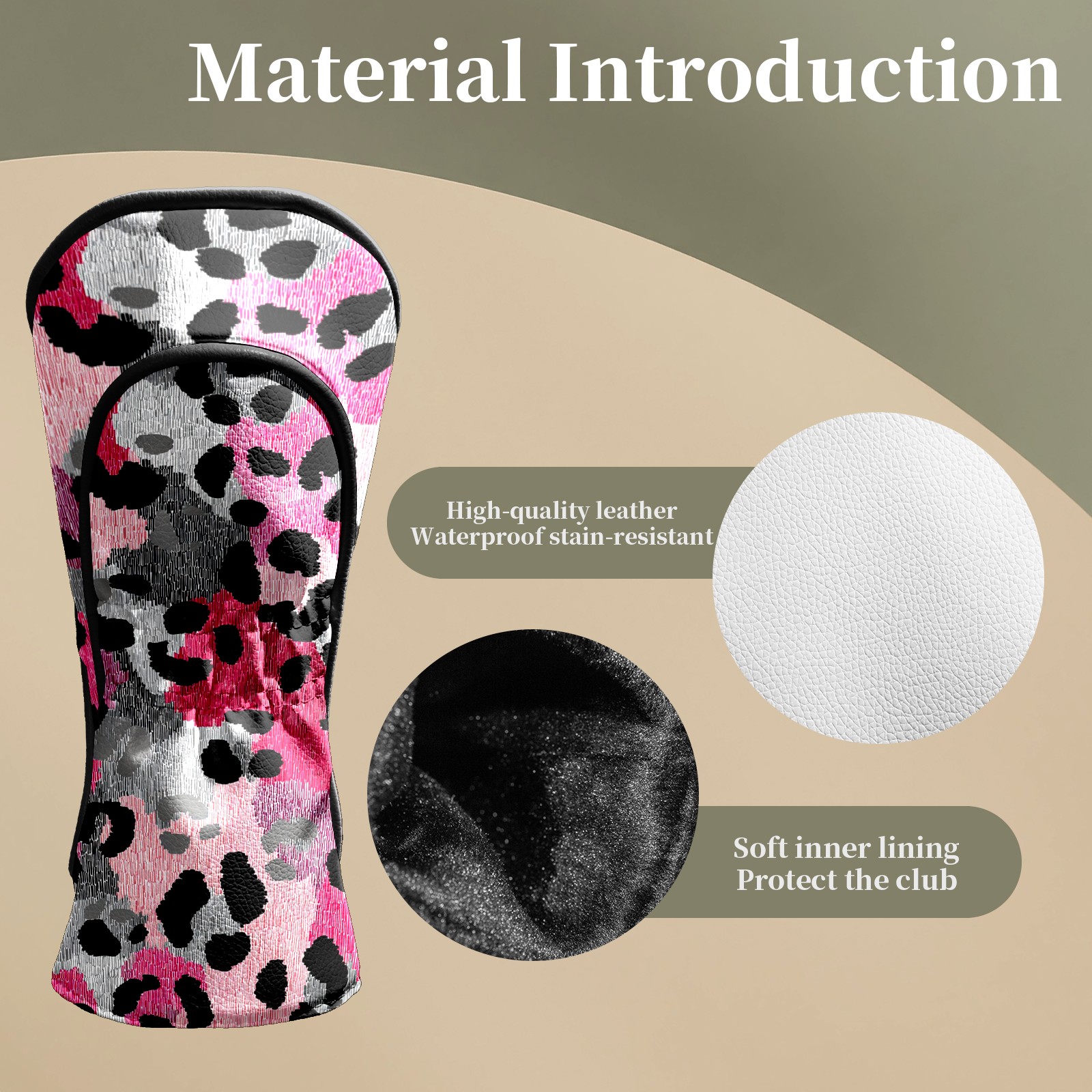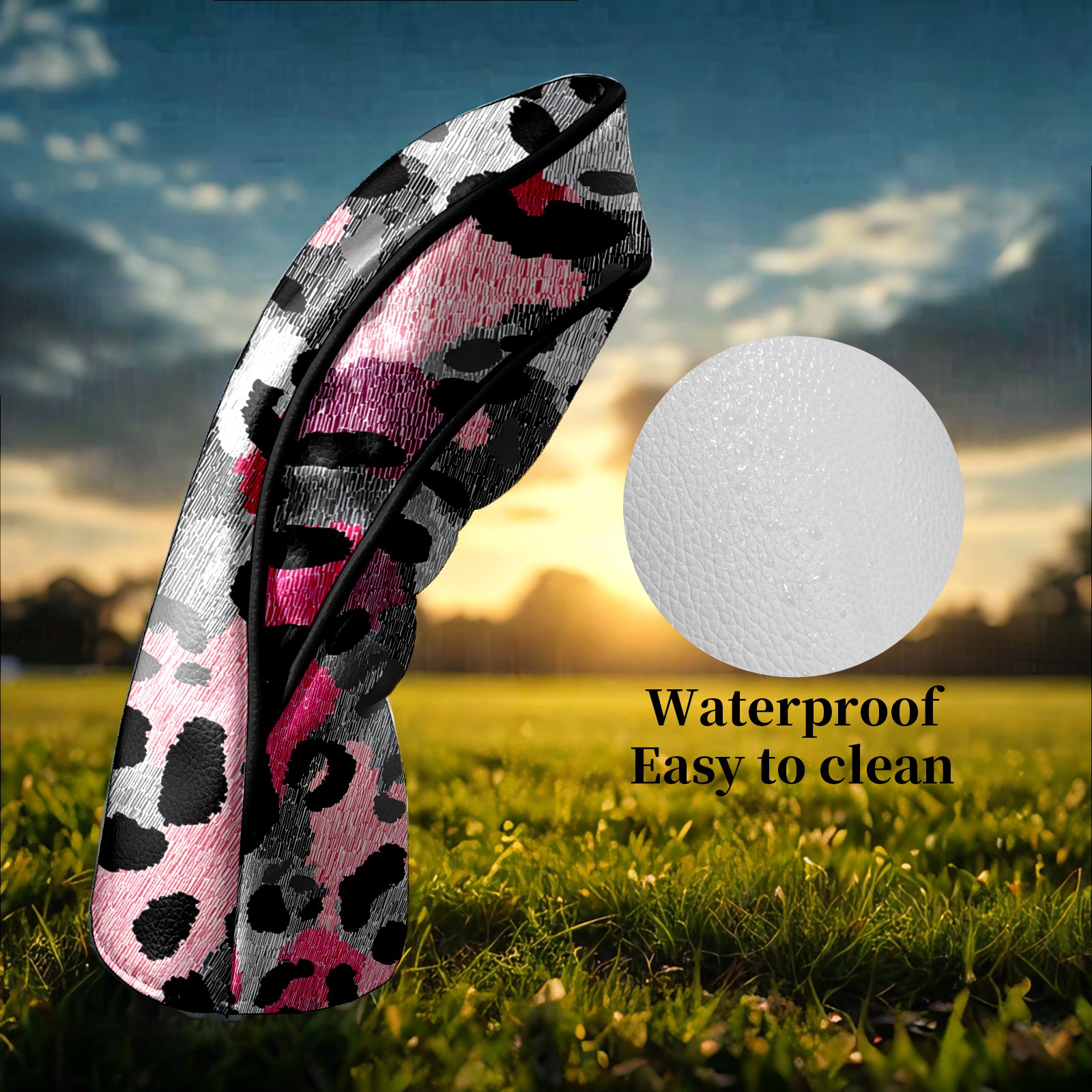 Counullo Golf Head Covers - Leopard Print BlackPink Driver Fairway Headcover, Durable PU Leather & Soft Velvet Lining, Secure Elastic Band, Perfect Christmas Golf Gift for Men