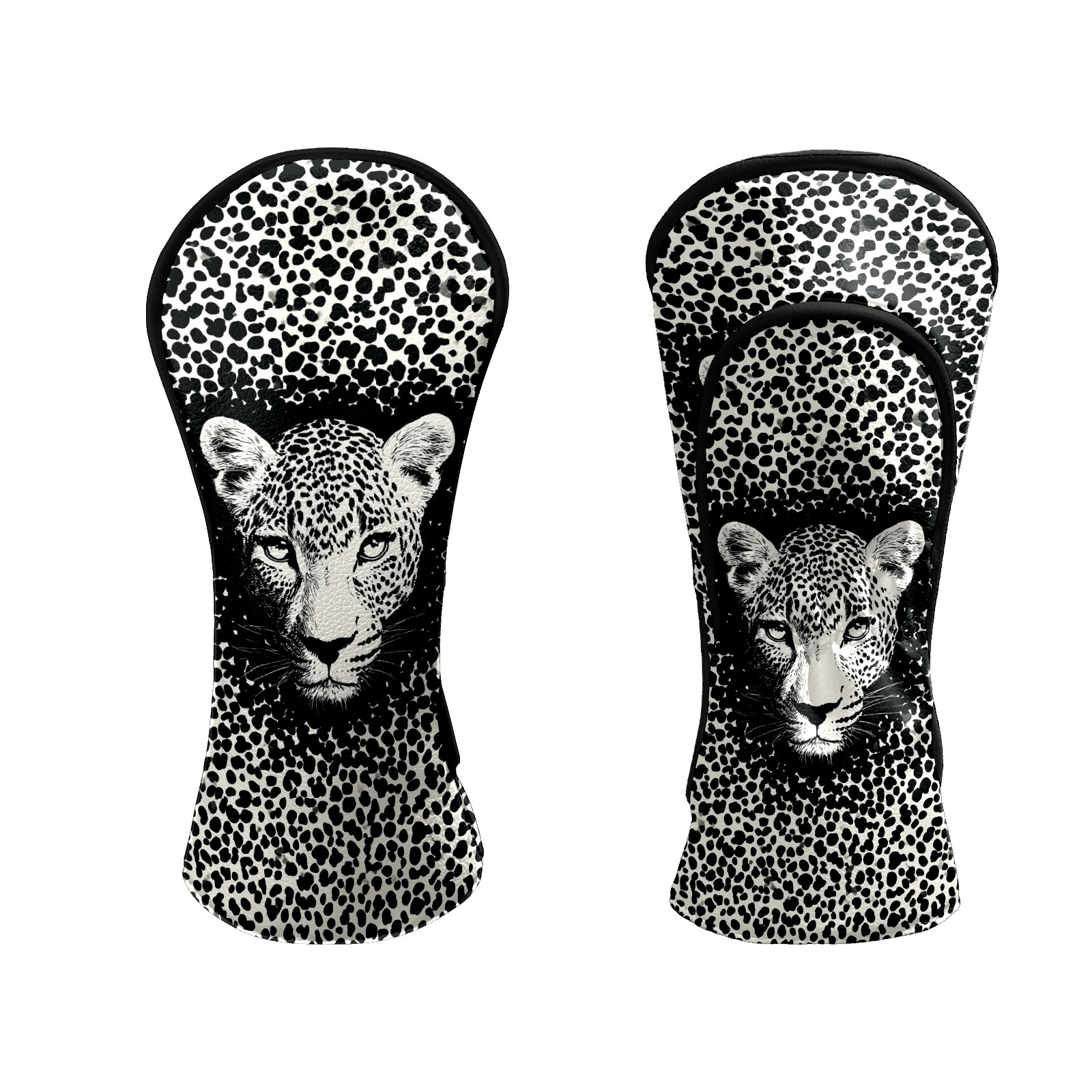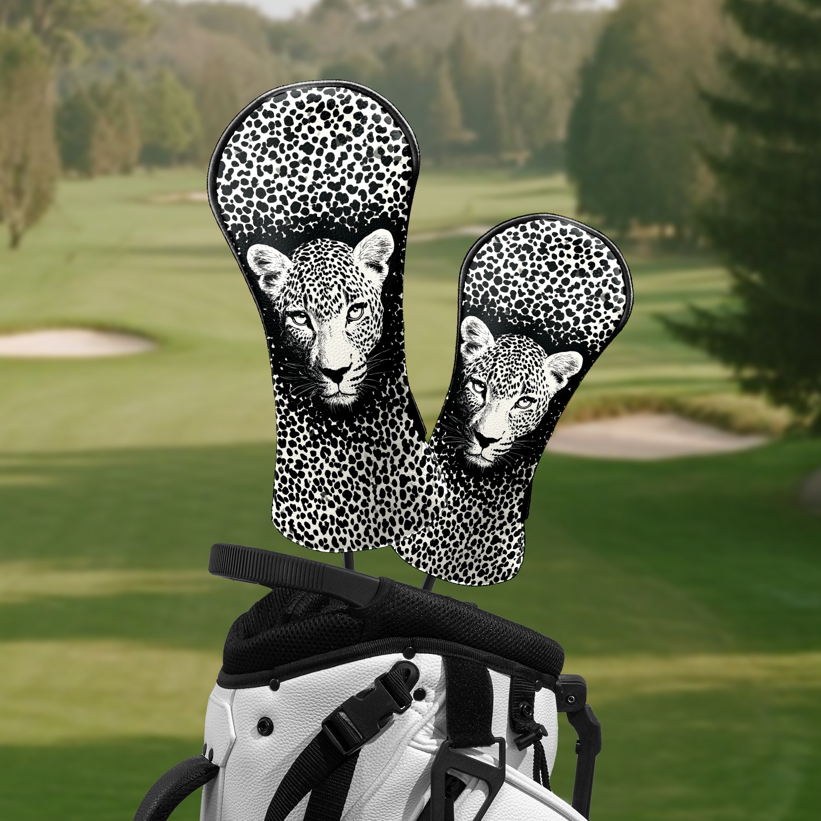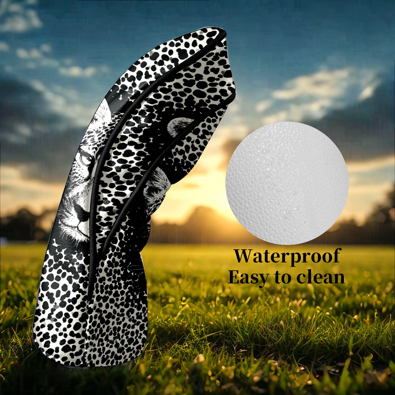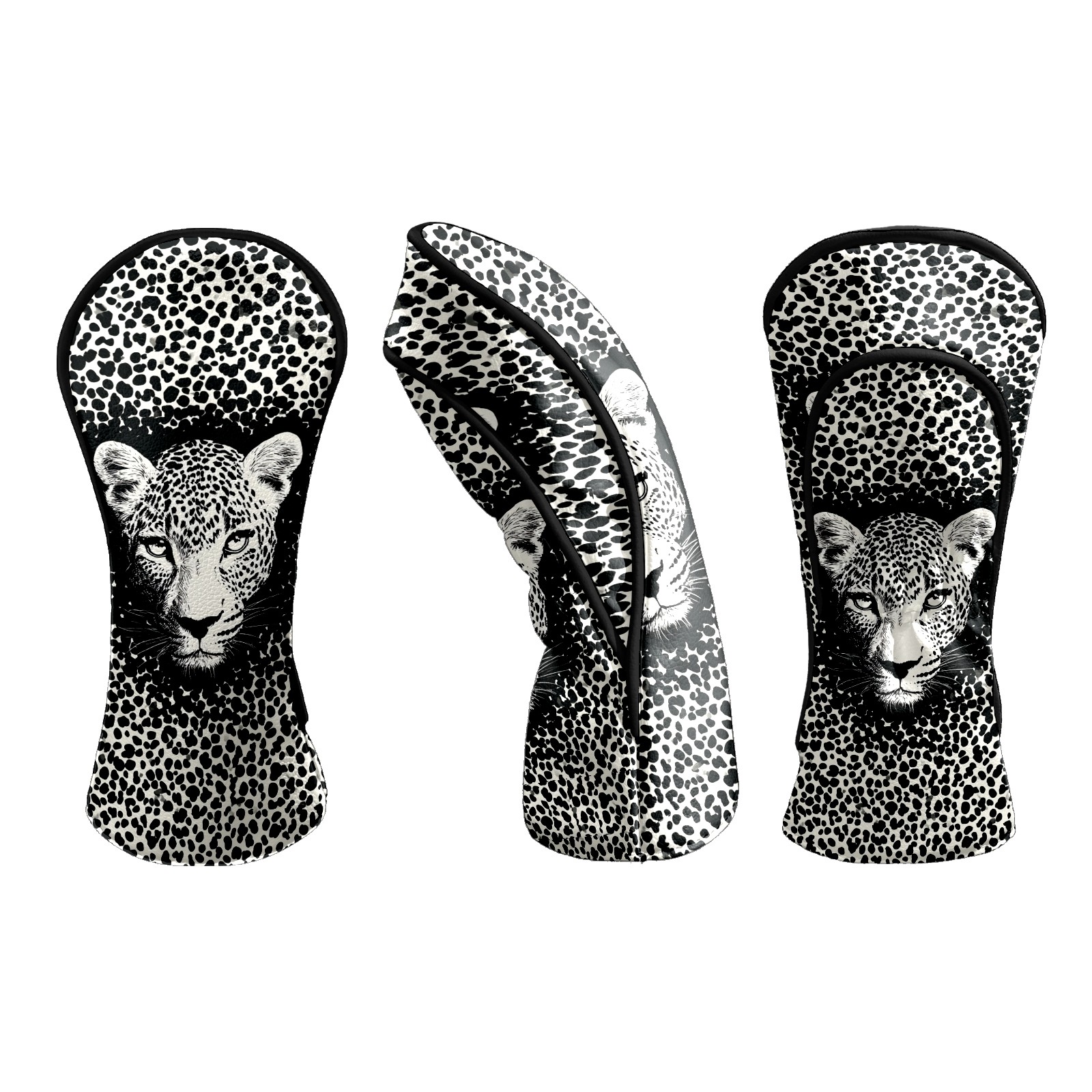 Counullo Golf Head Covers - Cheetah BlackWhite Driver Fairway Headcover, Durable PU Leather & Soft Velvet Lining, Secure Elastic Band, Perfect Christmas Golf Gift for Men