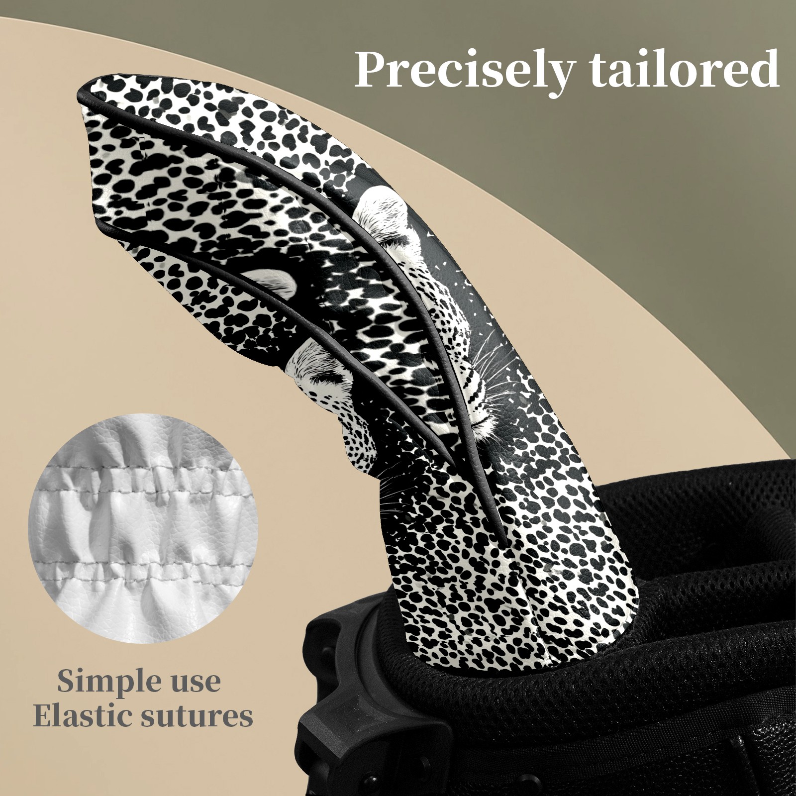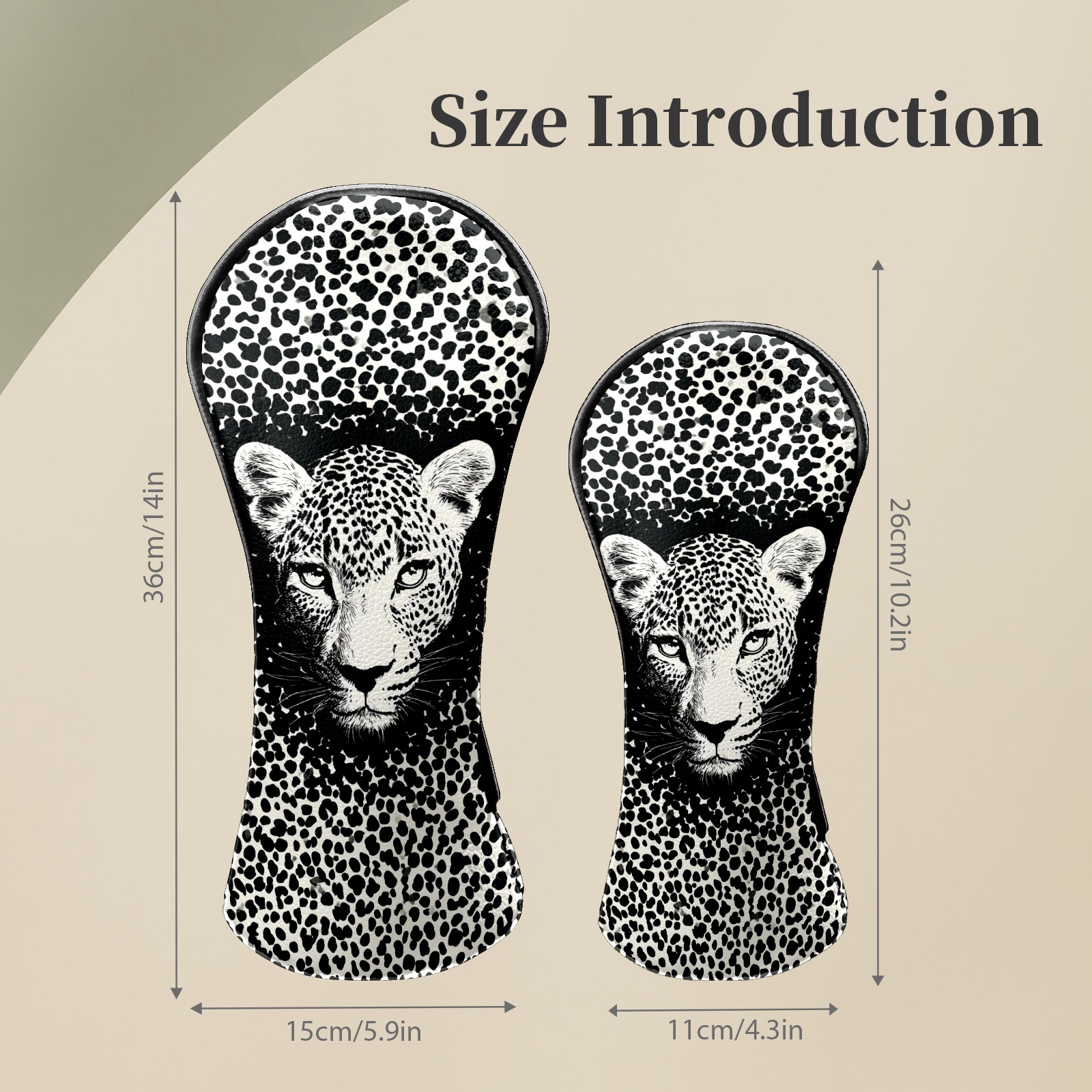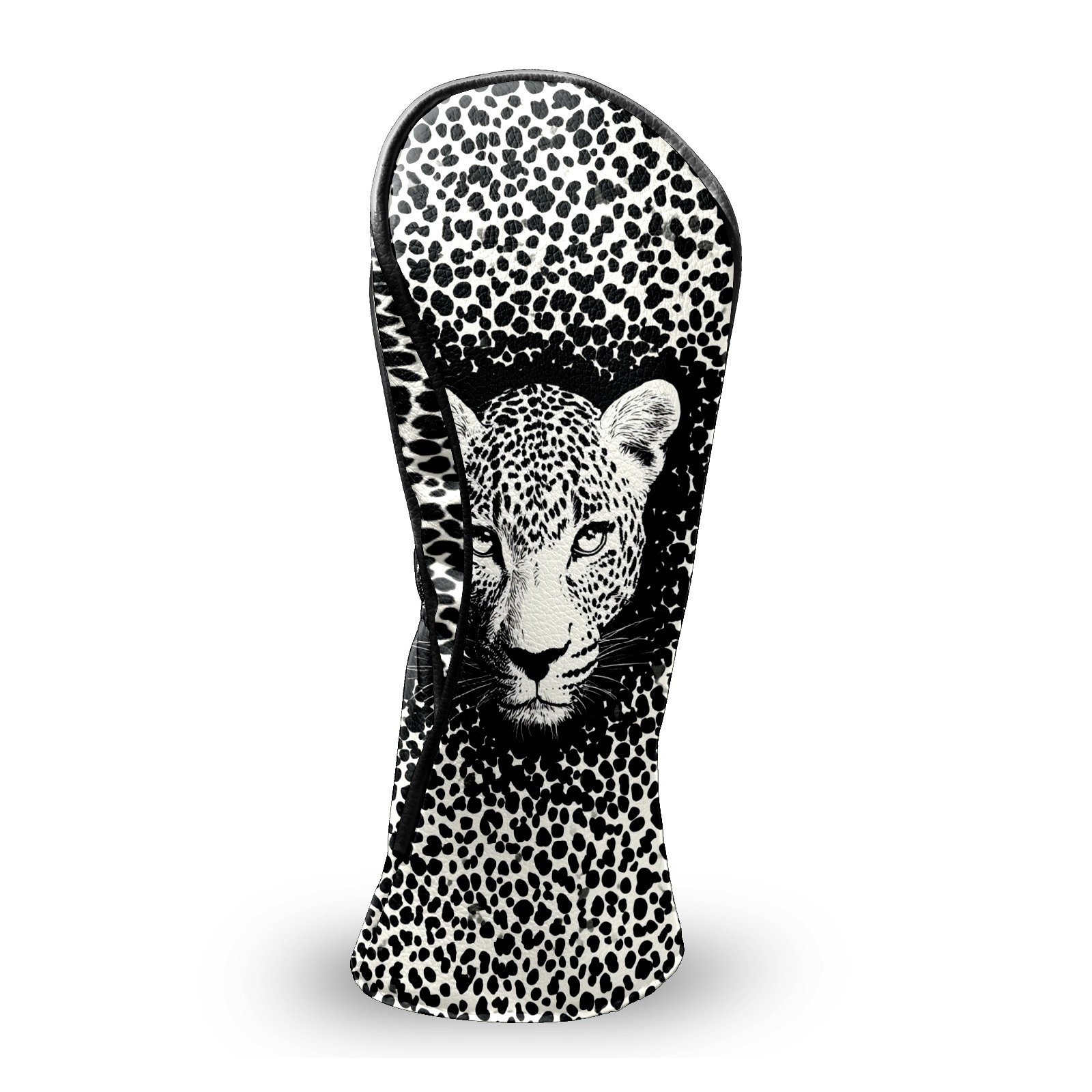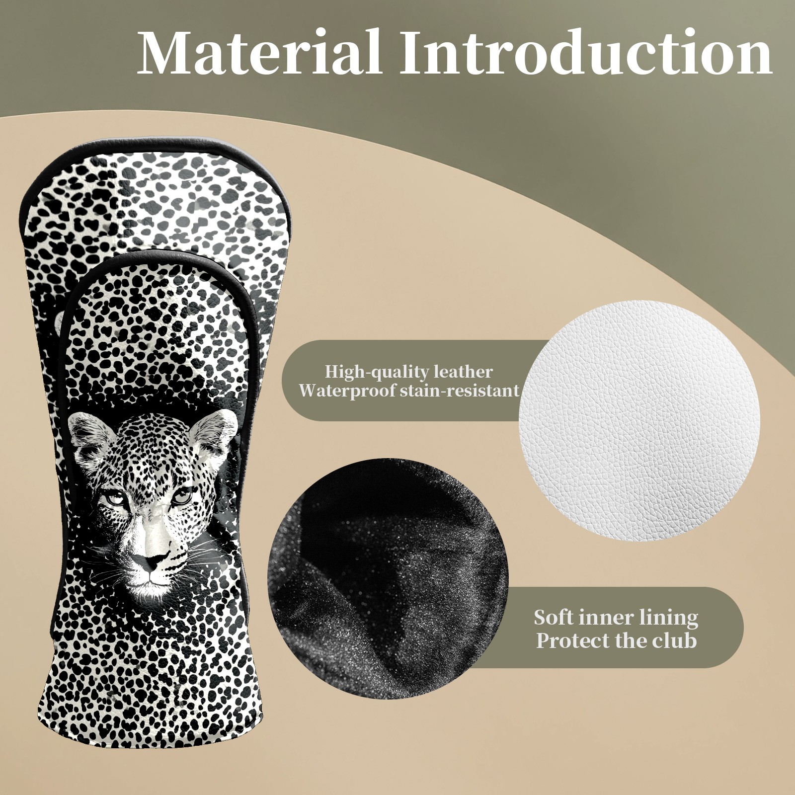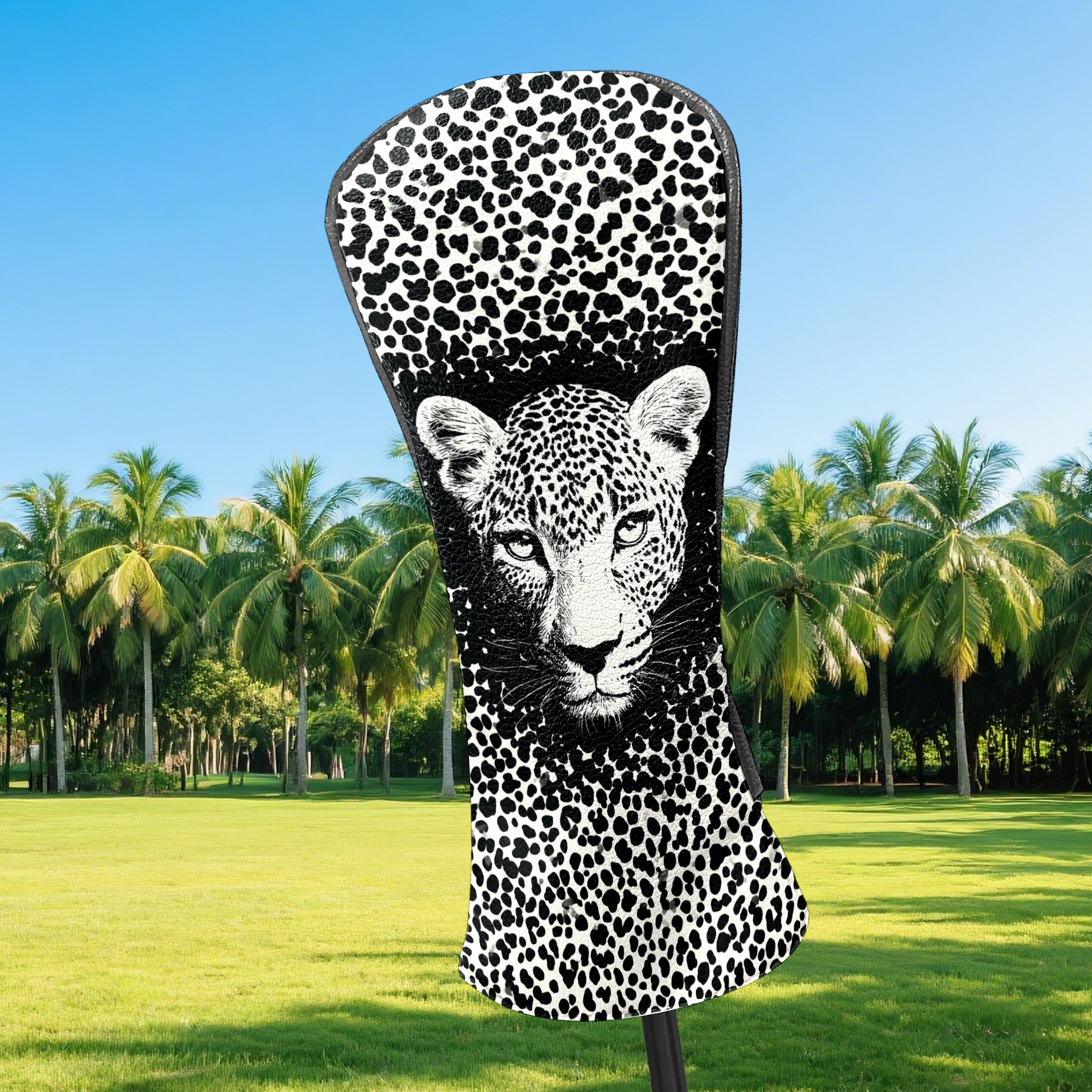 Counullo Golf Head Covers - Cheetah BlackWhite Driver Fairway Headcover, Durable PU Leather & Soft Velvet Lining, Secure Elastic Band, Perfect Christmas Golf Gift for Men