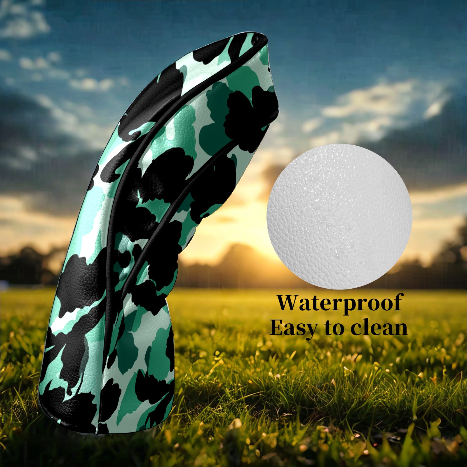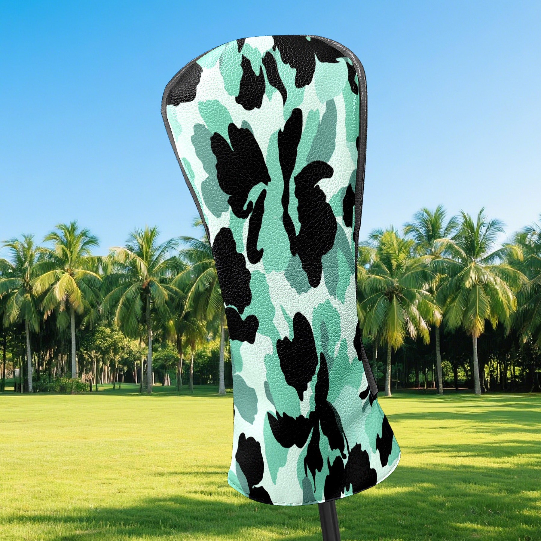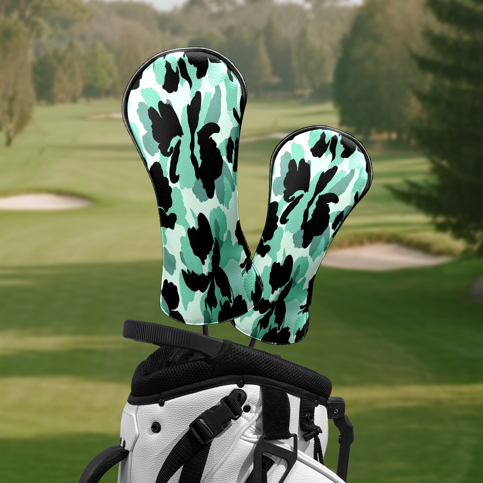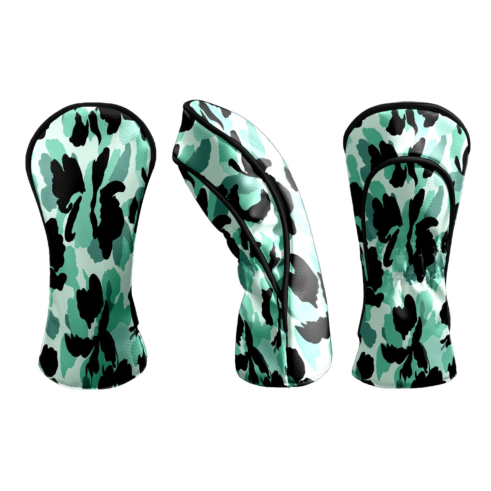 Counullo Golf Head Covers - Camouflage BlackGreen Driver Fairway Headcover, Durable PU Leather & Soft Velvet Lining, Secure Elastic Band, Perfect Christmas Golf Gift for Men