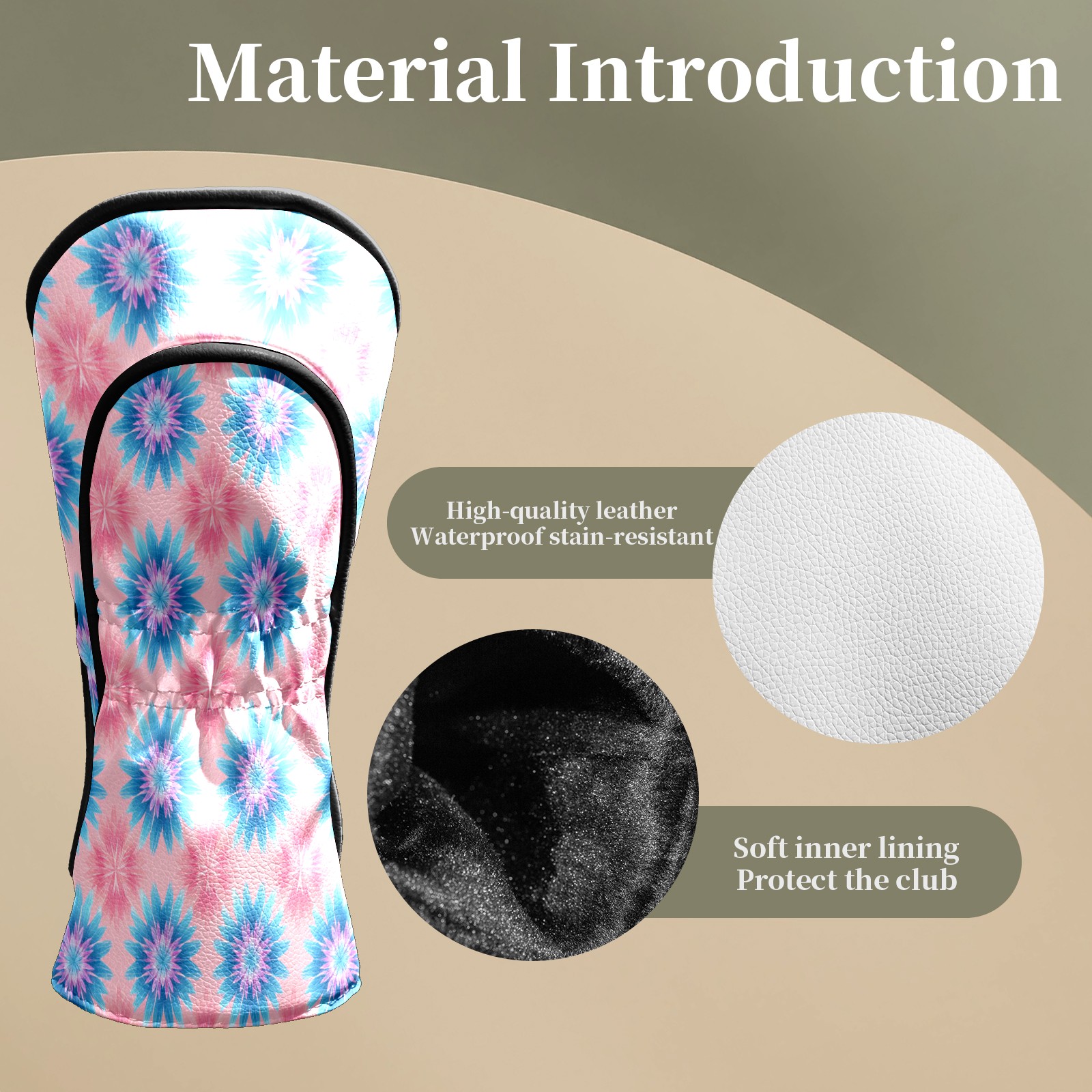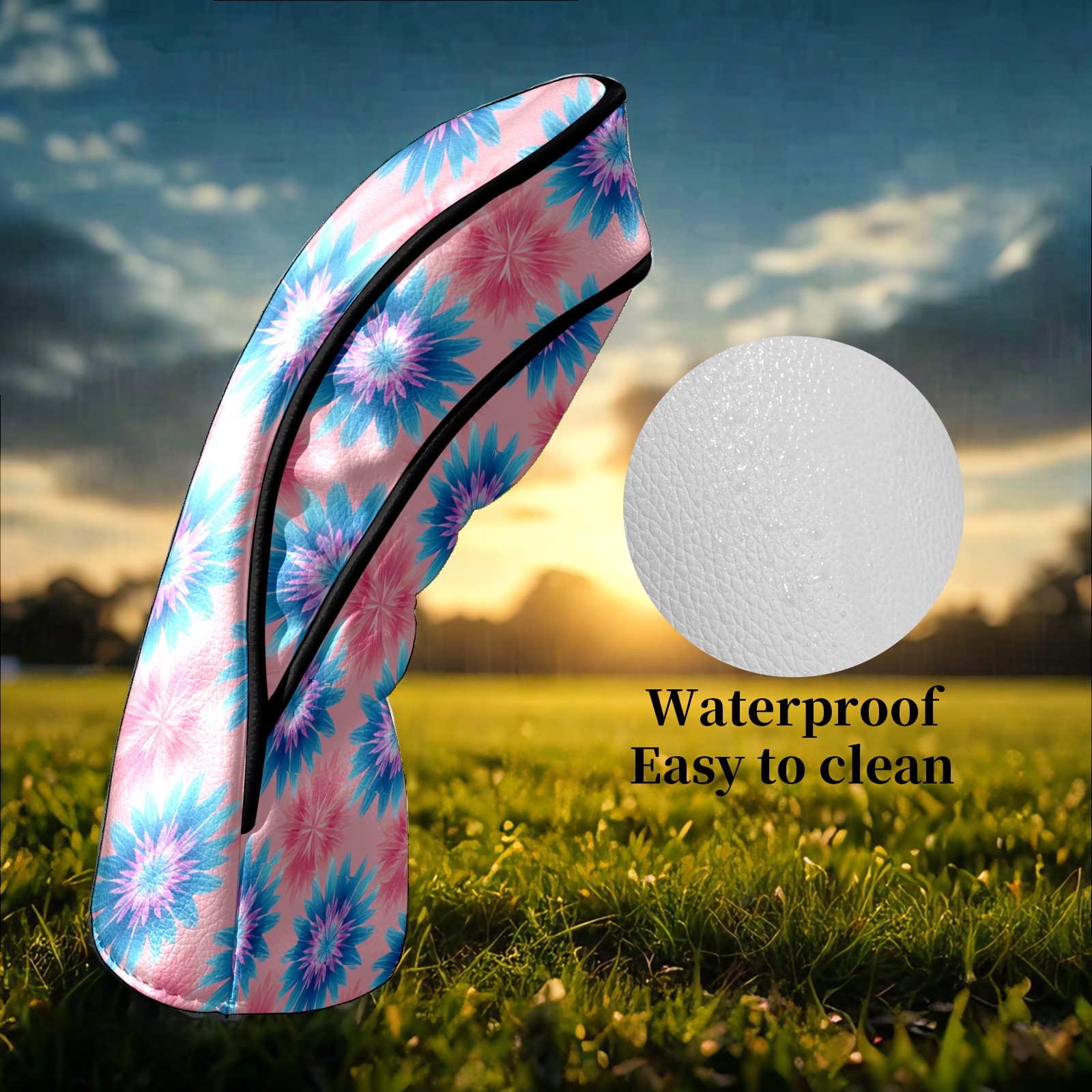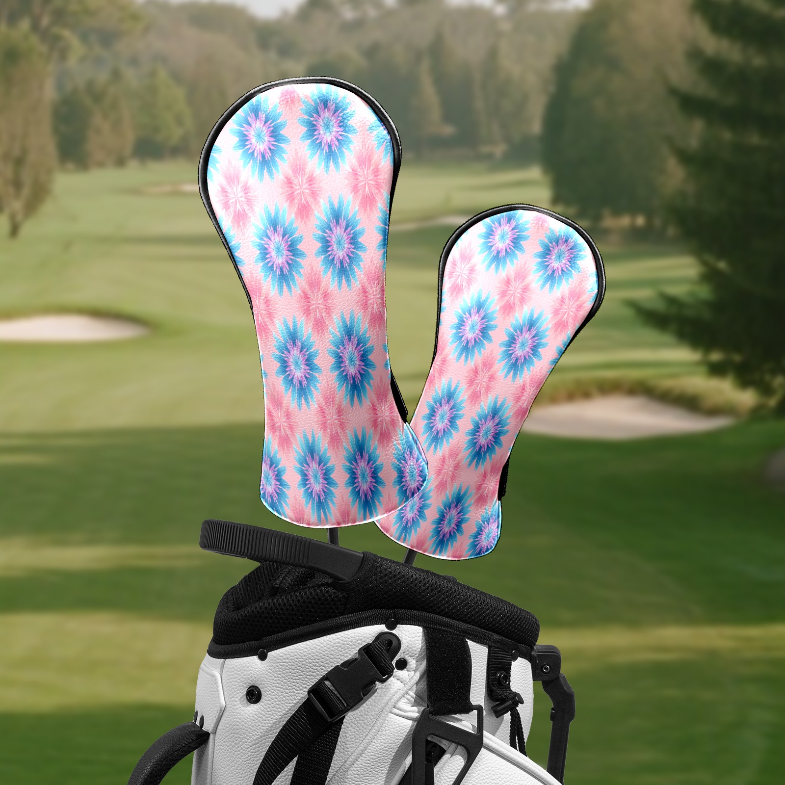 Counullo Golf Head Covers - Flowers Blue Driver Fairway Headcover, Durable PU Leather & Soft Velvet Lining, Secure Elastic Band, Perfect Christmas Golf Gift for Men