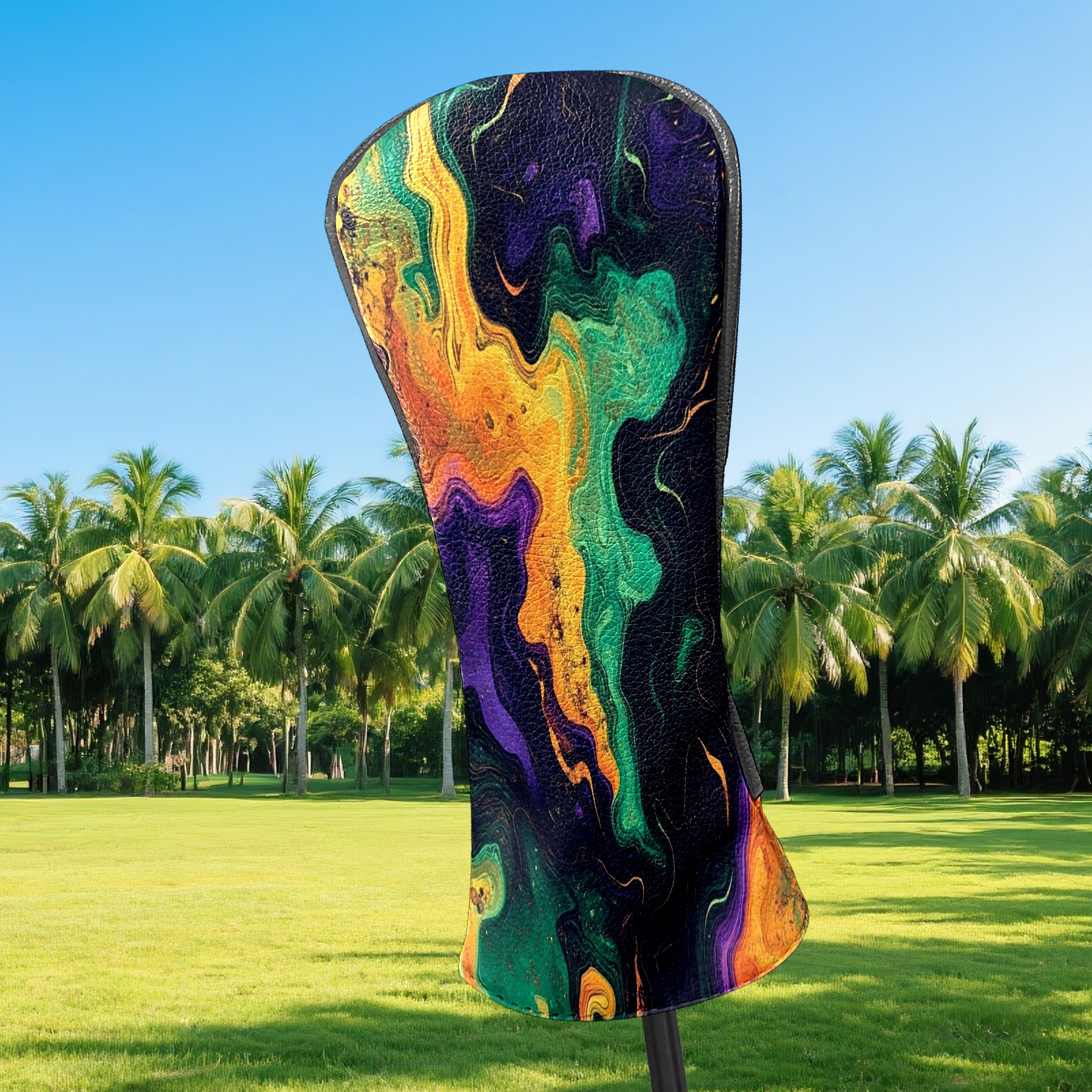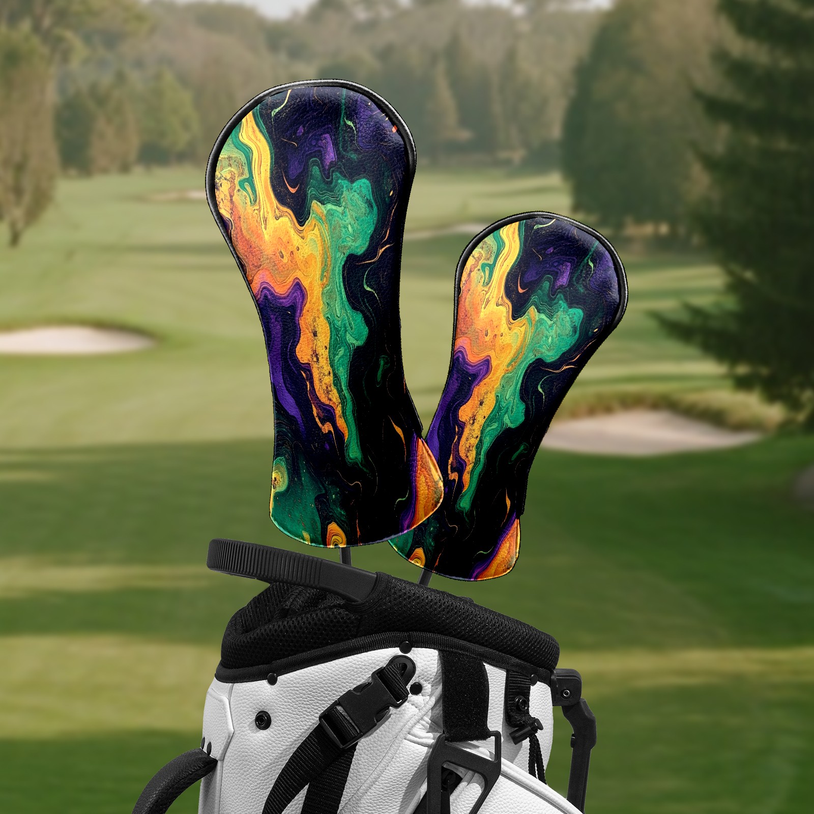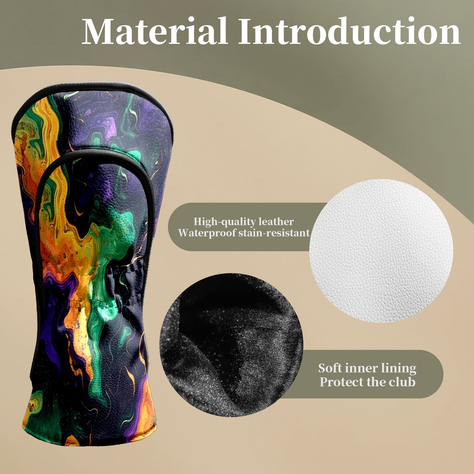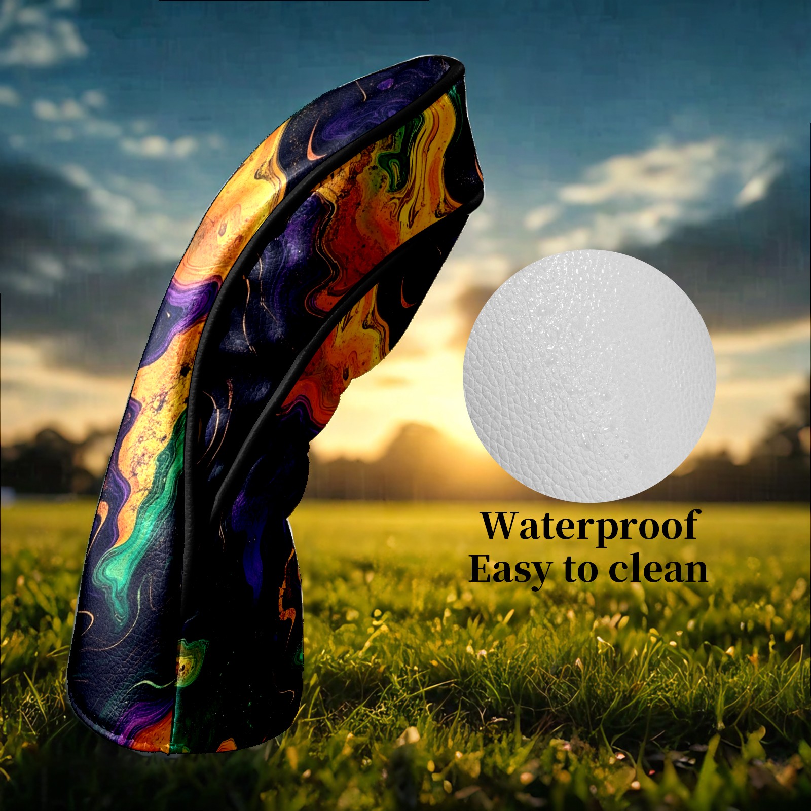 Counullo Golf Head Covers - Fluid Pattern Black Driver Fairway Headcover, Durable PU Leather & Soft Velvet Lining, Secure Elastic Band, Perfect Christmas Golf Gift for Men