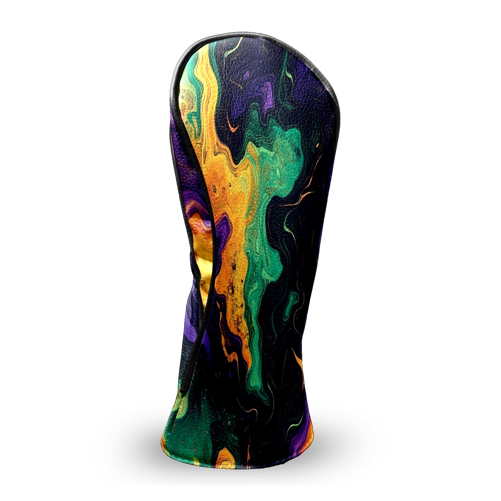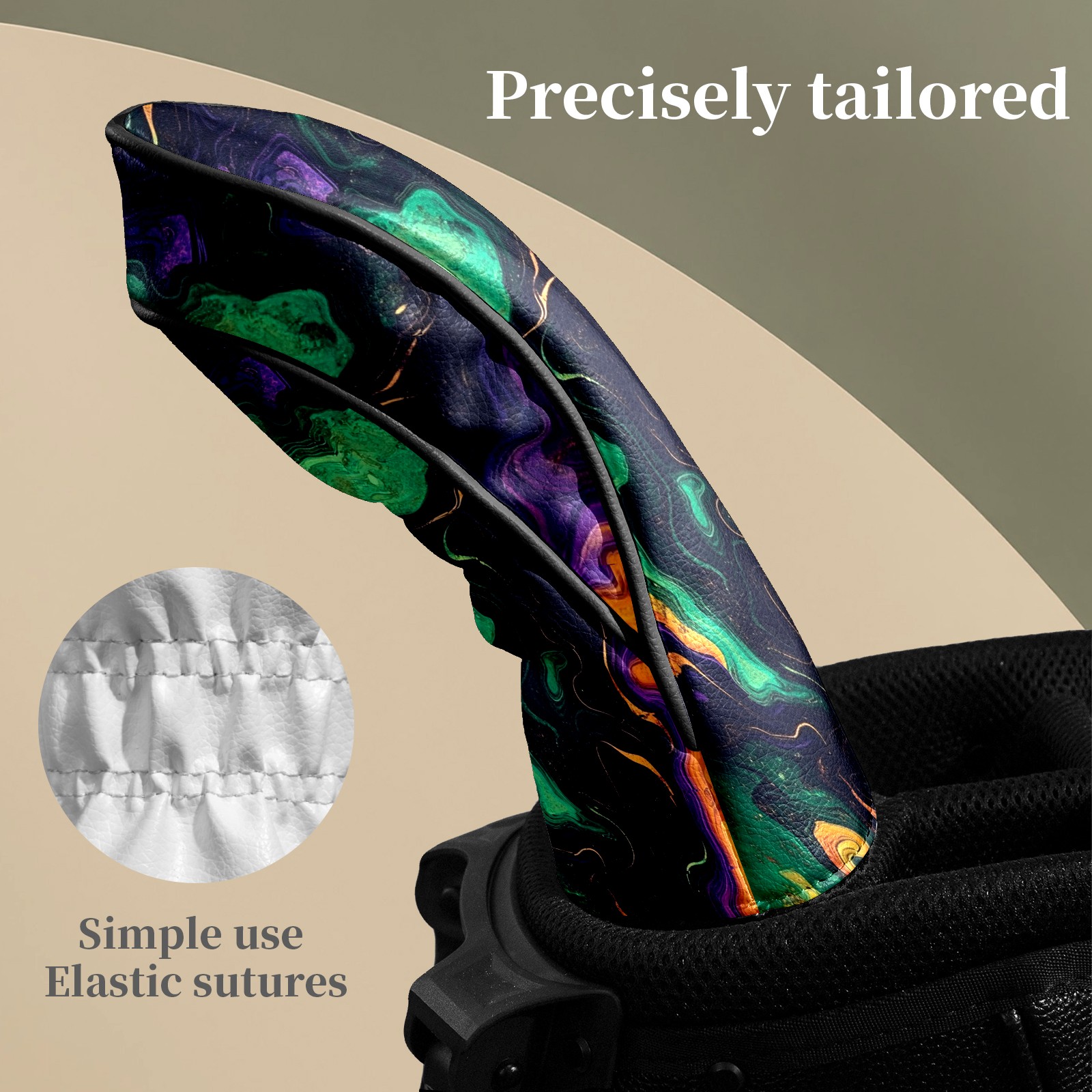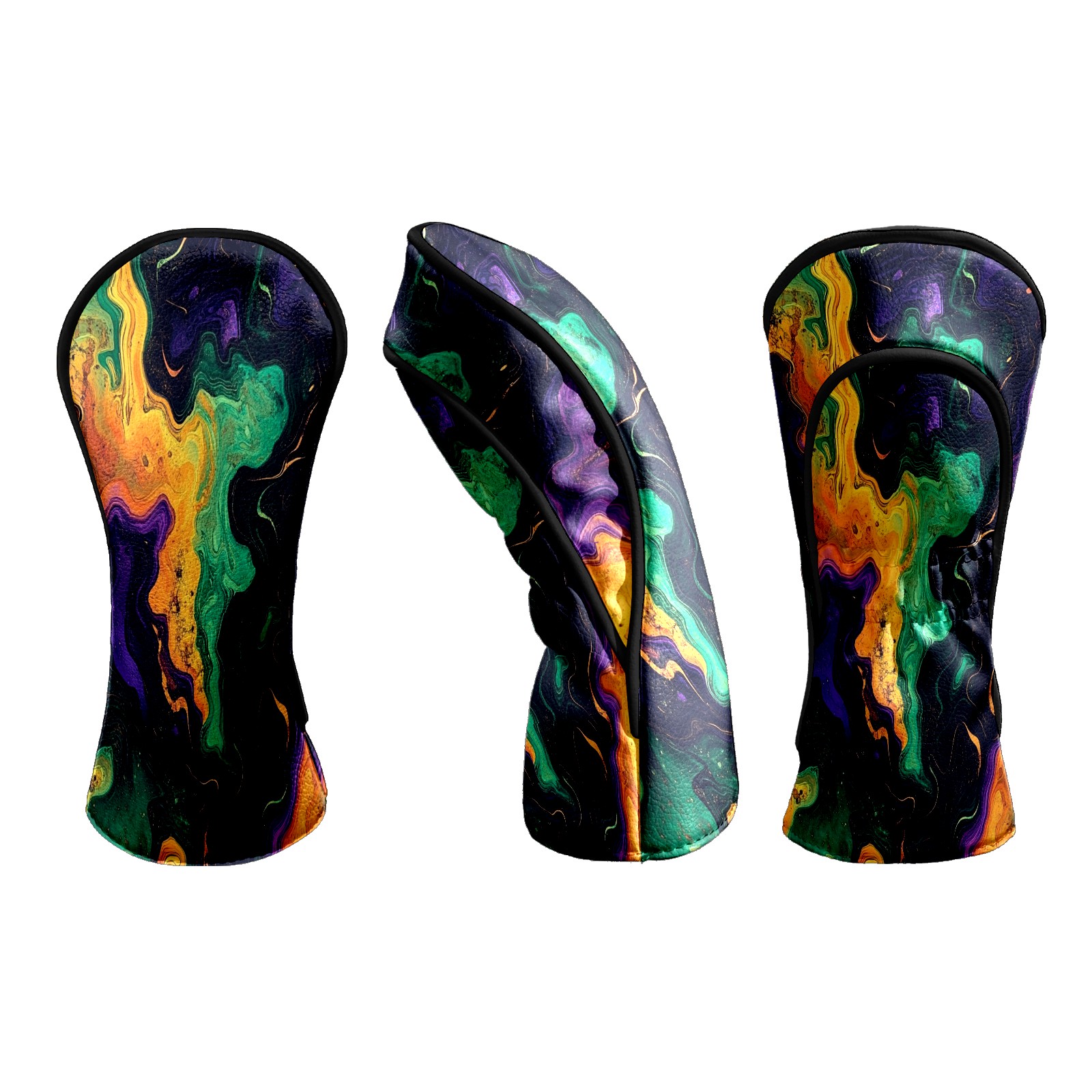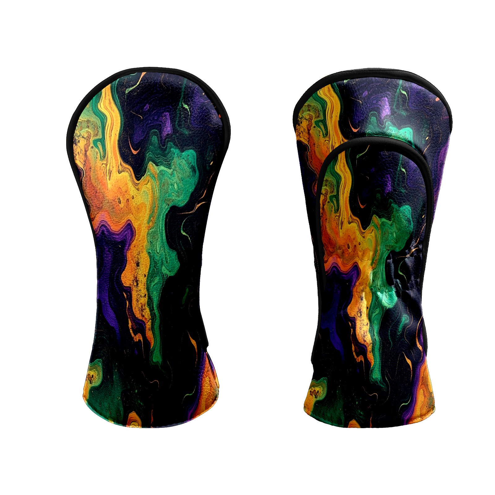 Counullo Golf Head Covers - Fluid Pattern Black Driver Fairway Headcover, Durable PU Leather & Soft Velvet Lining, Secure Elastic Band, Perfect Christmas Golf Gift for Men